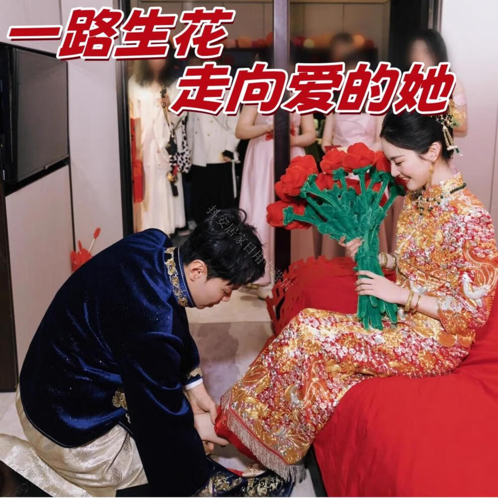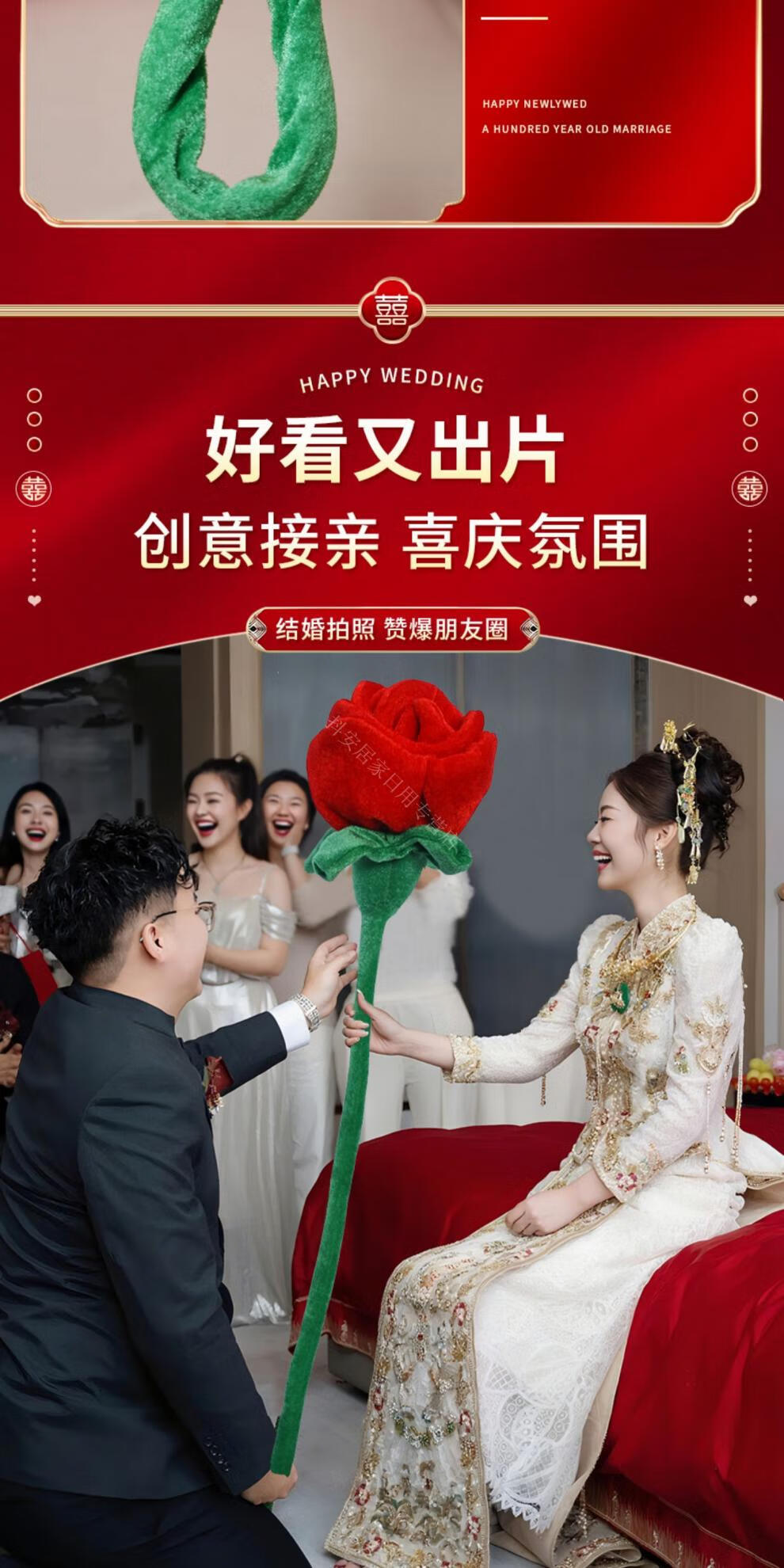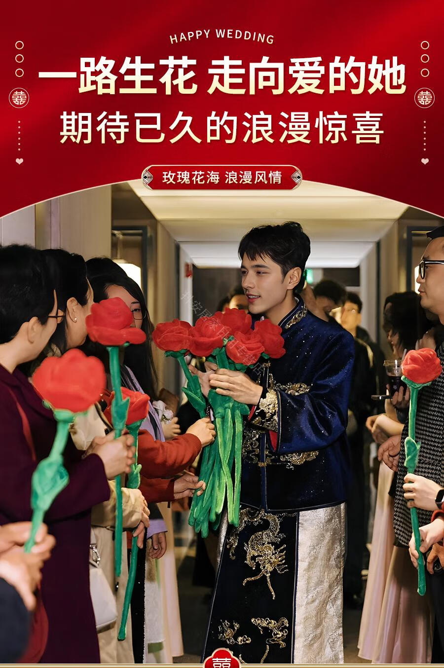 Magic Bean Shenghuo Wedding Pickup Flower Bouquet Extra Large Simulated Flower Proposal Fabric Rose Bouquet Wedding Photo Props Rose Stick Upgraded Red 100CM One Large