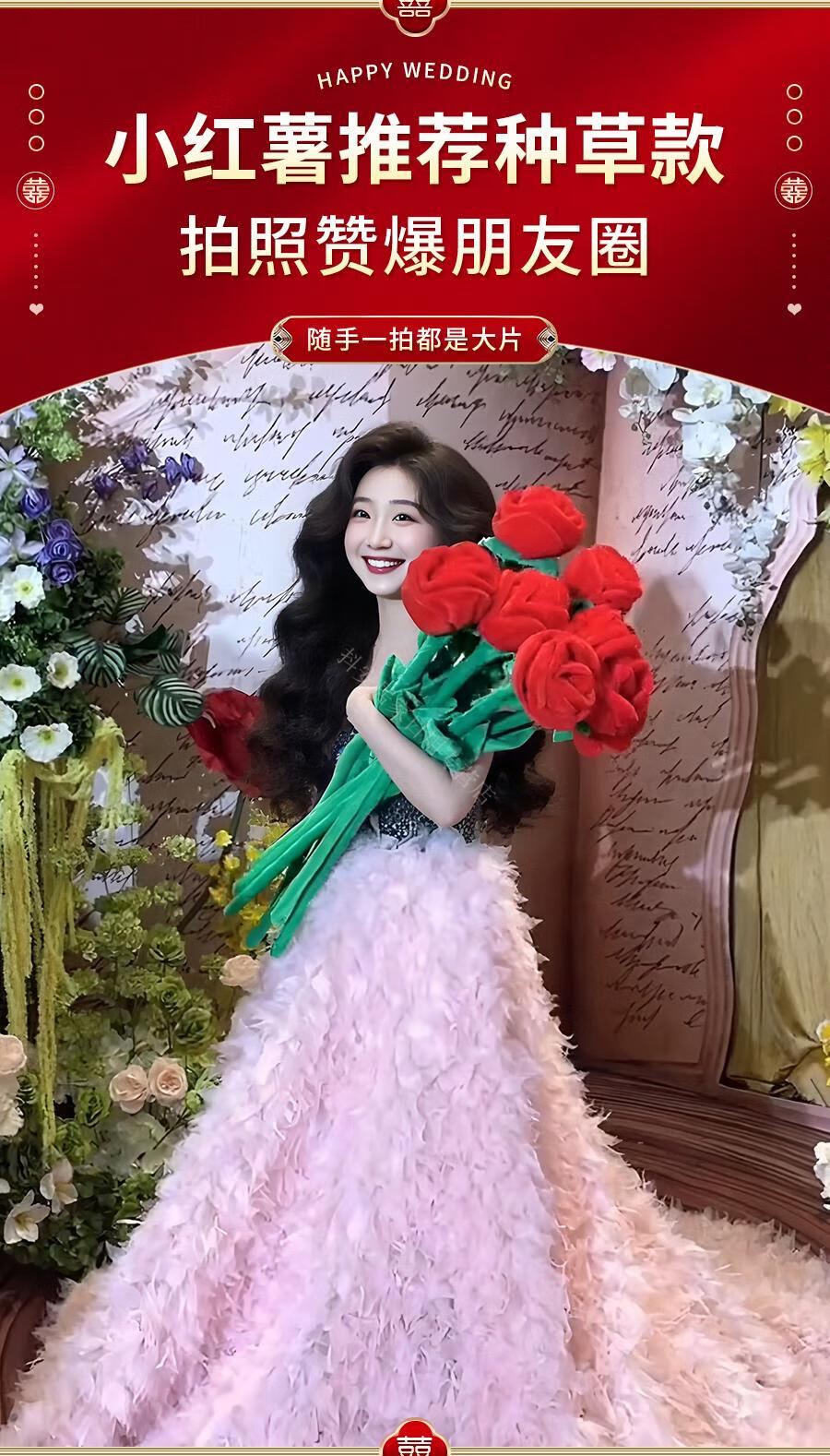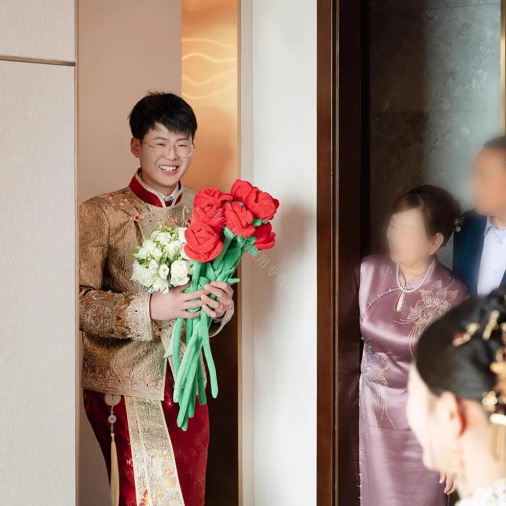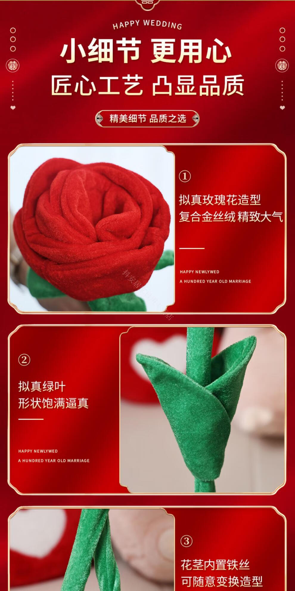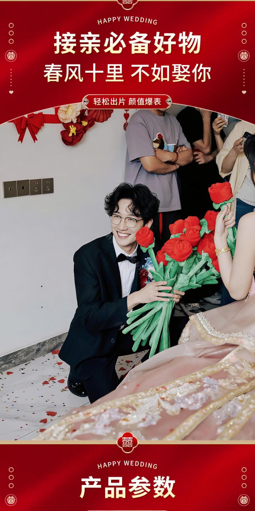 Magic Bean Shenghuo Wedding Pickup Flower Bouquet Extra Large Simulated Flower Proposal Fabric Rose Bouquet Wedding Photo Props Rose Stick Upgraded Red 100CM One Large