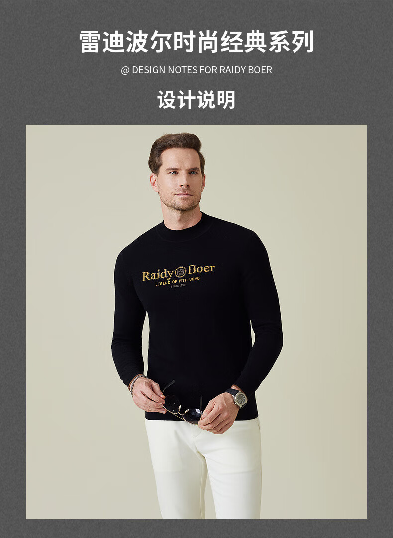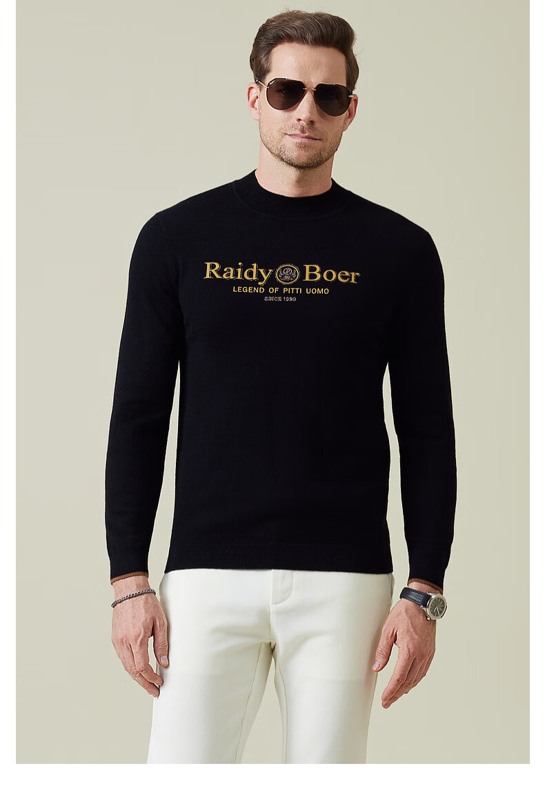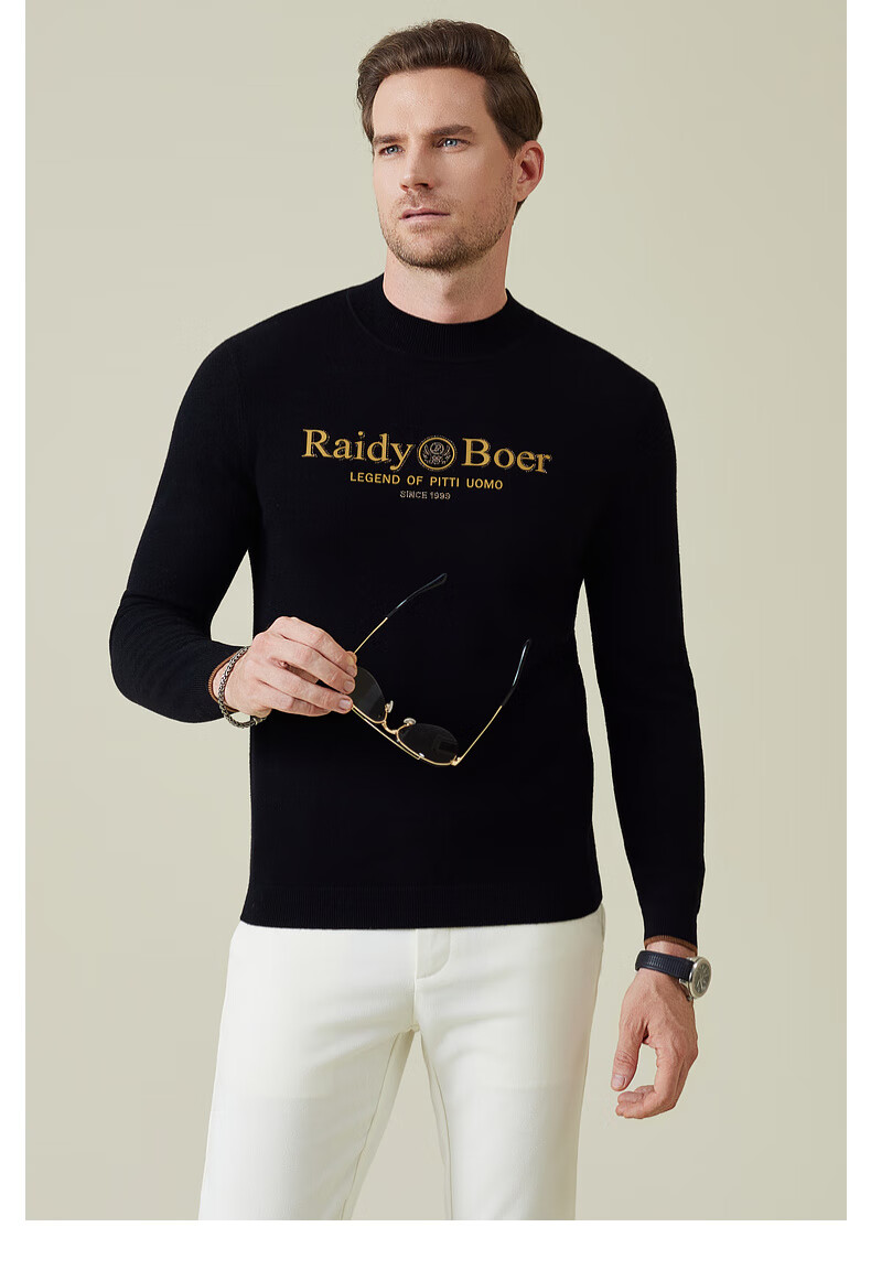 Raidy Boer Raidy Boer/Raidy Boer 100% sheep wool 2025 autumn men's knitted sweater cardigan 5053 black M /170/48
