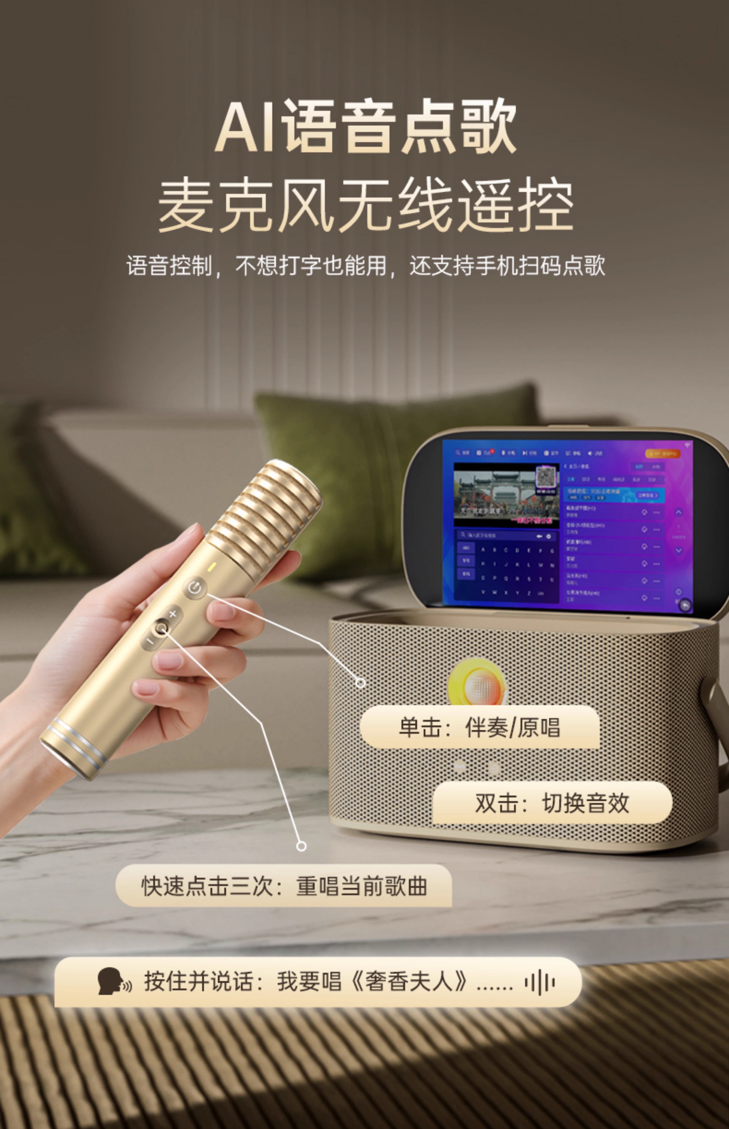 Meiniao Aichang Smart Portable Home KTV Audio Set Home Portable Outdoor Karaoke Singing and Requesting Machine Light Luxury Flagship Edition -K Song Entertainment
