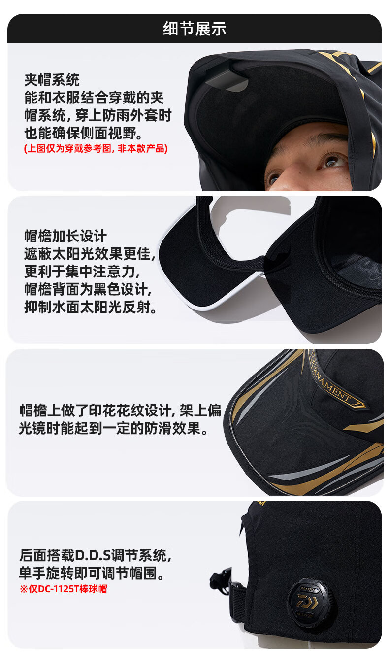 DAIWA 25 Autumn and Winter DC-1125T/1325T Tuluman Baseball Cap Hollow Top Peaked Cap Outdoor Sunshade Fishing Cap DC-1125T Baseball Cap-Black One Size