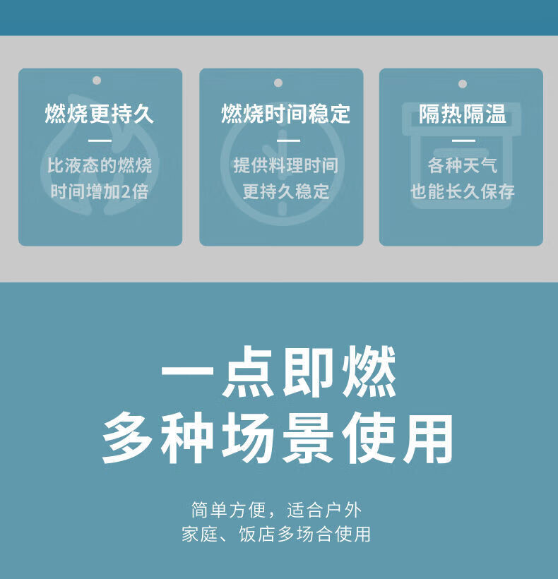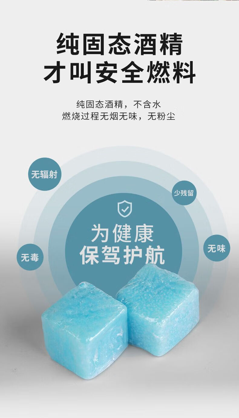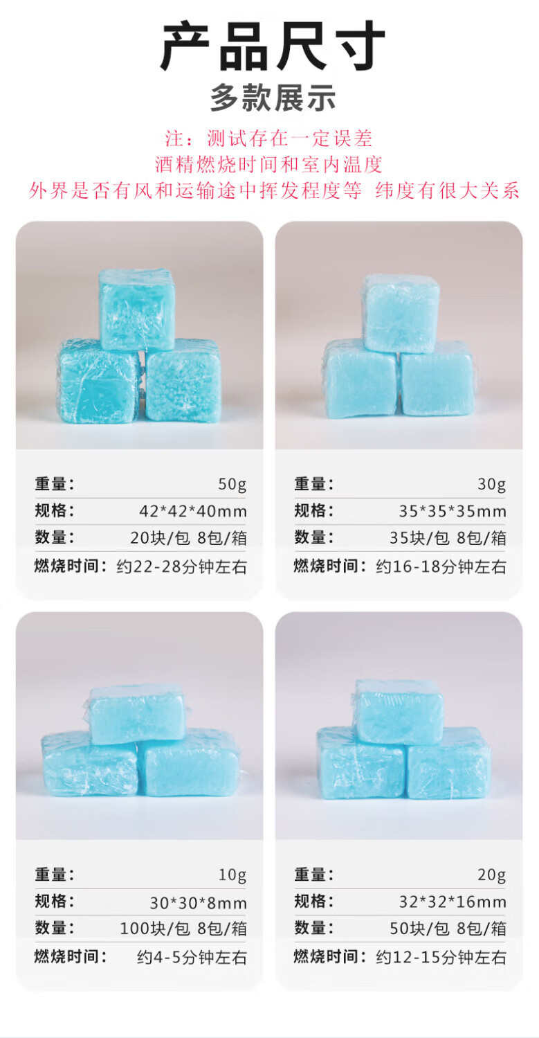 Alcohol block is easy to ignite outdoor charcoal barbecue point fire starter artifact to support combustion. 50 grams of 2Jin Jin is equal to 0.5 kilograms (about 20 grains). 20 grams of 2Jin Jin is equal to 0.5 kilograms (about 50 grains).