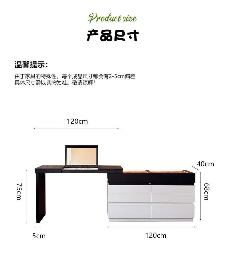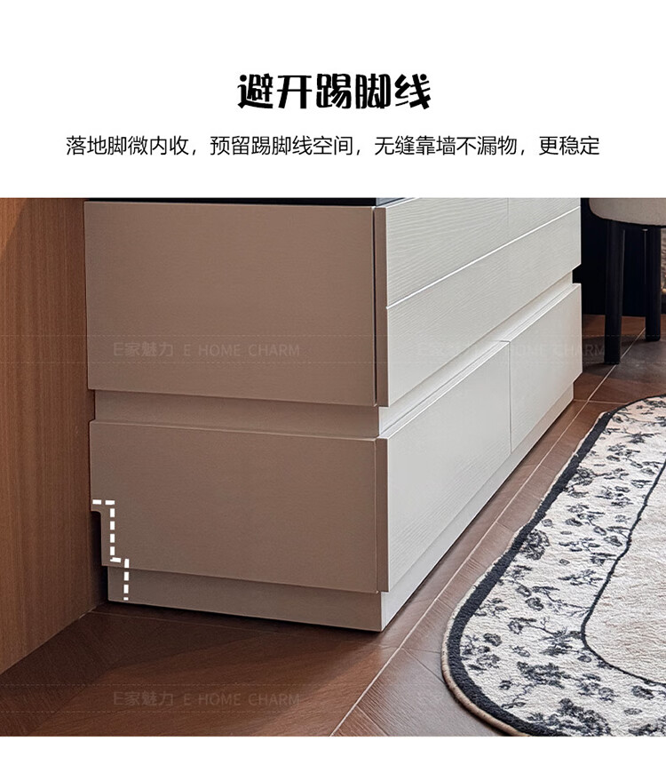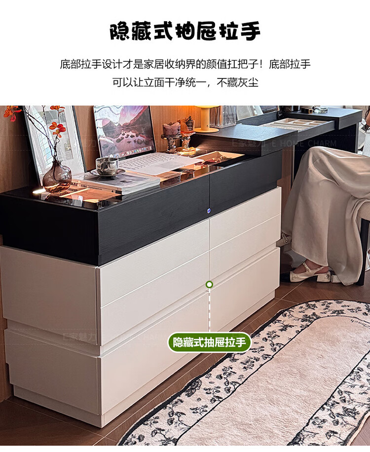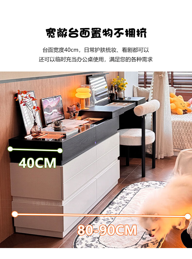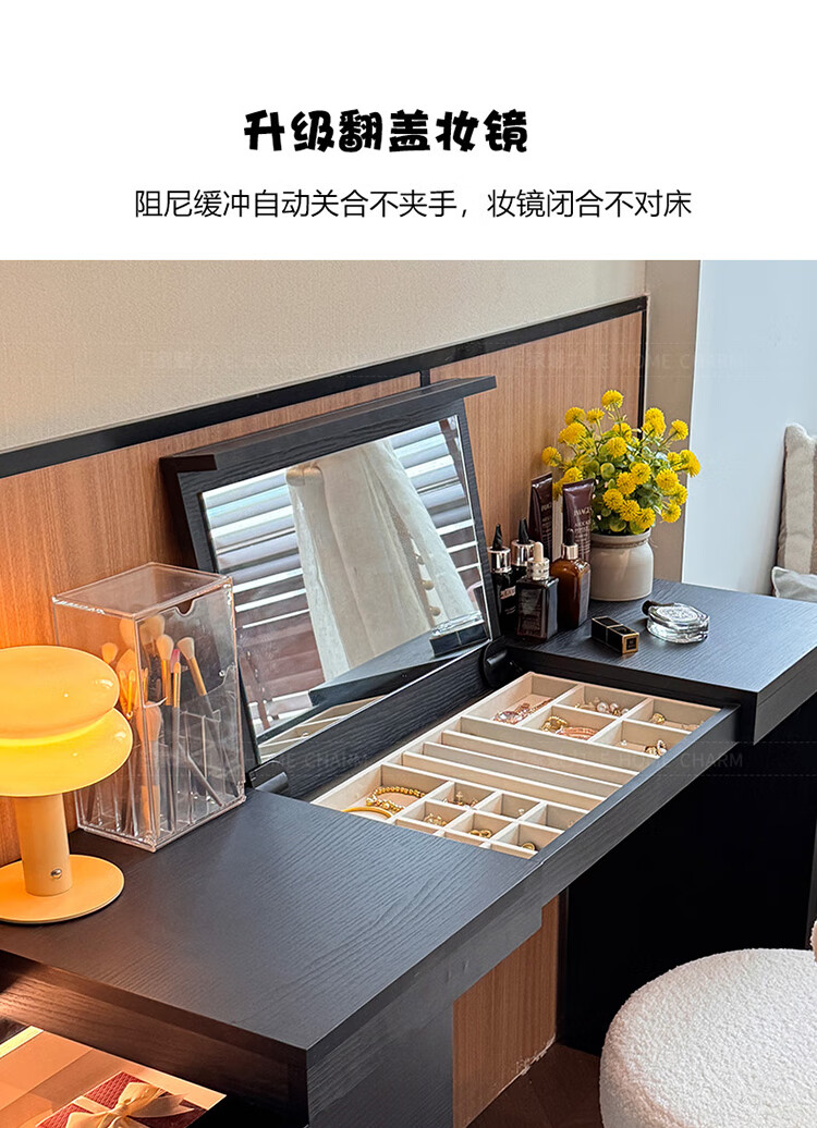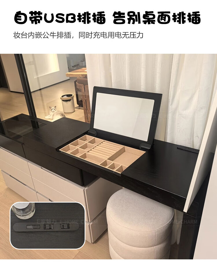 E home charm Italian light luxury flip dresser and drawer integrated bedroom bedside cabinet modern simple storage bedside cabinet dresser flip-up hidden mirror + touch sensor light warm white bull socket + concealed lock 1.2m dresser + 1.2m six drawer cabinet + makeup chair