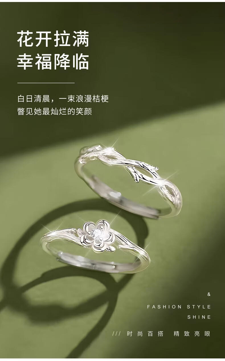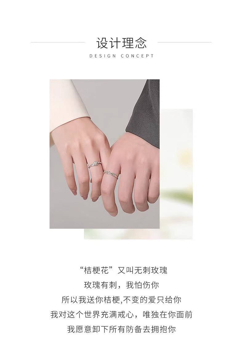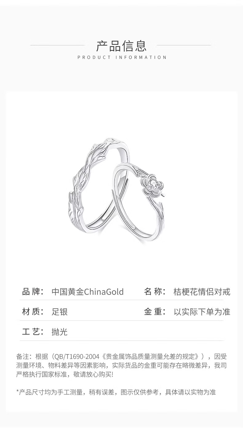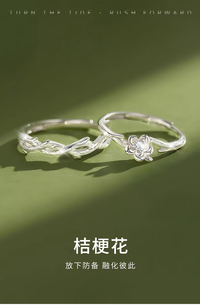 CHINA GOLD Pure Silver Platycodon Flower Couple Ring Men's and Women's Niche Design Ring Anniversary Birthday Gift for Boyfriend and Girlfriend Pure Silver Platycodon Flower Couple Ring Brand Gift Box