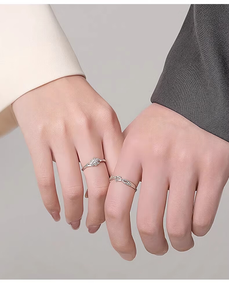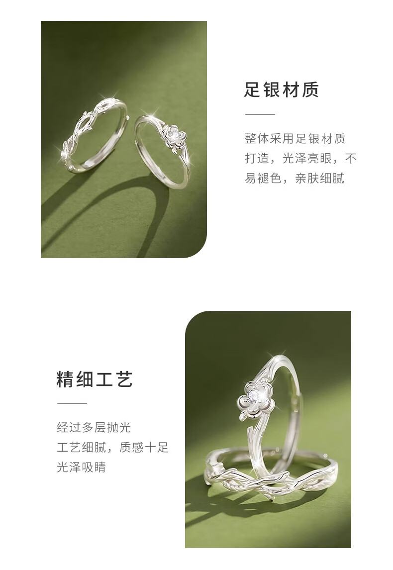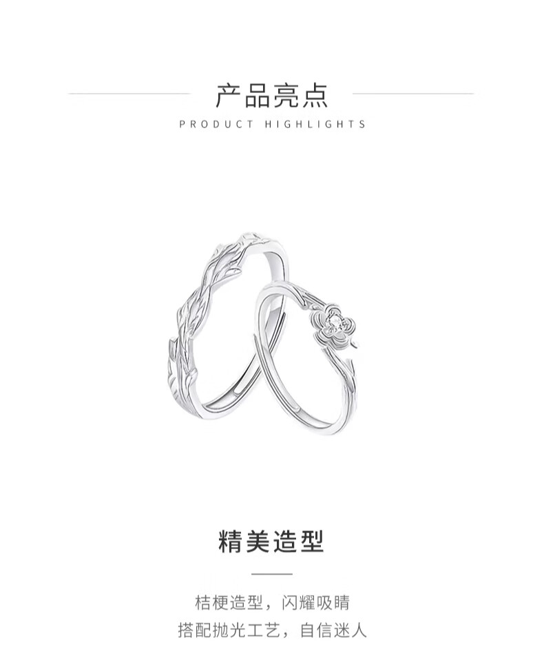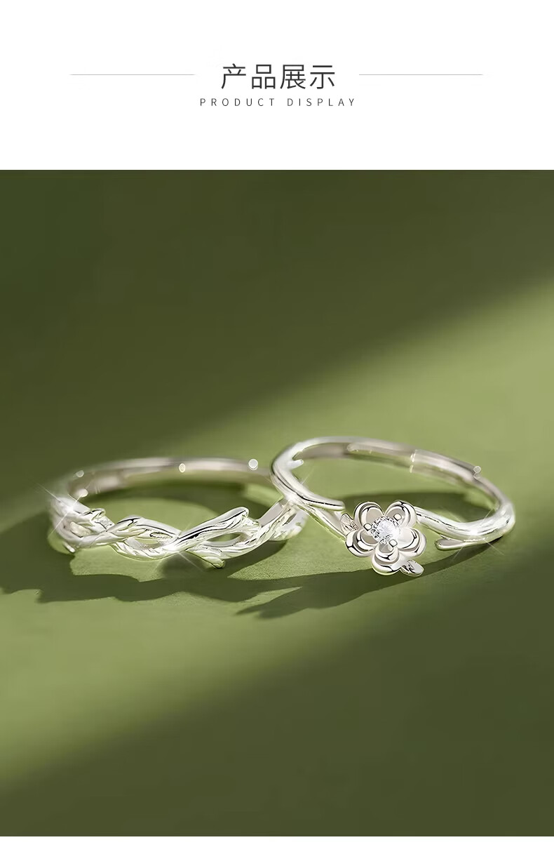 CHINA GOLD Pure Silver Platycodon Flower Couple Ring Men's and Women's Niche Design Ring Anniversary Birthday Gift for Boyfriend and Girlfriend Pure Silver Platycodon Flower Couple Ring Brand Gift Box
