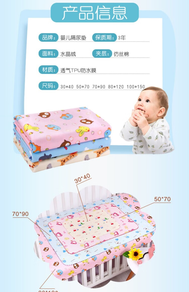 Baby double-sided crystal velvet diaper pad, washable, waterproof and breathable, newborn small leak-proof pad, baby diaper mattress, 70*90 cm, yellow, 1 pack, random pattern 0x0cm