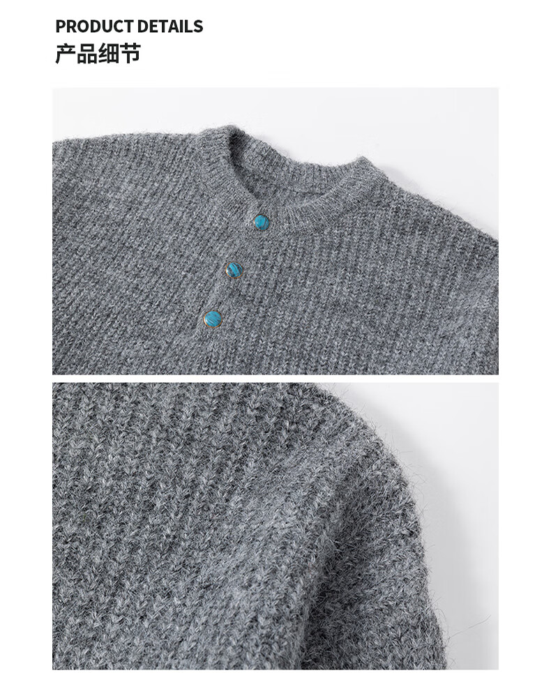 Woodpecker American trendy brand Henry collar sweater for men autumn and winter 2025 new style sweater lazy retro long-sleeved oatmeal color M recommended 105Jin Jin equal to within 0.5kg