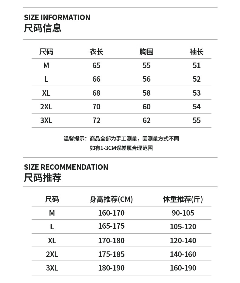 China (cm) 165 / 88-90 170 / 96-98 175 / 108-110 180 / 118-122 185 / 126-130