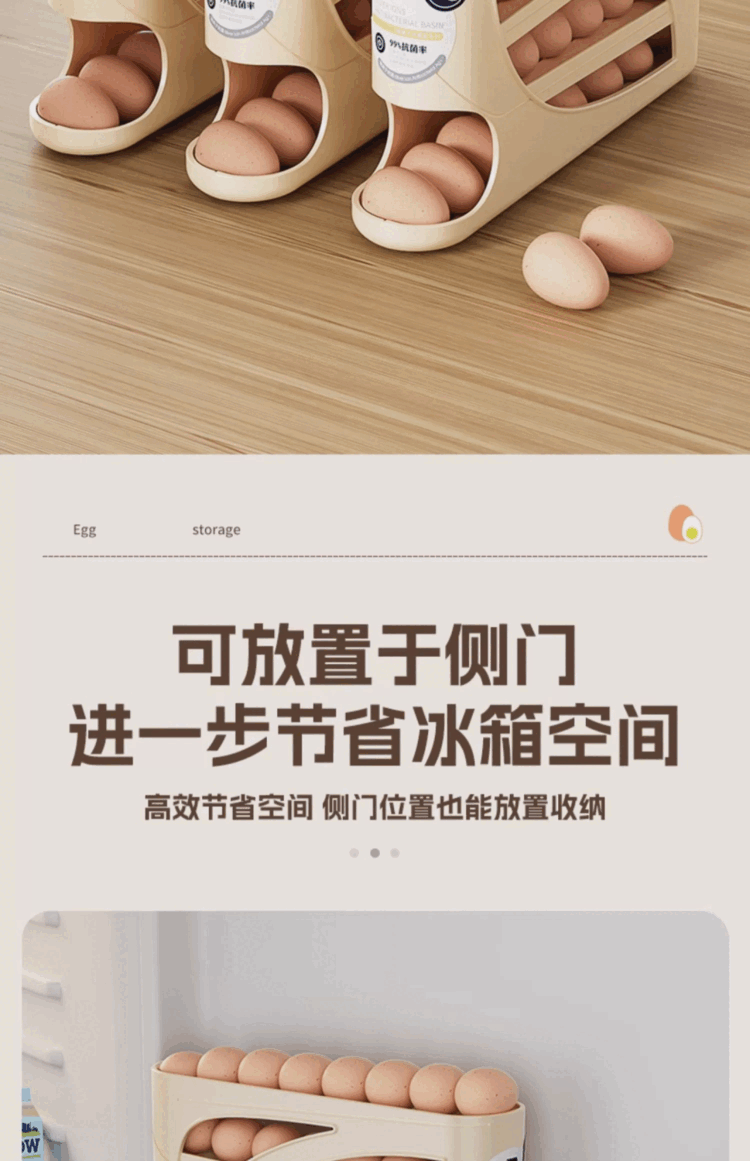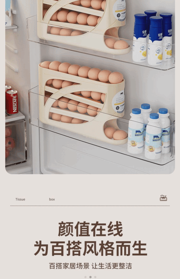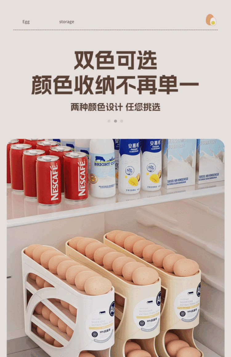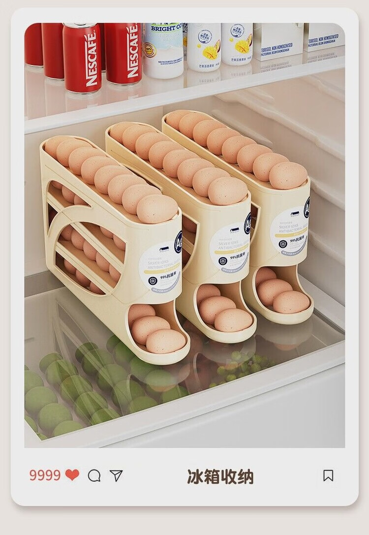 Aosda slide rolling egg storage box storage home refrigerator side door kitchen egg taking artifact new automatic egg rolling rack upgraded replacement cream color 1 pack can hold about 30 eggs