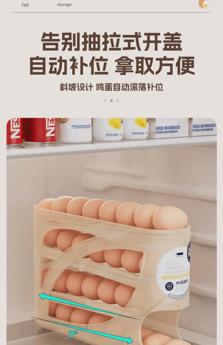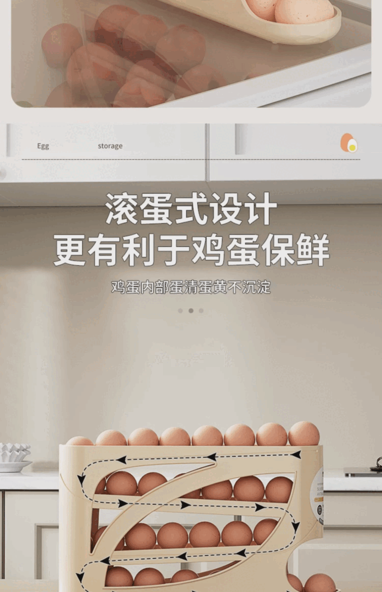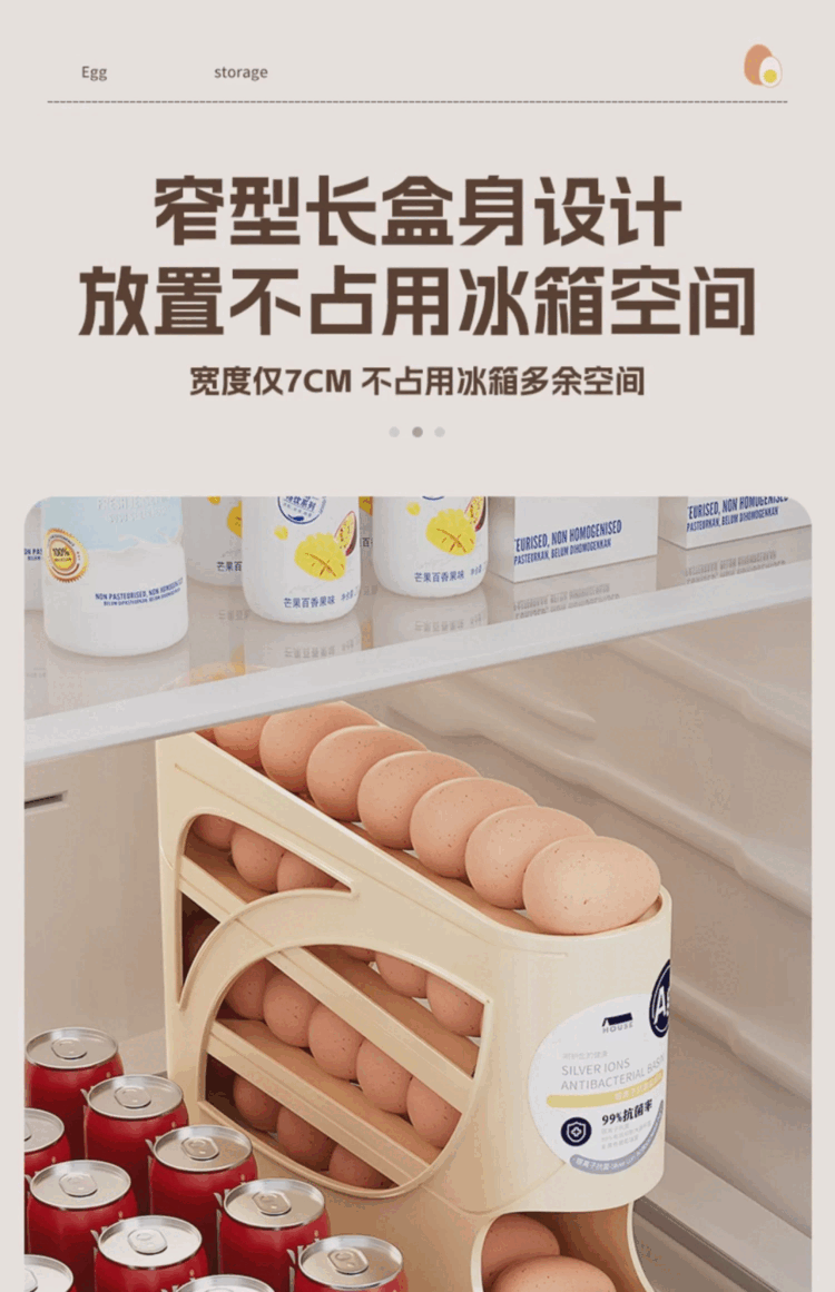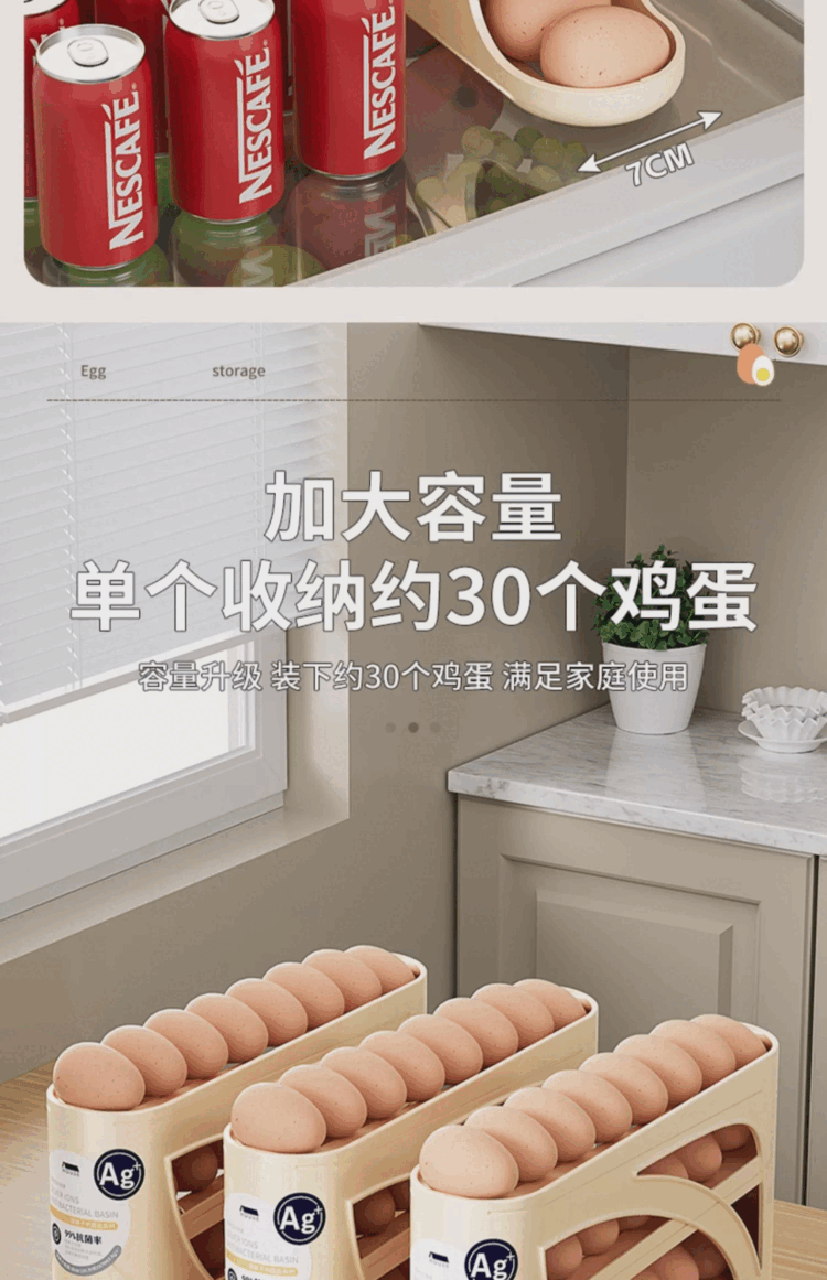 Aosda slide rolling egg storage box storage home refrigerator side door kitchen egg taking artifact new automatic egg rolling rack upgraded replacement cream color 1 pack can hold about 30 eggs