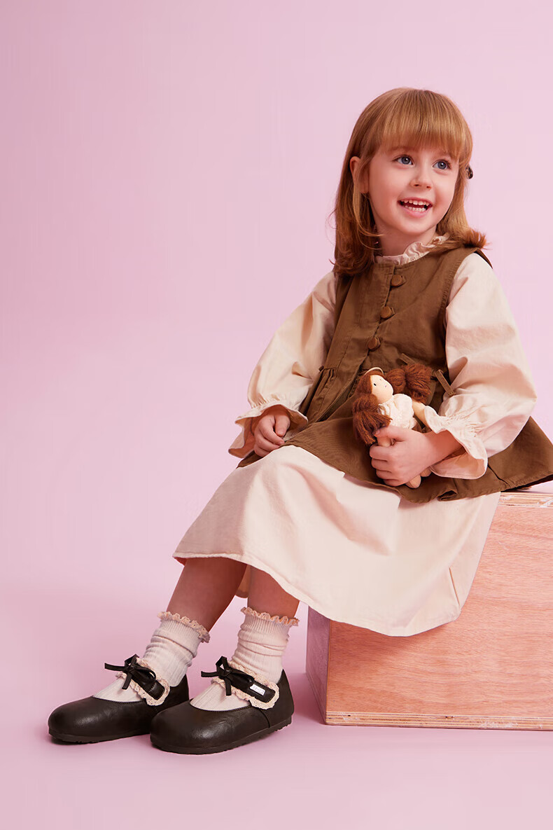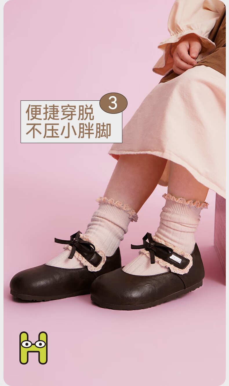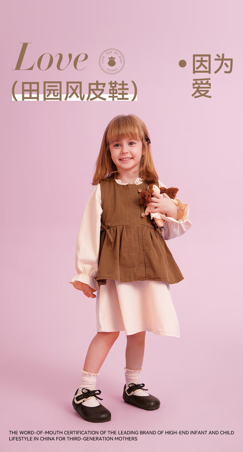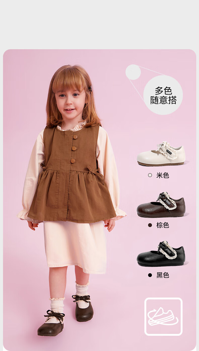 YEEHOO children's shoes girls' flat shoes 2025 autumn new soft-soled princess shoes children's bean shoes little girls leather shoes brown size 30 - suitable for feet 18.8-19.1cm long