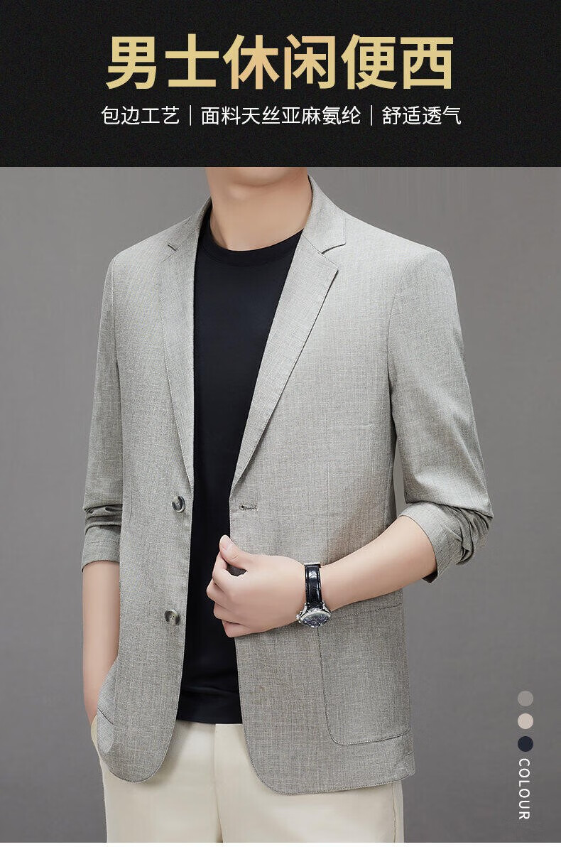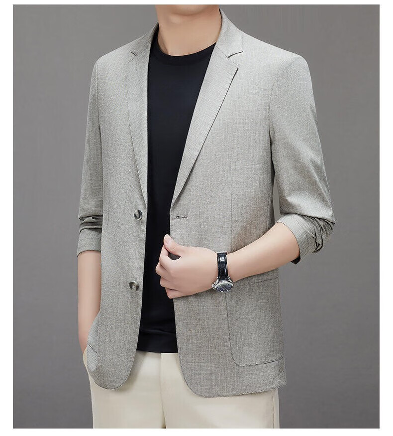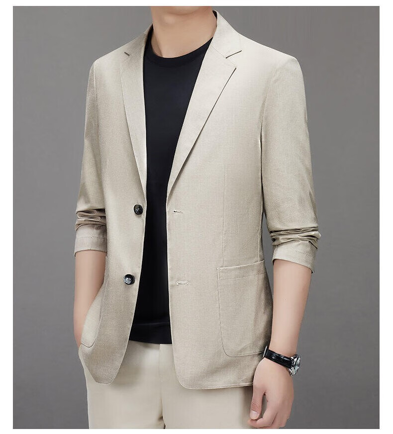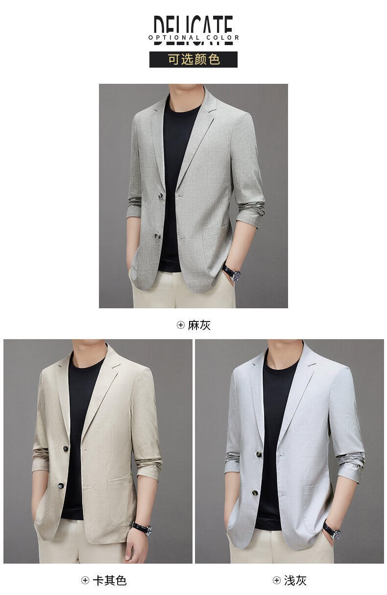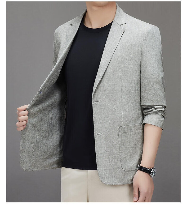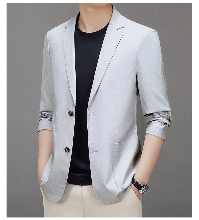Lilang linen casual suit men's spring thin cotton and linen suit jacket white spring and summer top single piece light gray light gray 2XL 185/