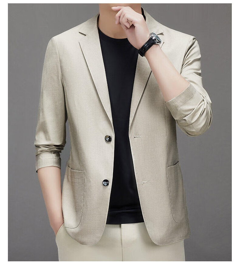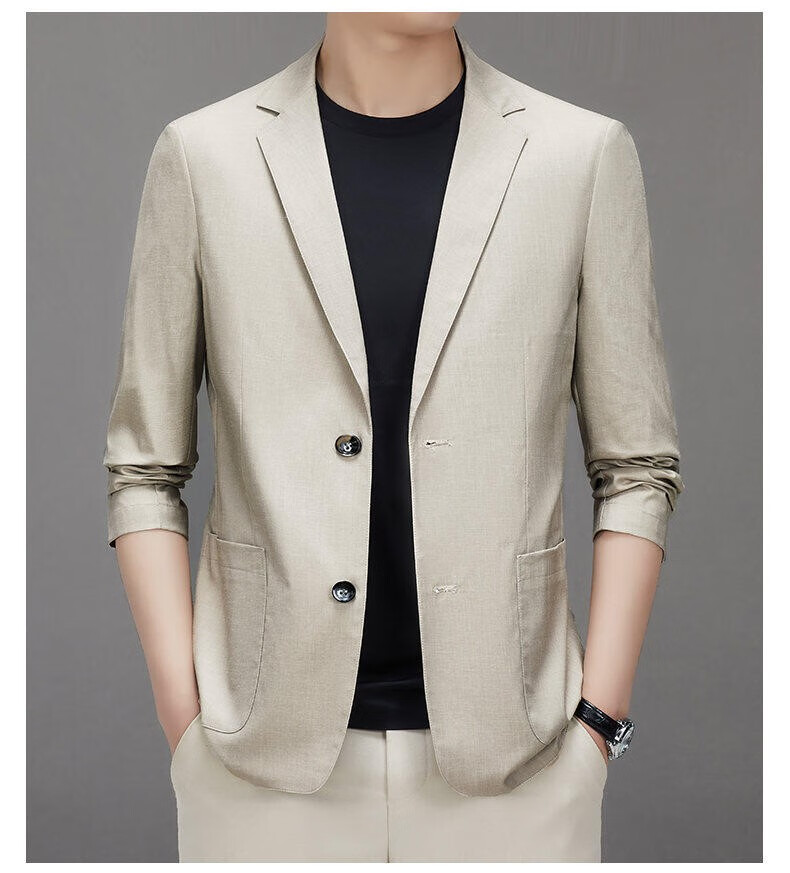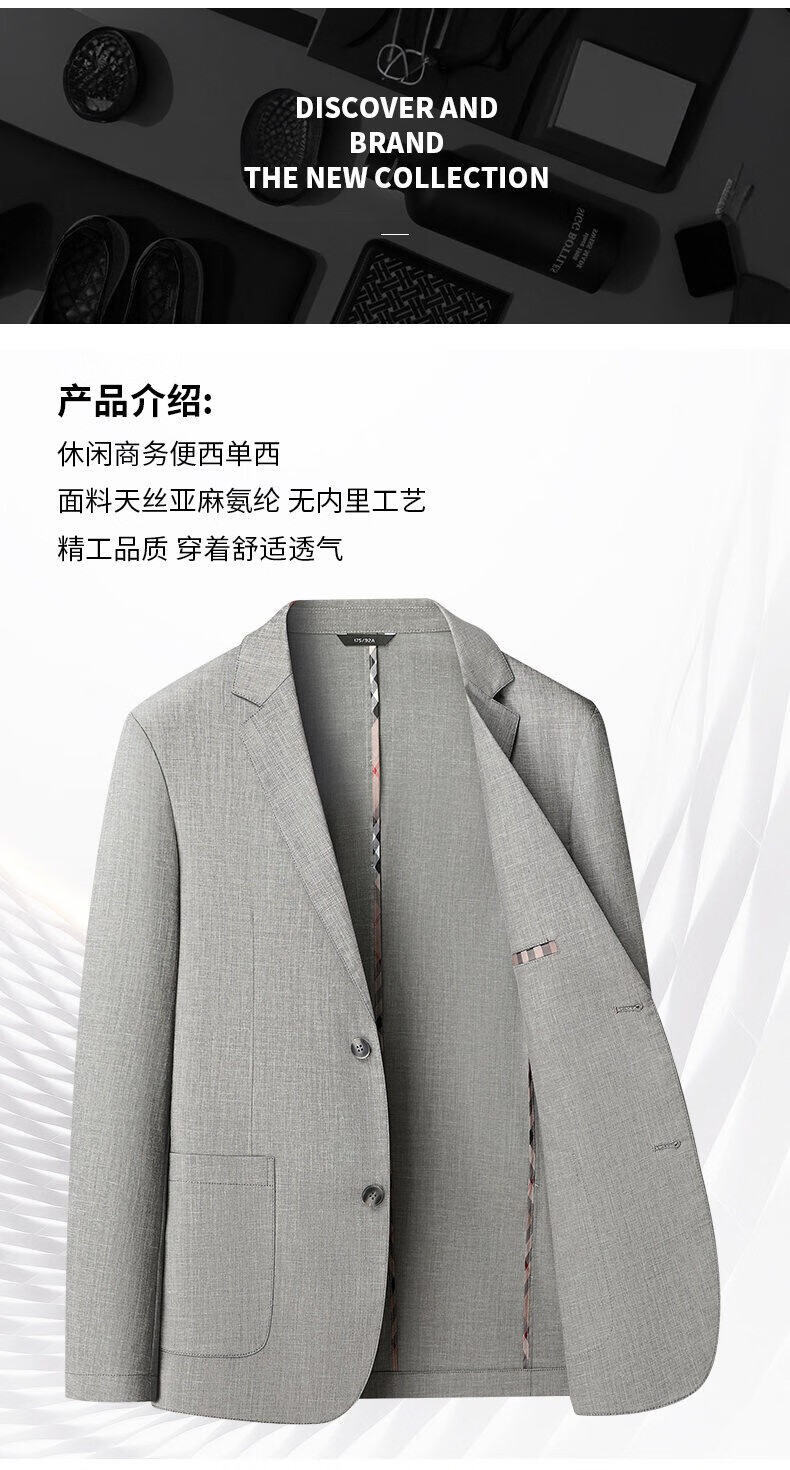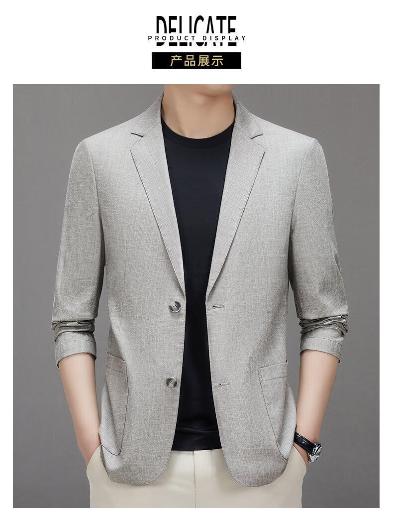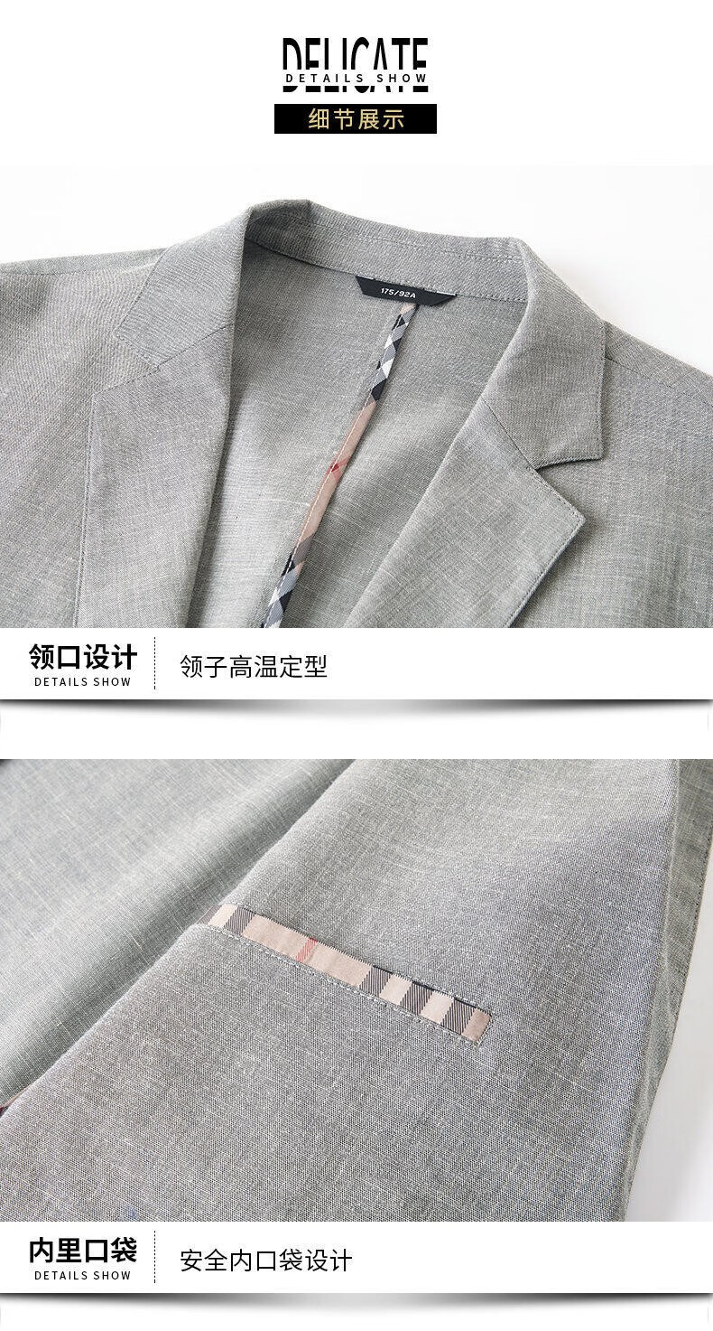 Lilang linen casual suit men's spring thin cotton and linen suit jacket white spring and summer top single piece light gray light gray 2XL 185/