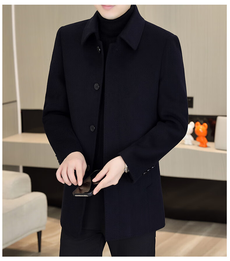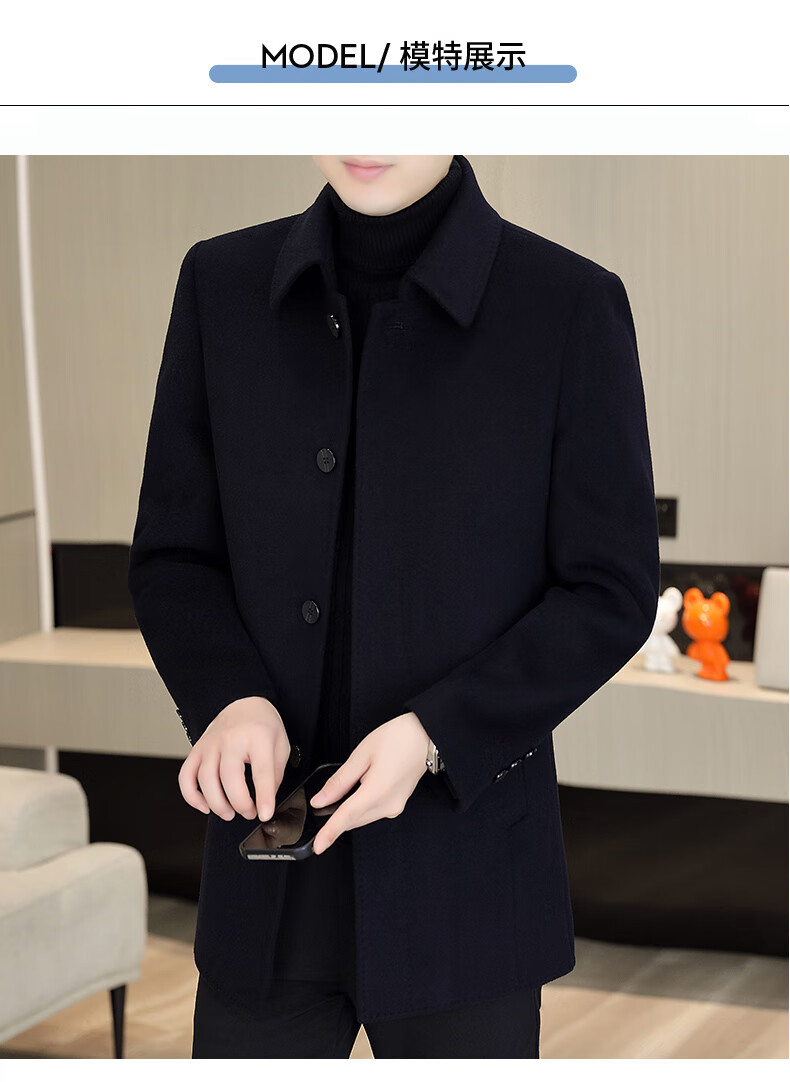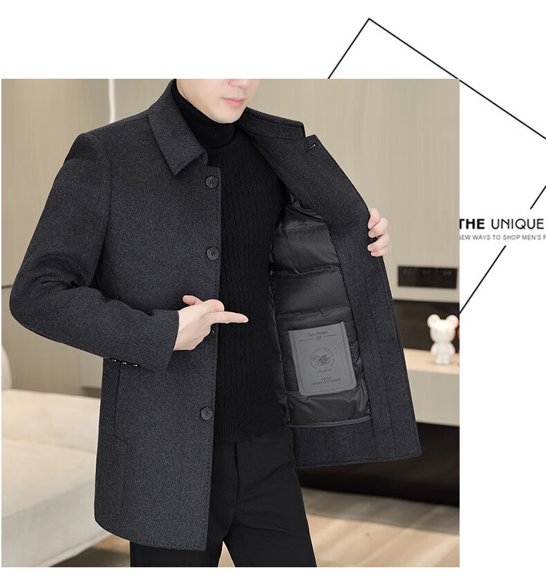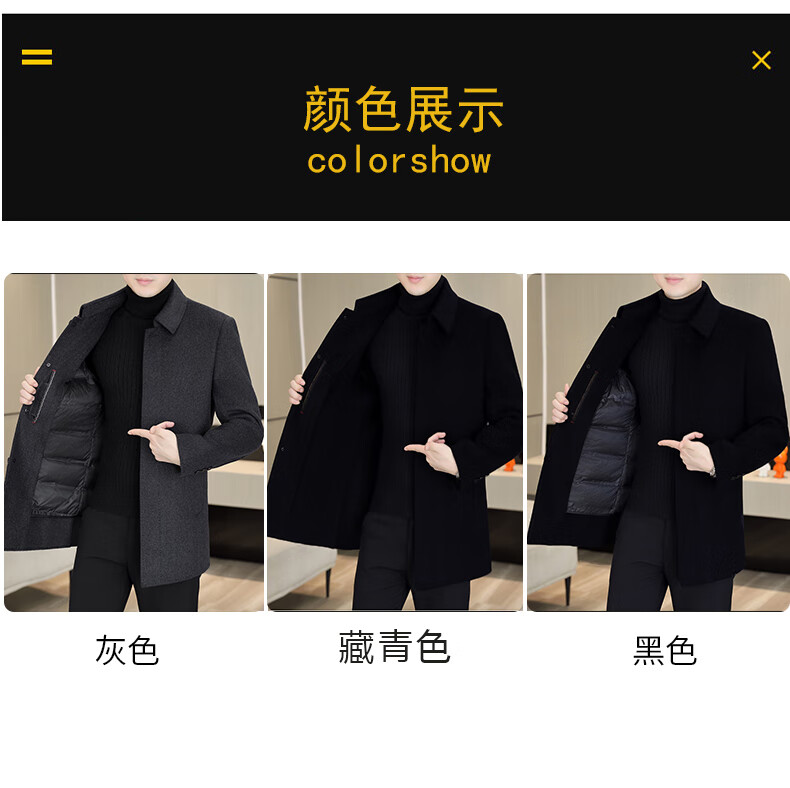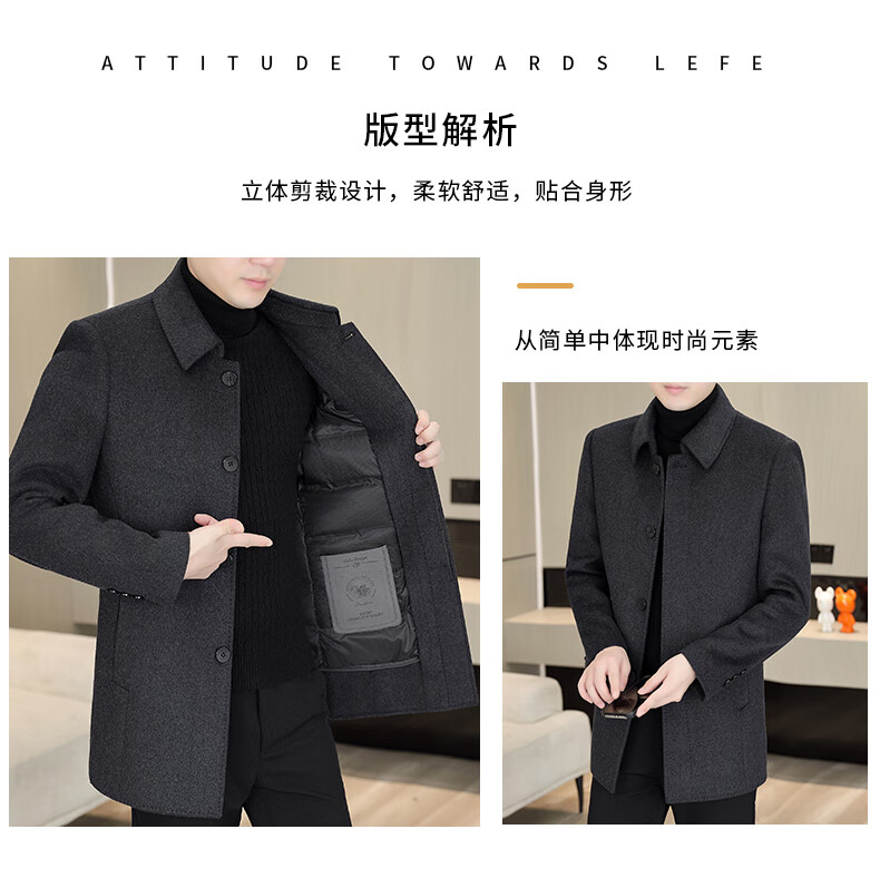 ROMON Wool Double-sided Wool Coat Men's Mid-Length Lapel Windbreaker Men's Winter Goose Down Lined Jacket Black F11 (Double-sided Wool + Goose Down Lined) L Recommended 115-125 Jin Jin equals 0.5 kg
