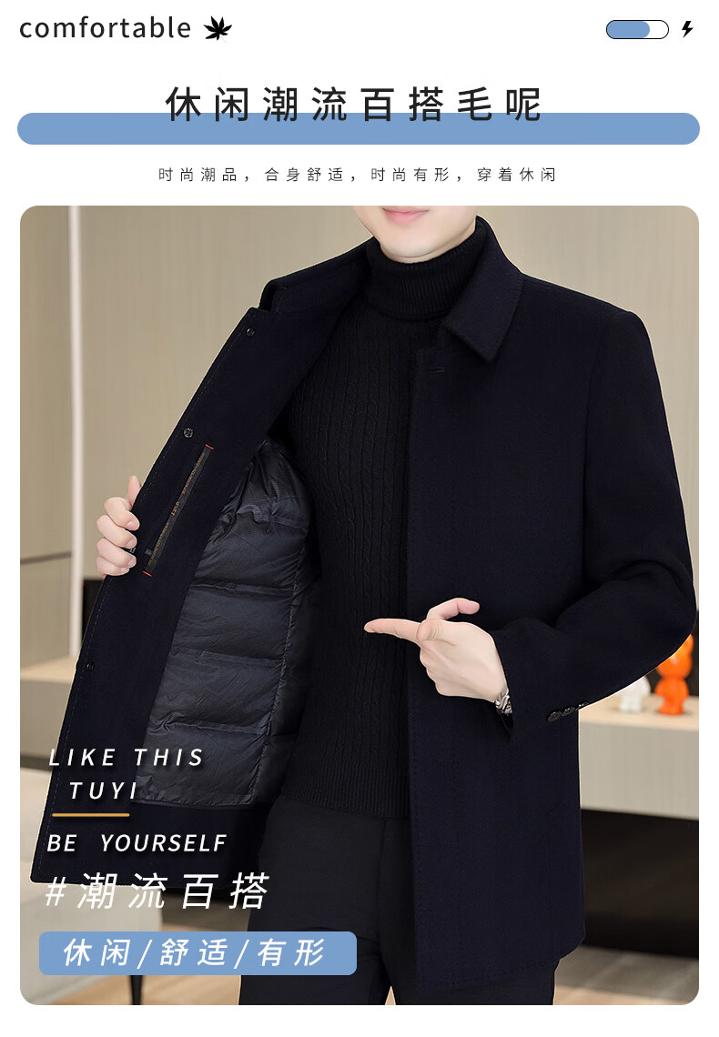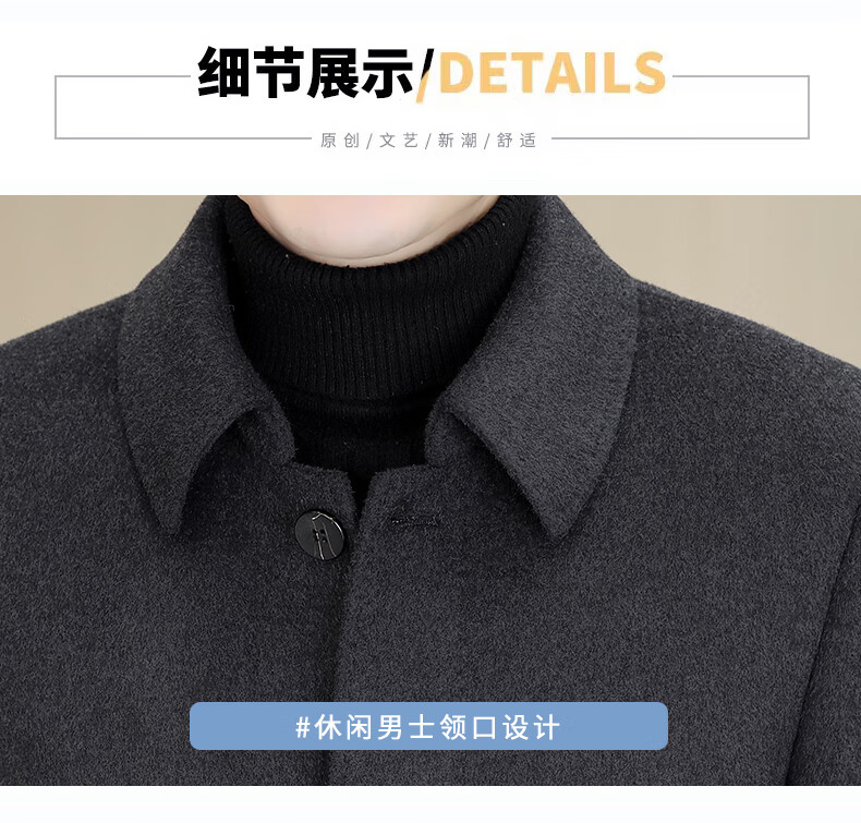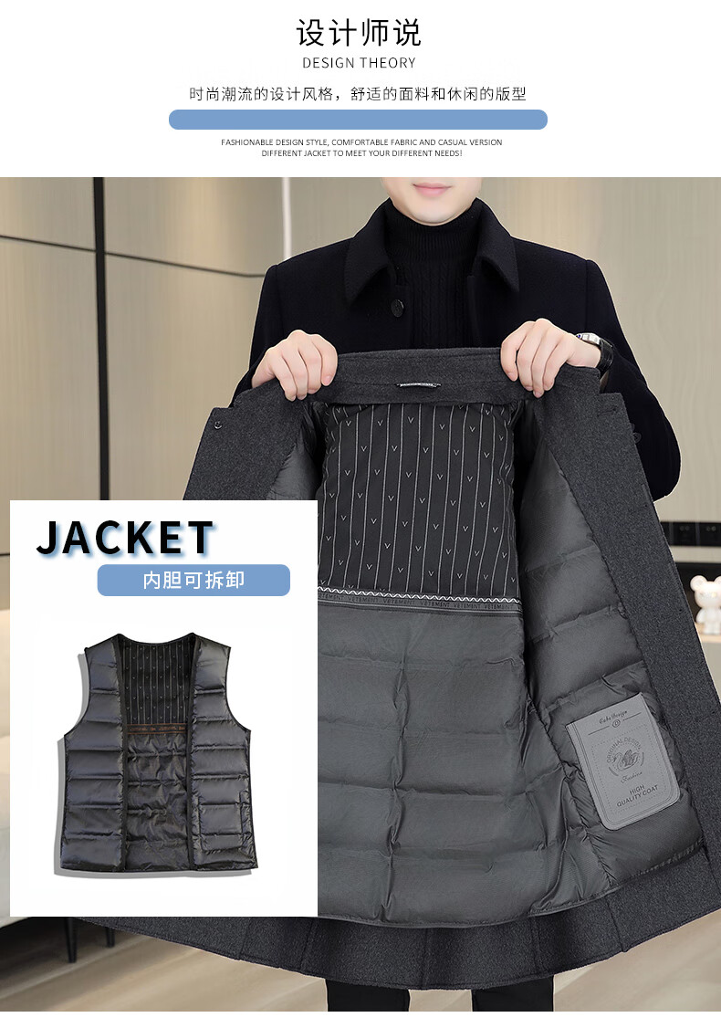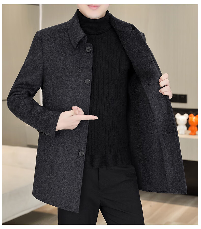 ROMON Wool Double-sided Wool Coat Men's Mid-Length Lapel Windbreaker Men's Winter Goose Down Lined Jacket Black F11 (Double-sided Wool + Goose Down Lined) L Recommended 115-125 Jin Jin equals 0.5 kg