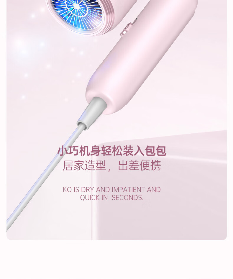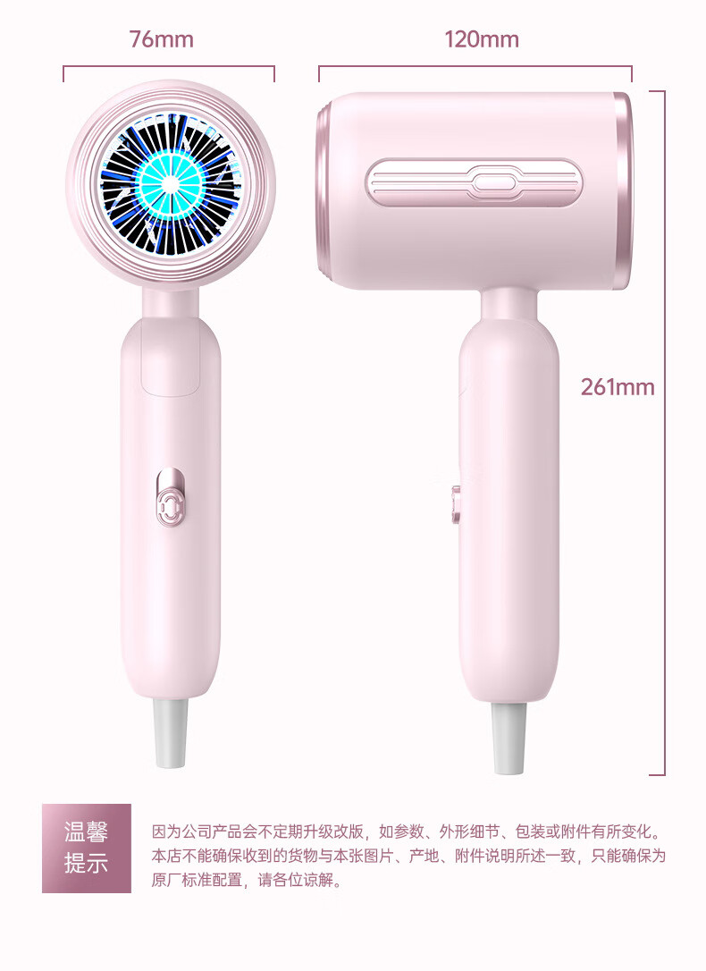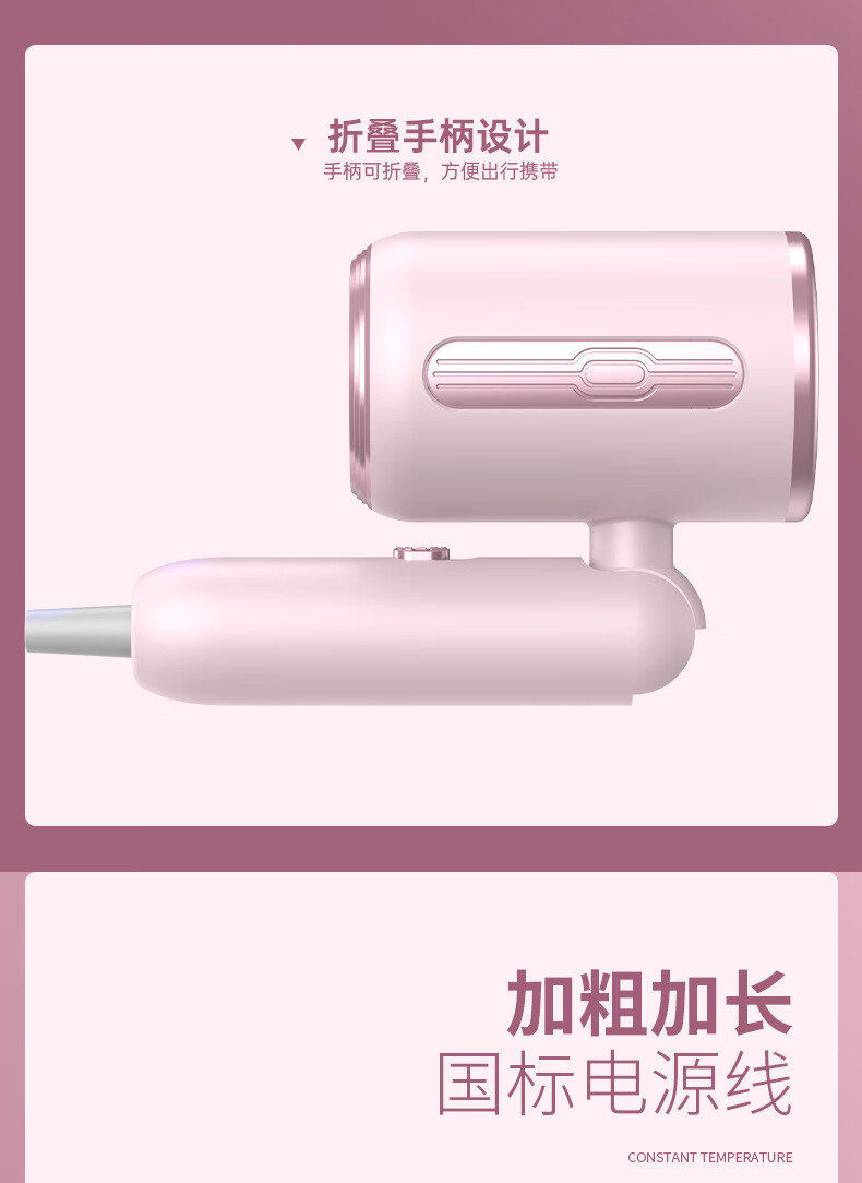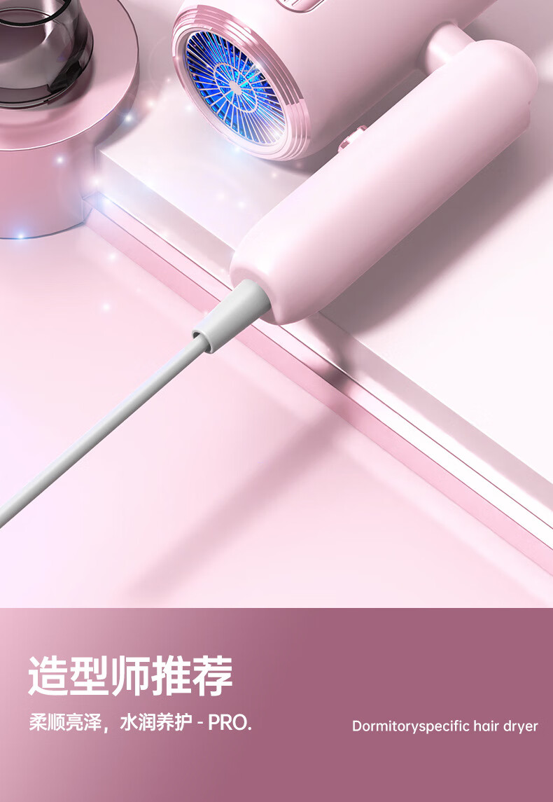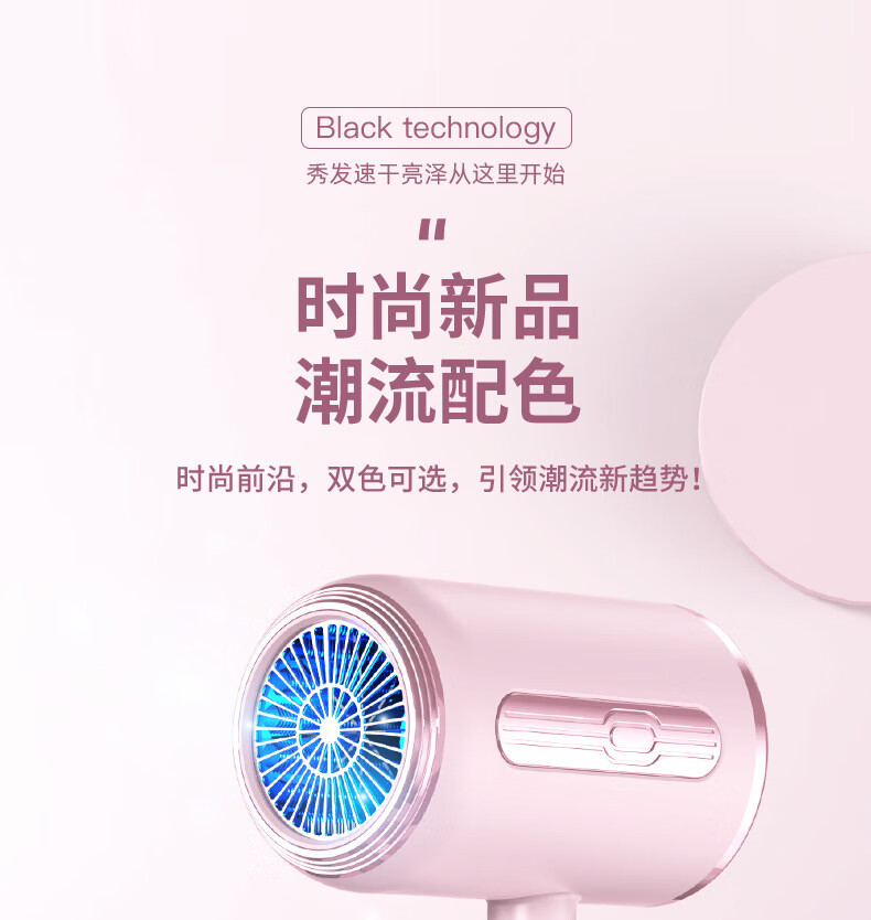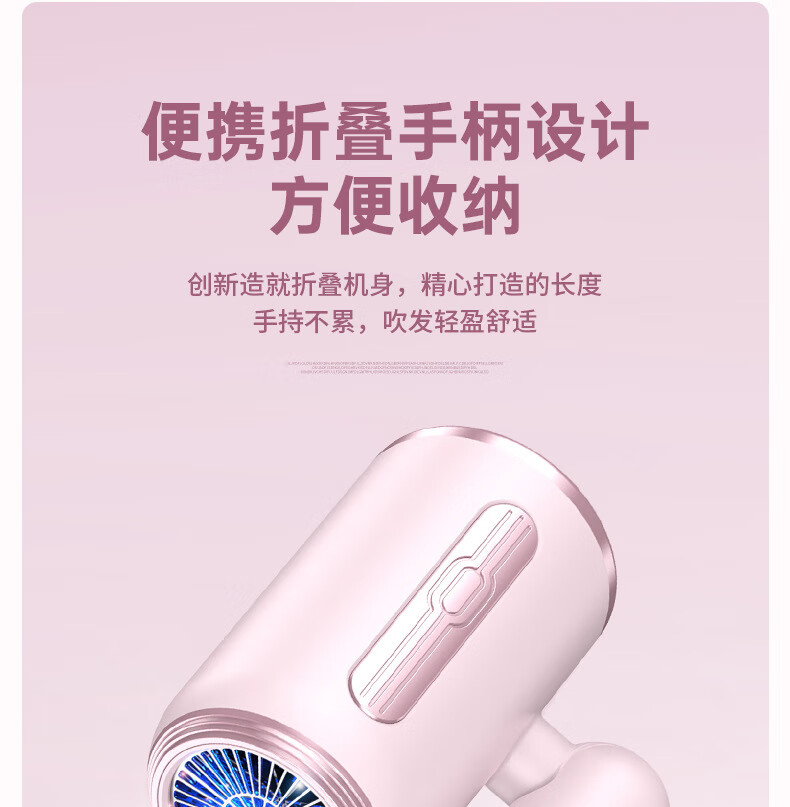 Foldable high-speed and large-power hair dryer for home use with blue light that does not hurt hair. Dormitory use for students with hot and cold air appliances. Light pink 2400W Collection MAX version. Foldable