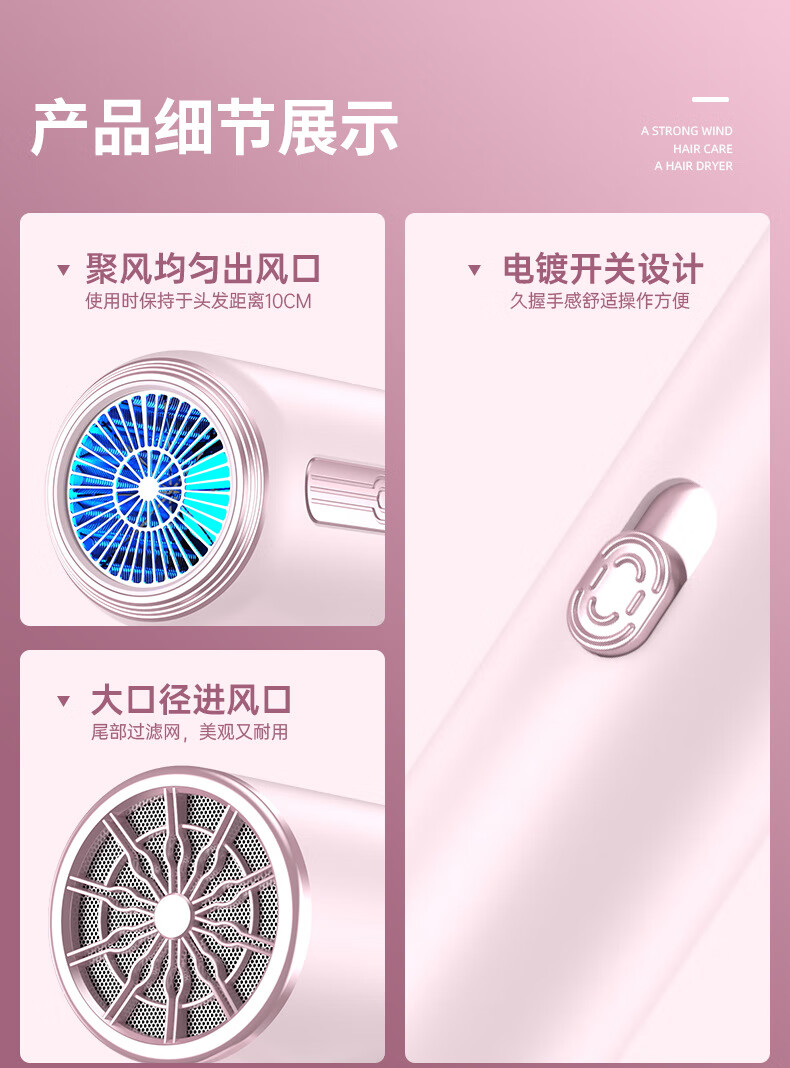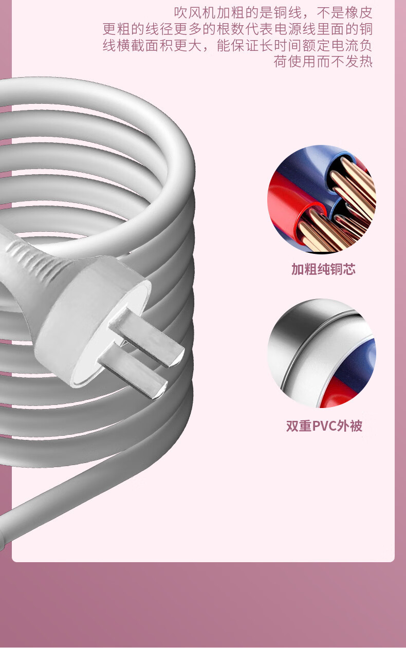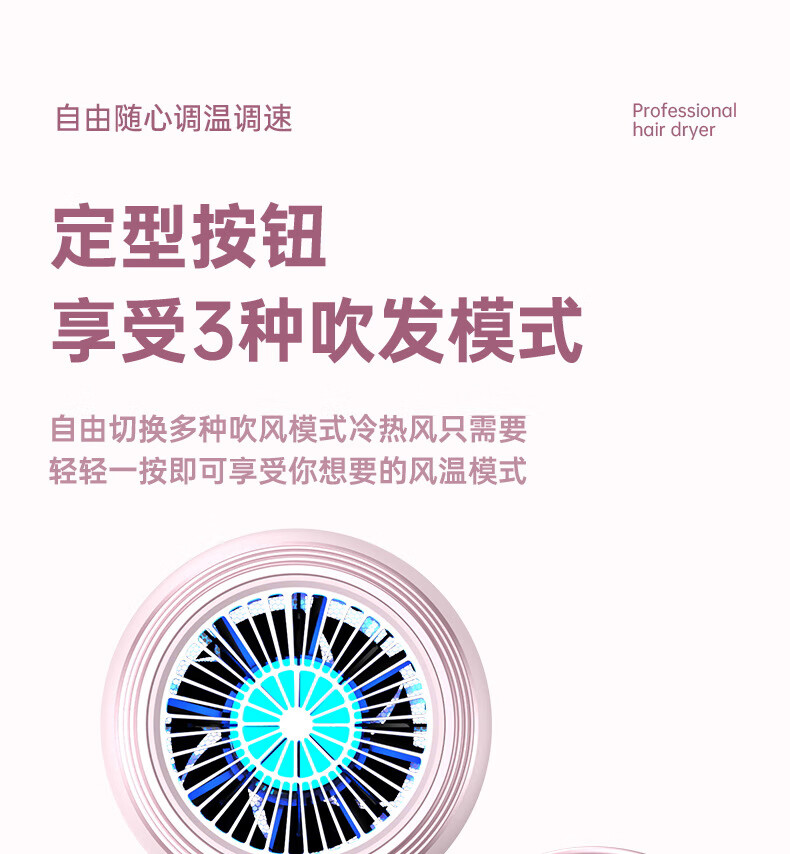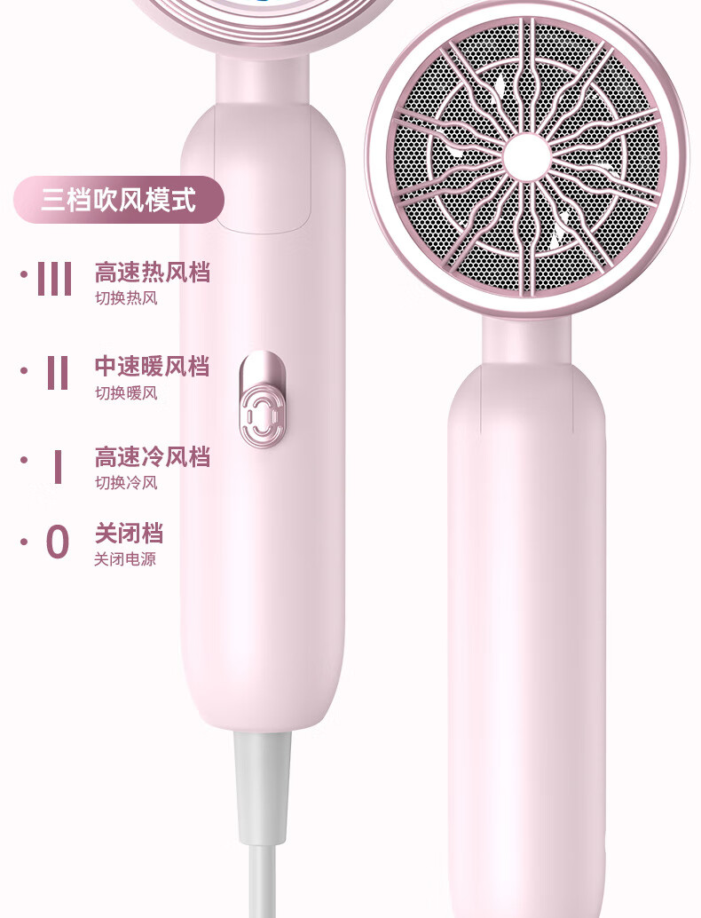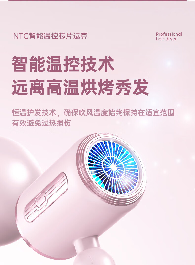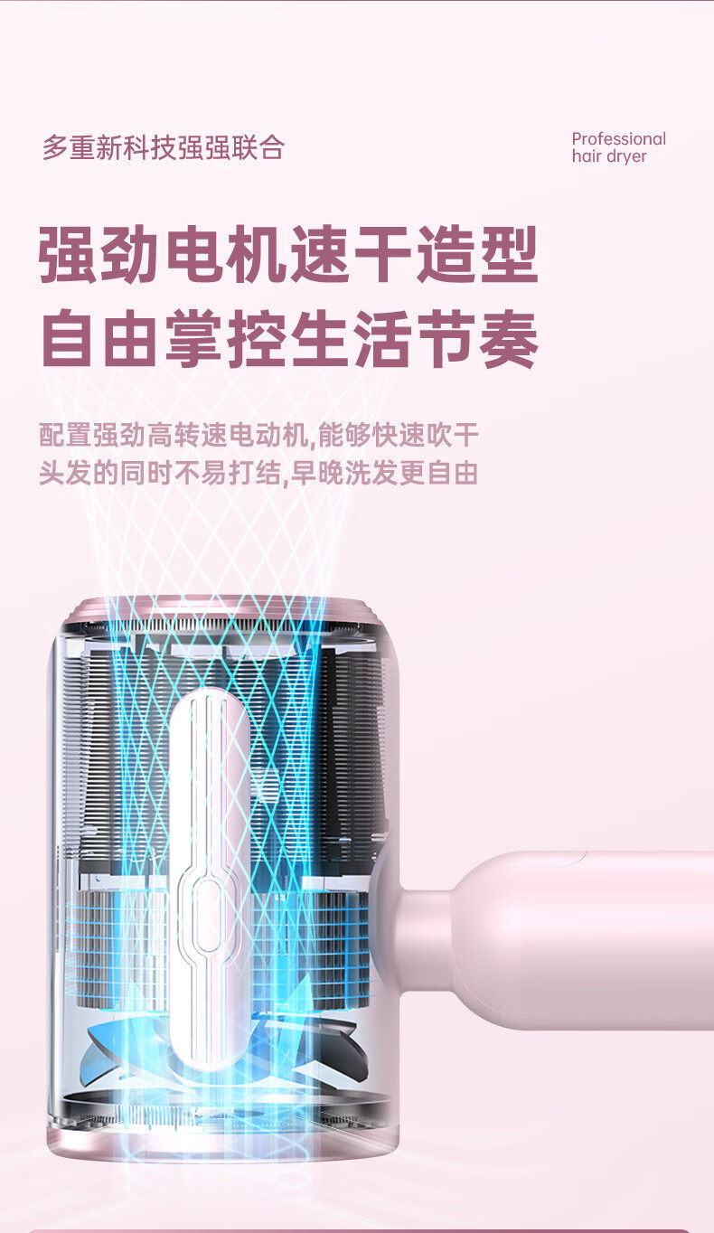 Foldable high-speed and large-power hair dryer for home use with blue light that does not hurt hair. Dormitory use for students with hot and cold air appliances. Light pink 2400W Collection MAX version. Foldable