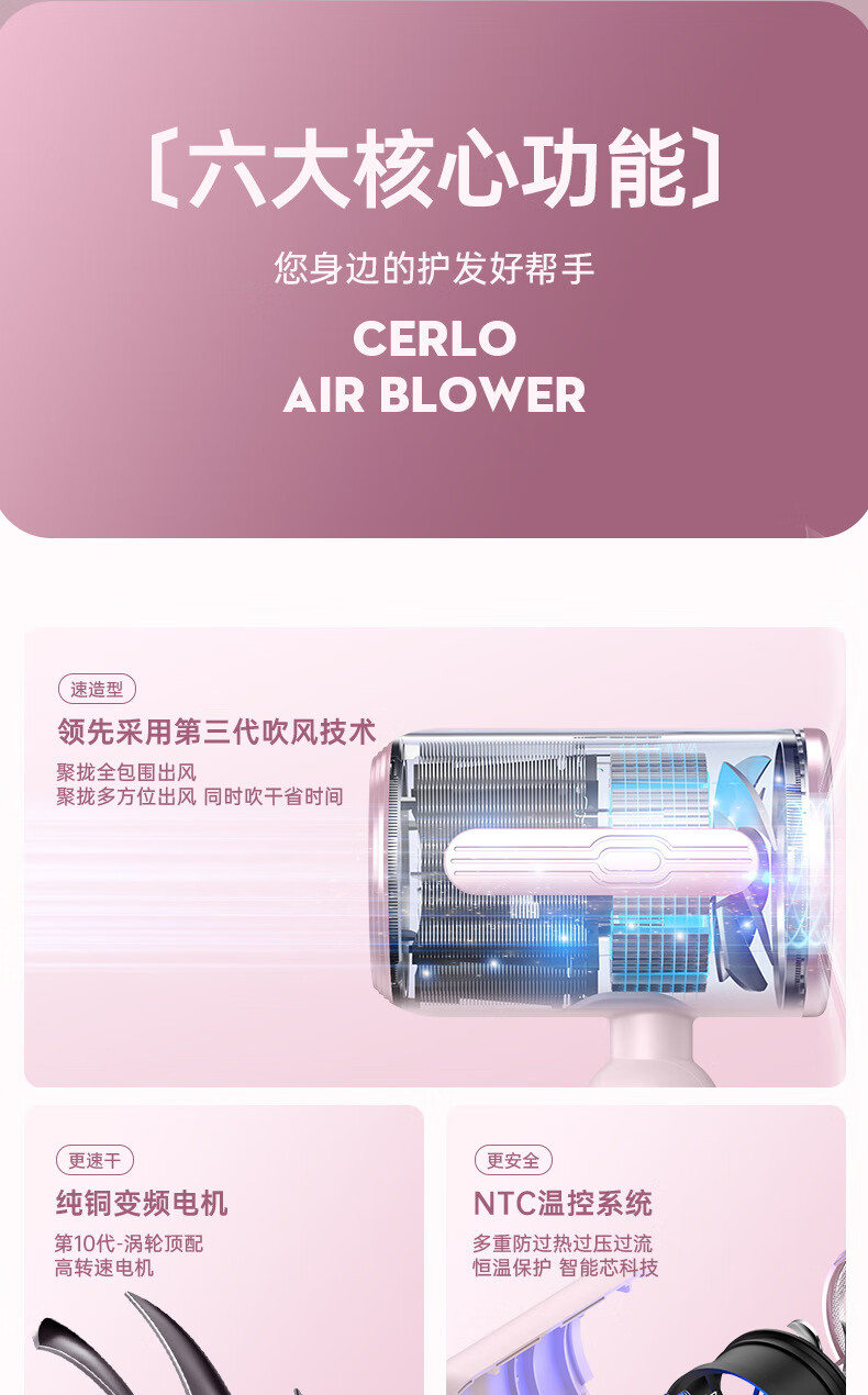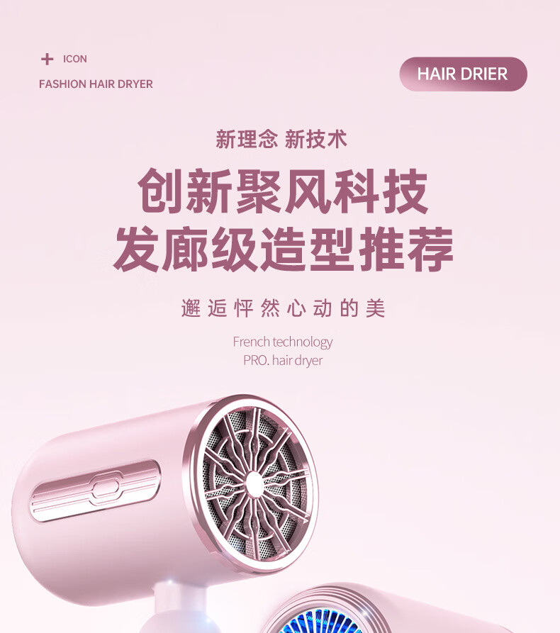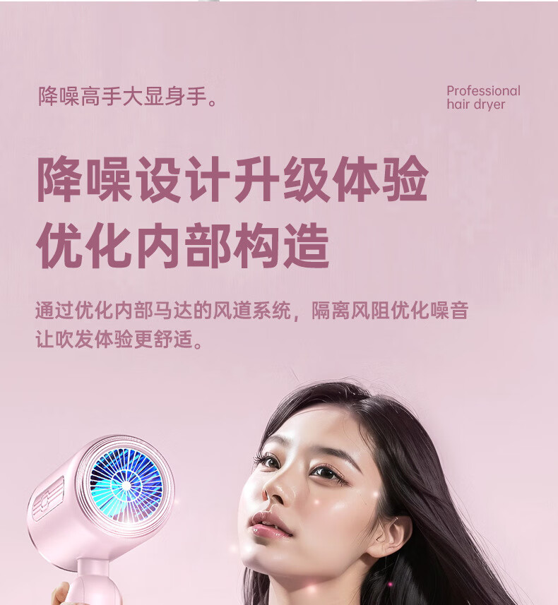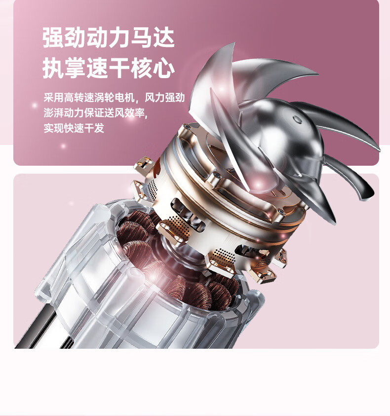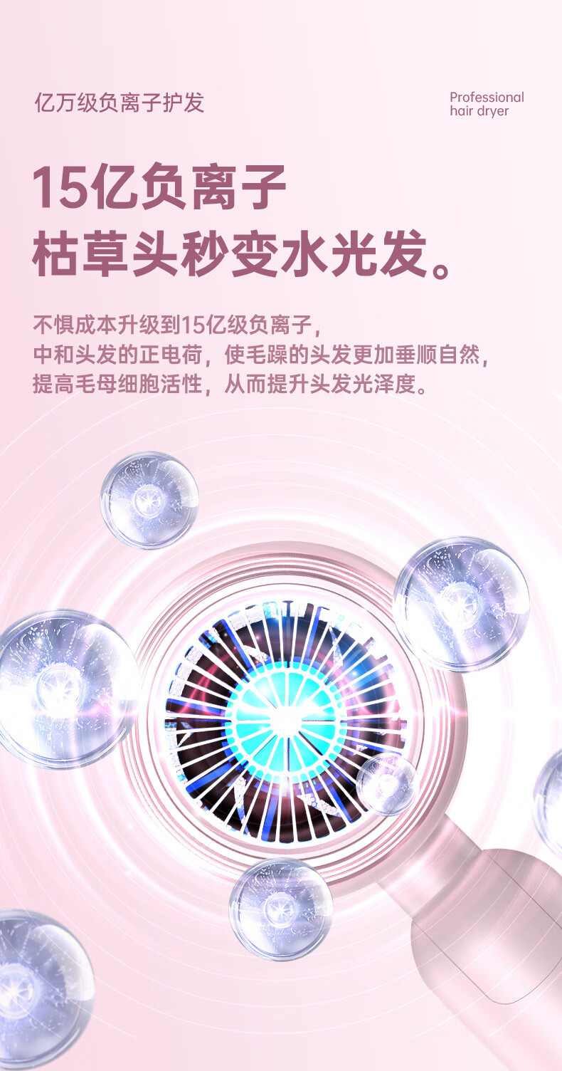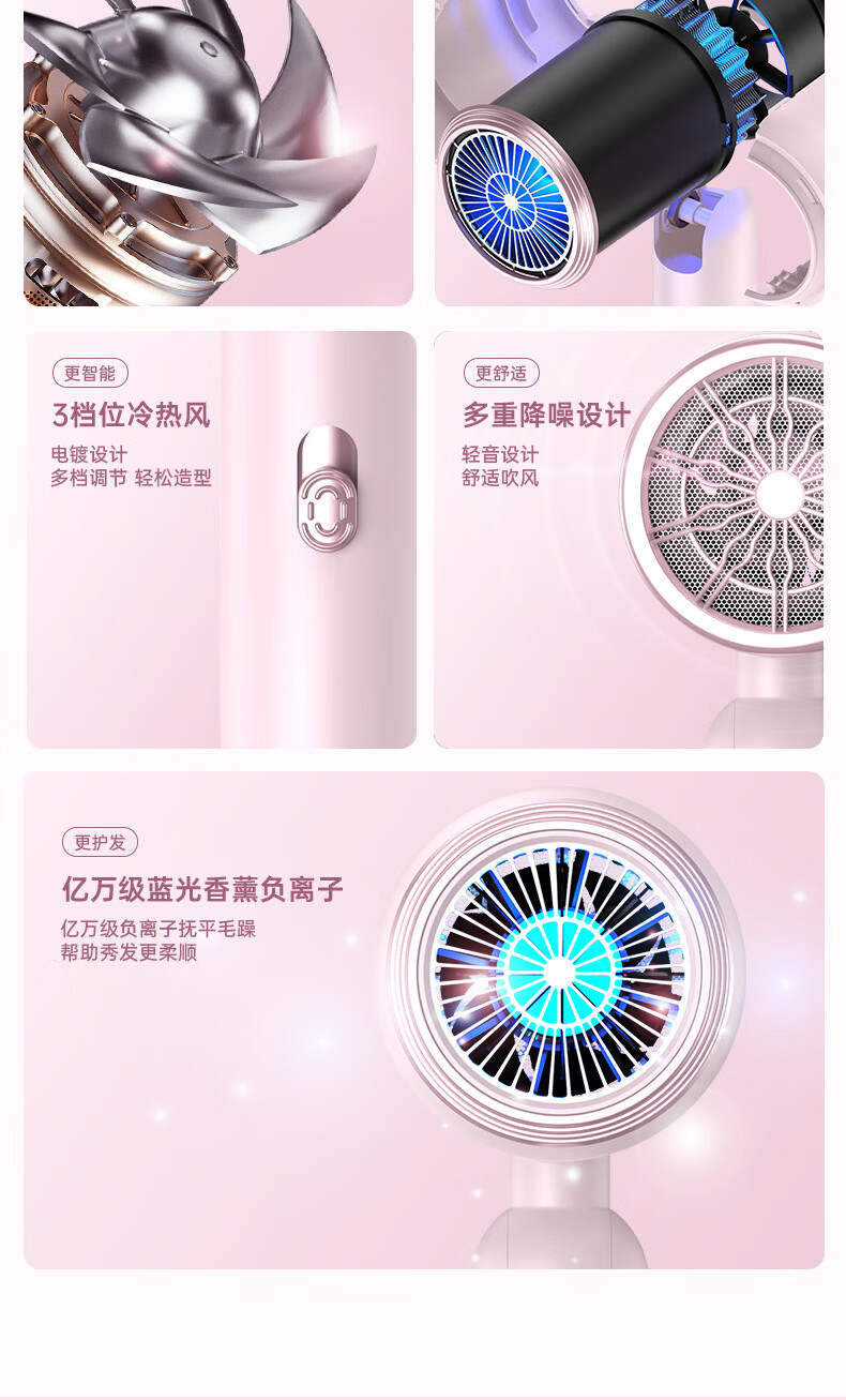 Foldable high-speed and large-power hair dryer for home use with blue light that does not hurt hair. Dormitory use for students with hot and cold air appliances. Light pink 2400W Collection MAX version. Foldable
