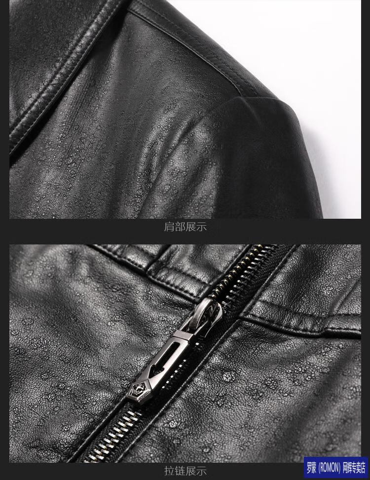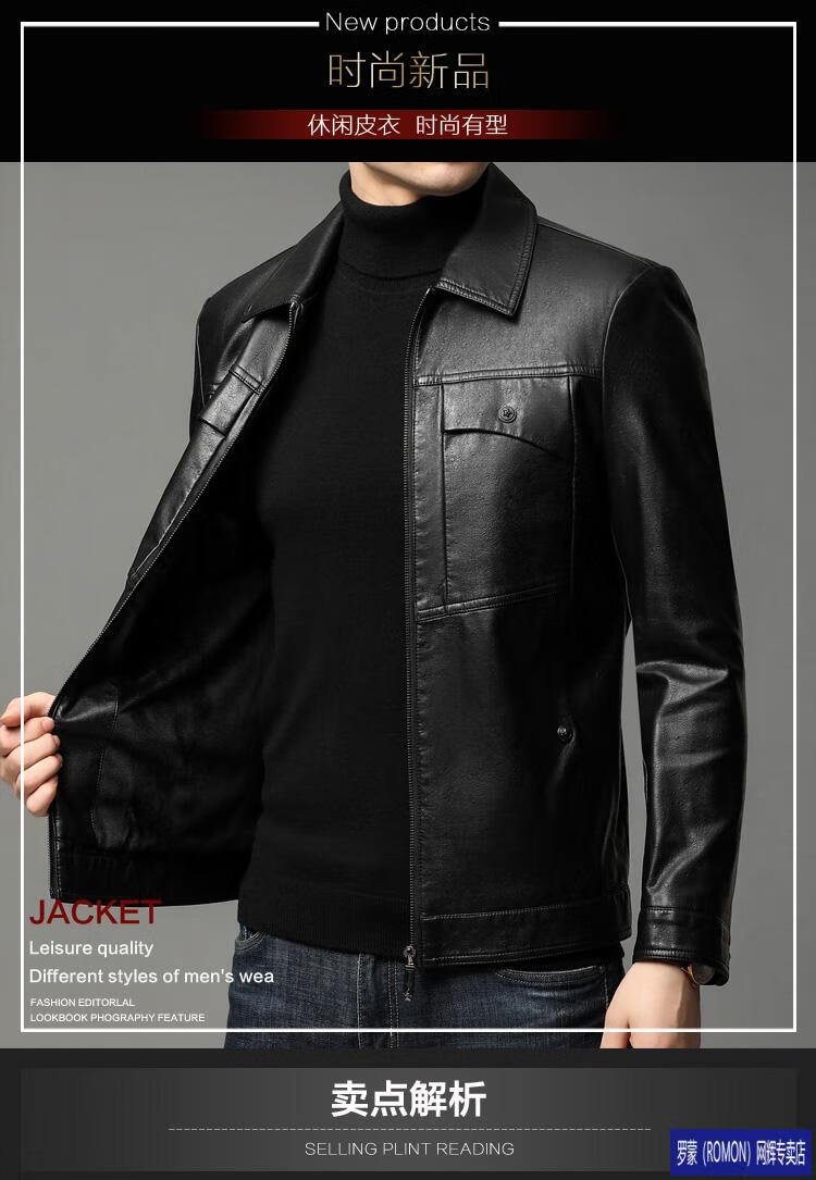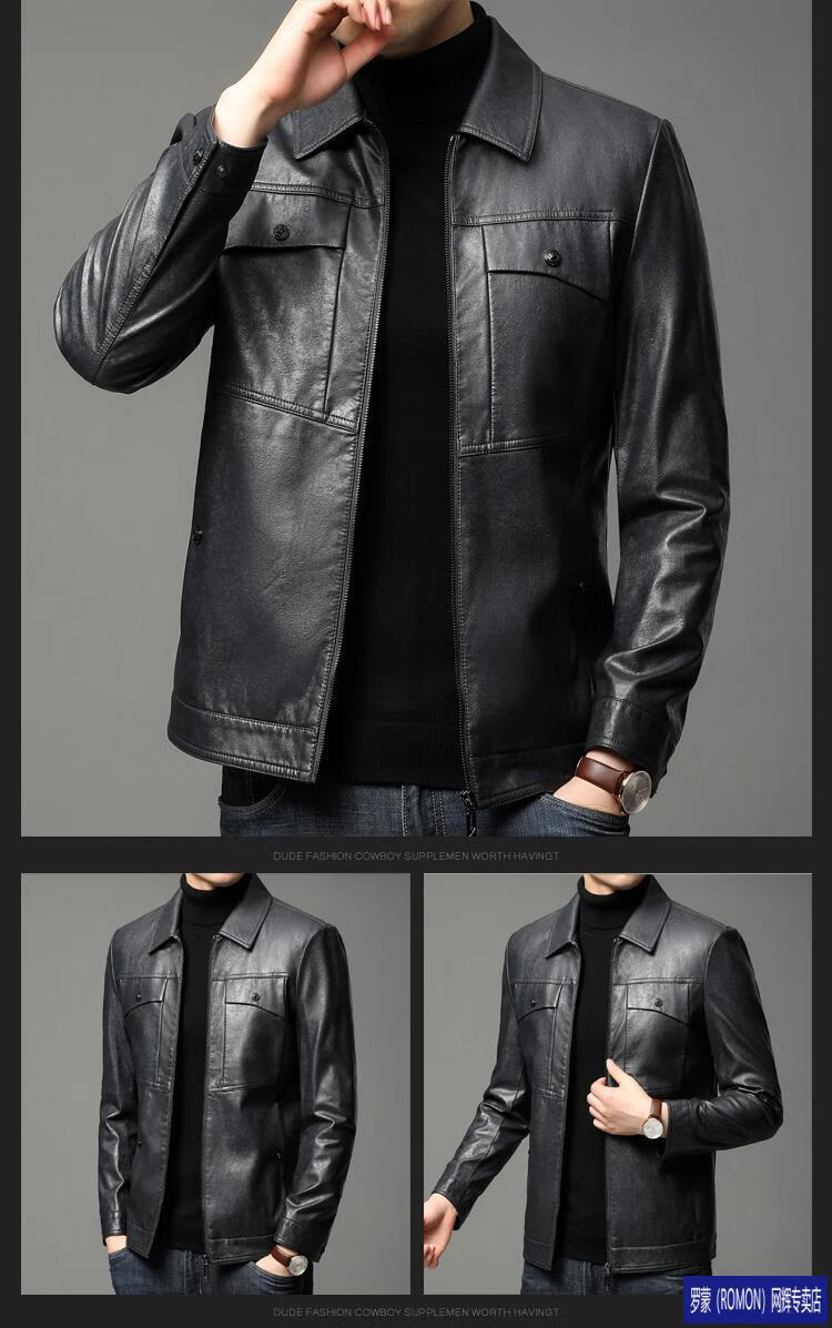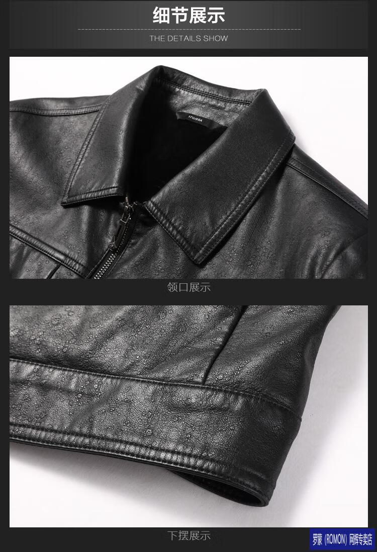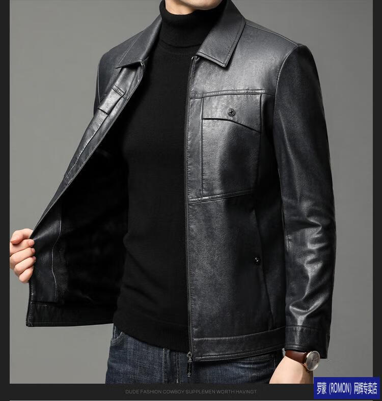 ROMON leather jacket men's spring new leather jacket men's single leather casual lapel father's imitation sheepskin jacket black L 175