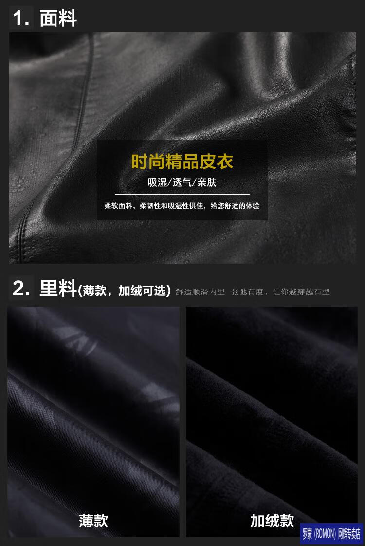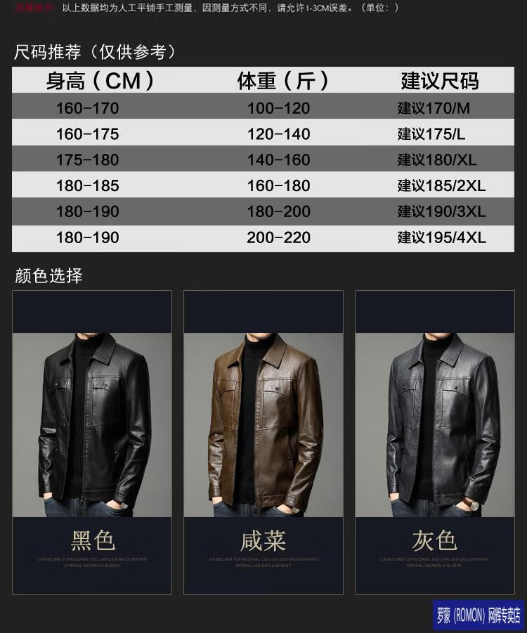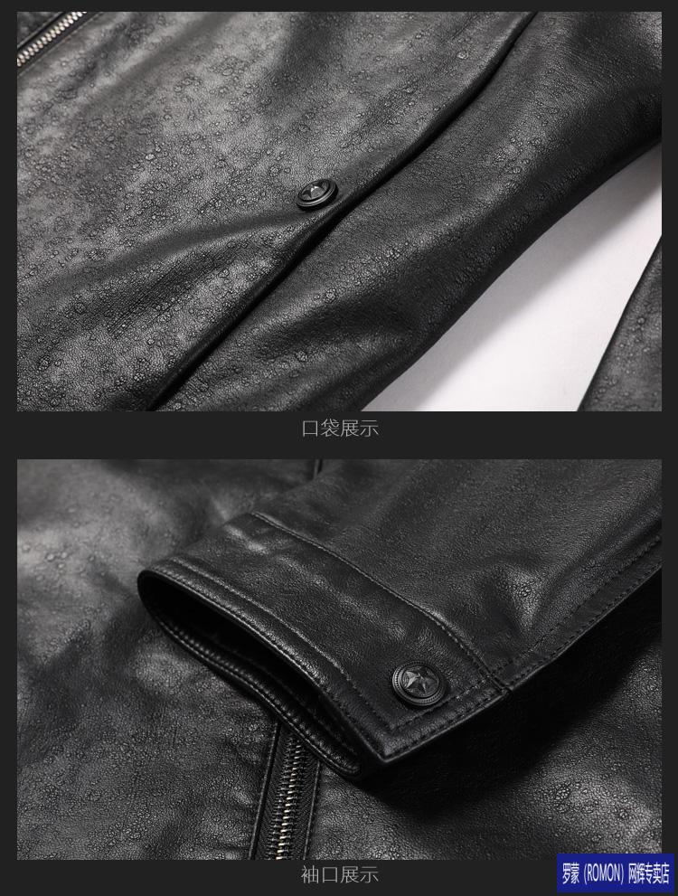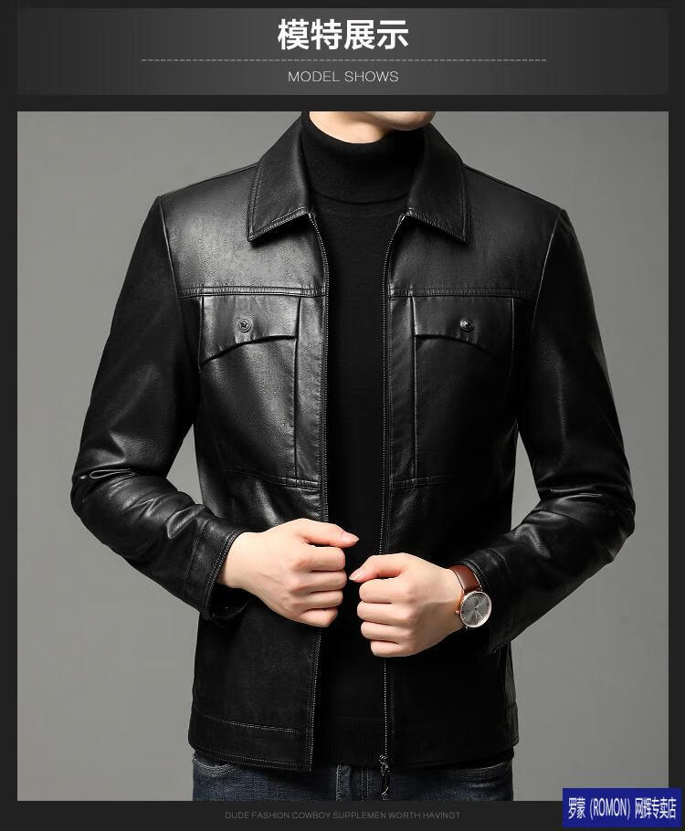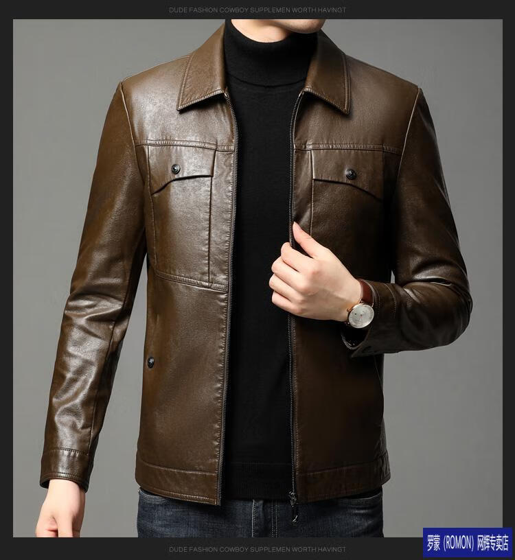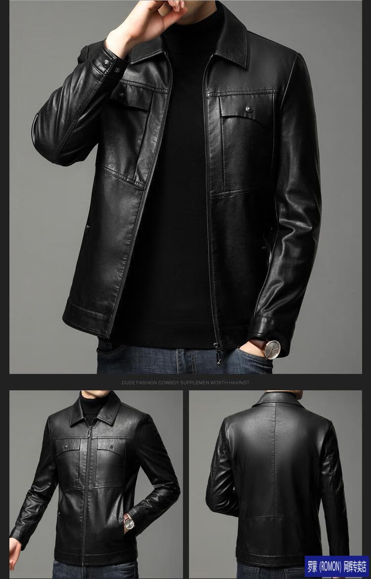 ROMON leather jacket men's spring new leather jacket men's single leather casual lapel father's imitation sheepskin jacket black L 175