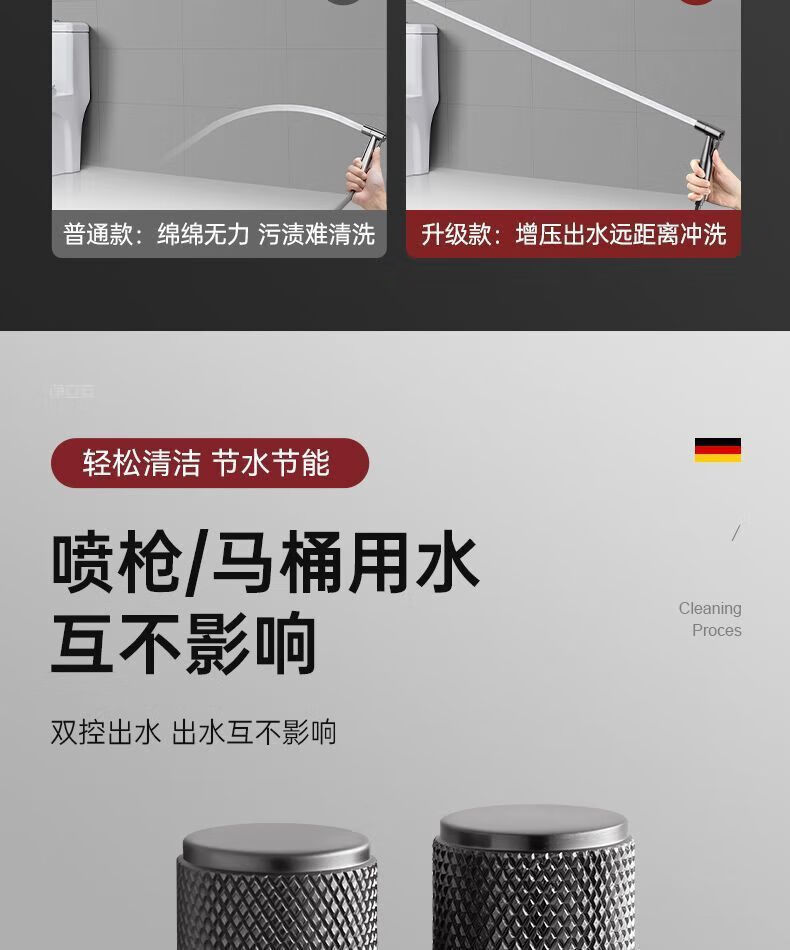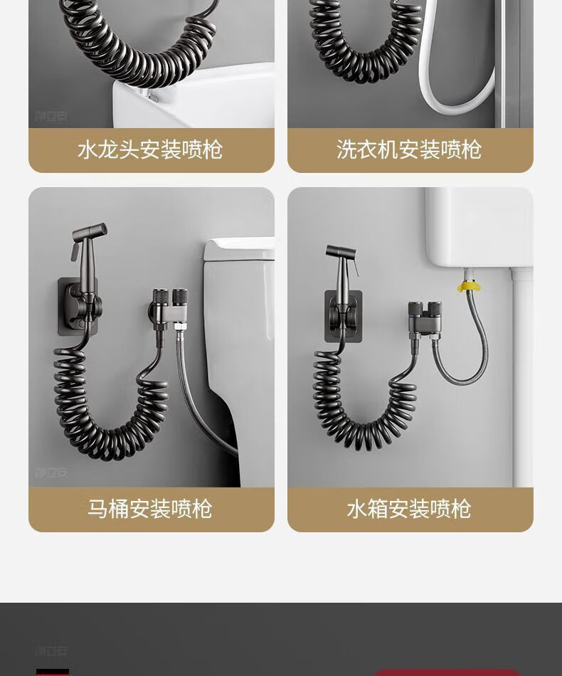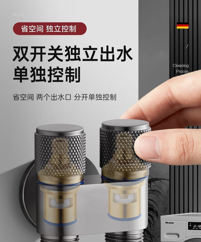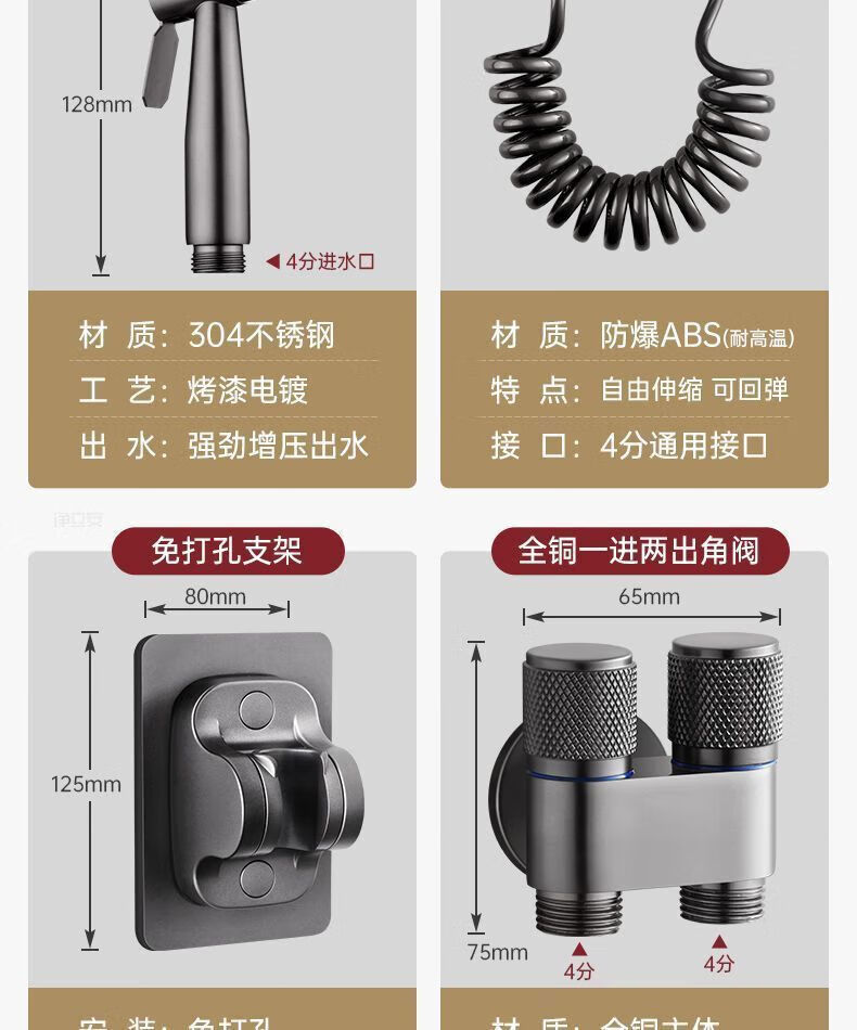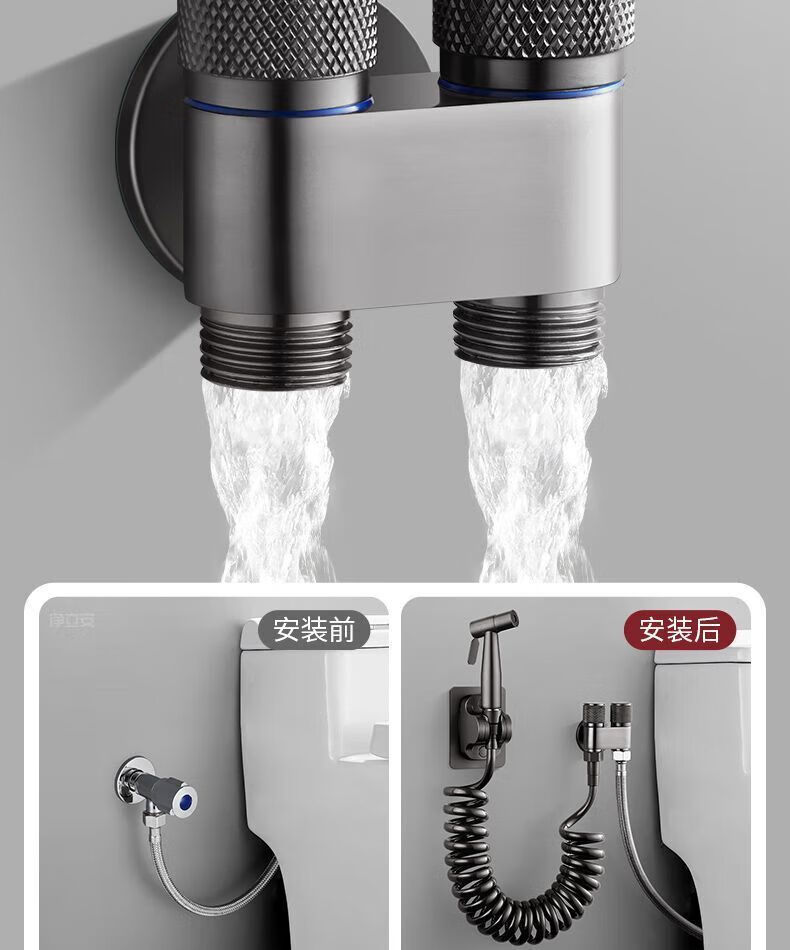 JOMOO new all-copper toilet companion one in and two out with spray gun angle valve bathroom double water outlet triangle valve three-way double control water valve gun ash double control angle valve 304 spray gun set