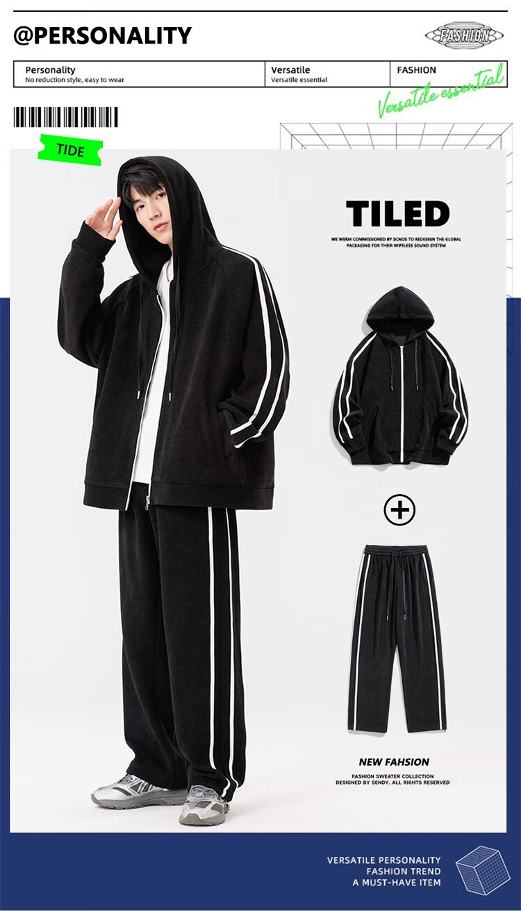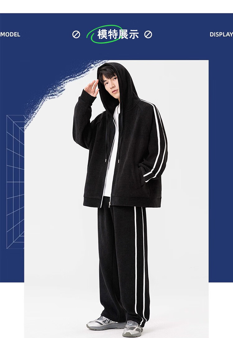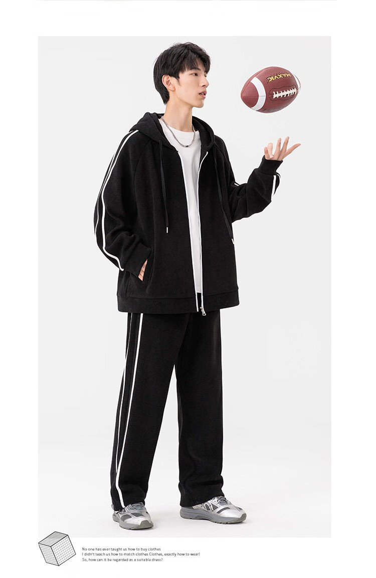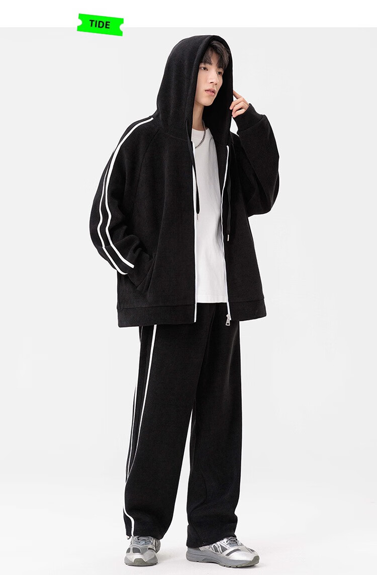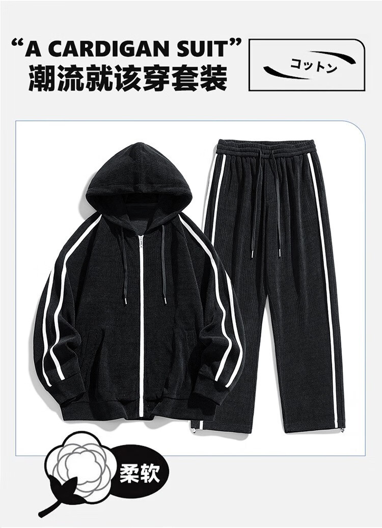 Kaduton Men's Spring and Autumn Large Size Hooded Cardigan Casual Sports Suit Plus Fat Oversized Long Sleeve Jacket and Pants Two-piece Set Men Black XL
