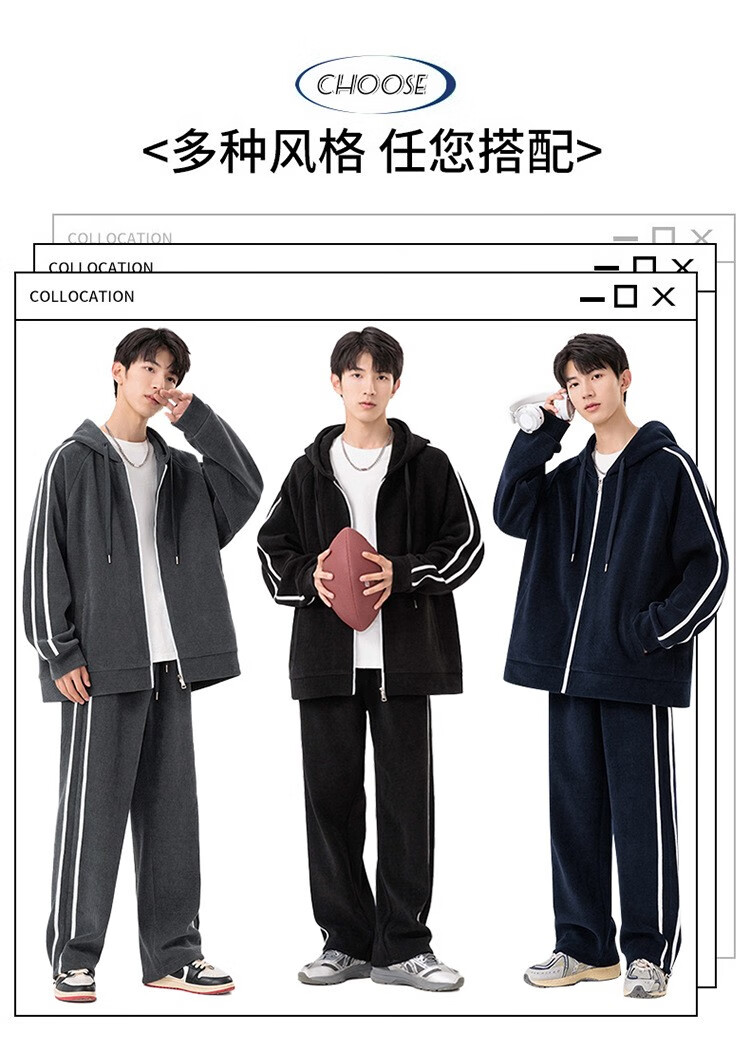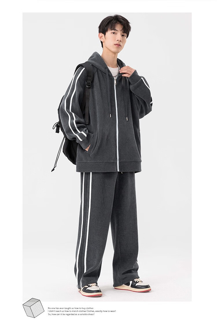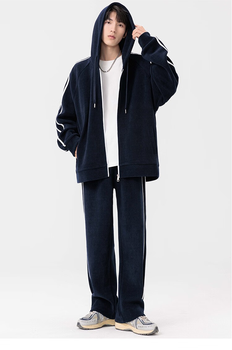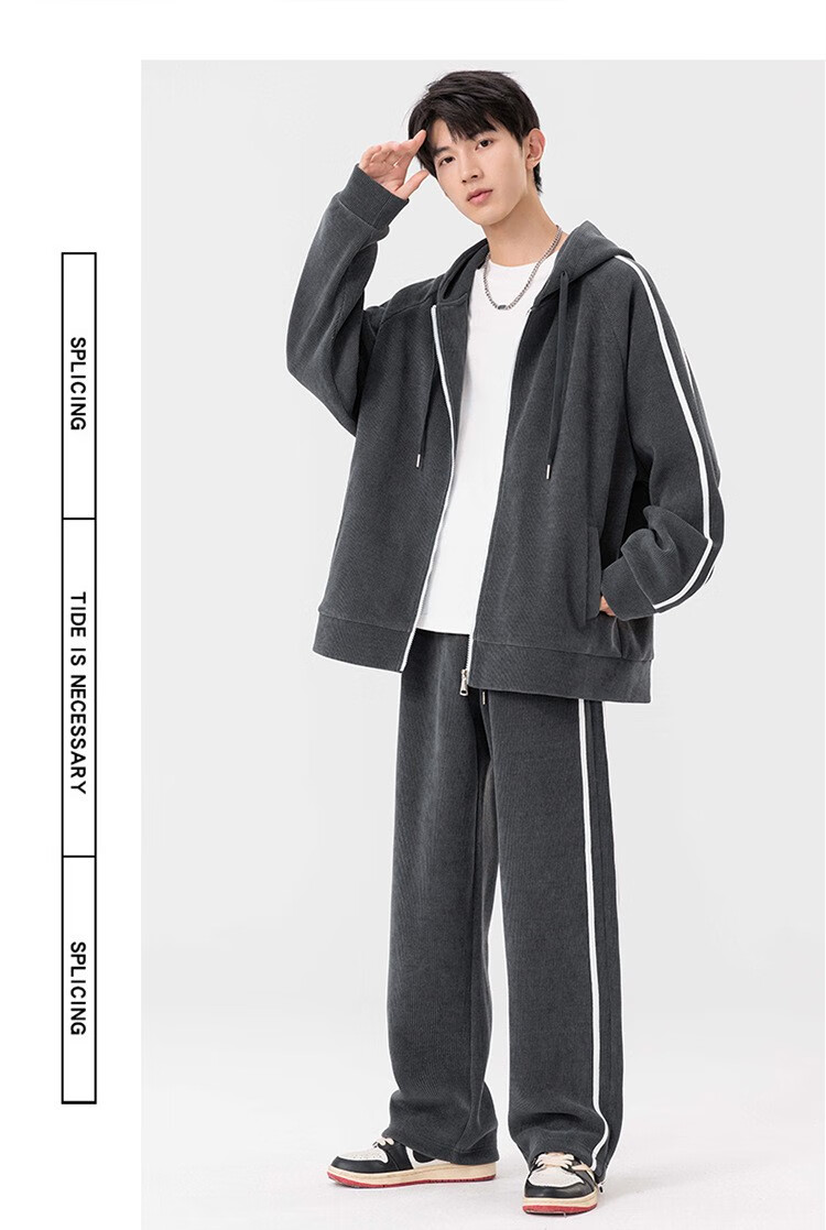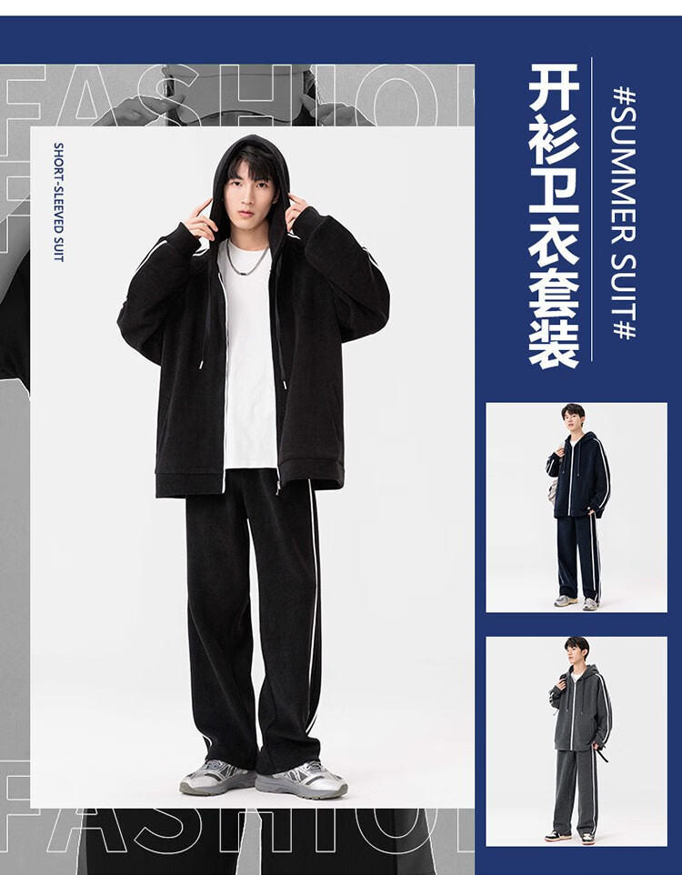 Kaduton Men's Spring and Autumn Large Size Hooded Cardigan Casual Sports Suit Plus Fat Oversized Long Sleeve Jacket and Pants Two-piece Set Men Black XL