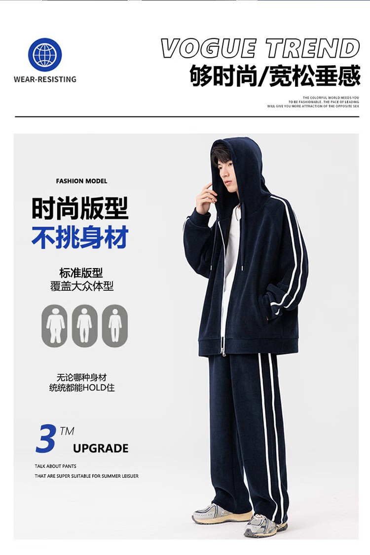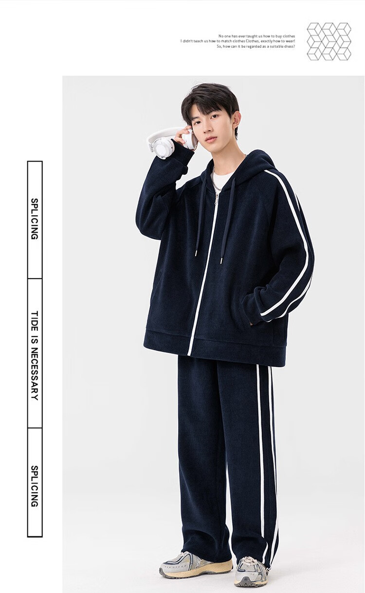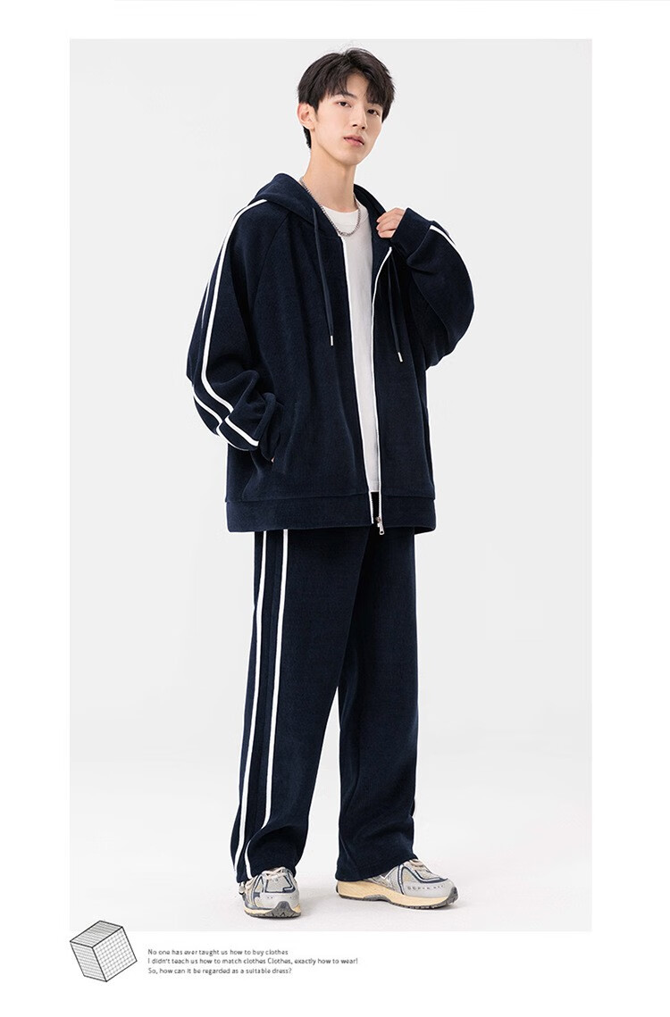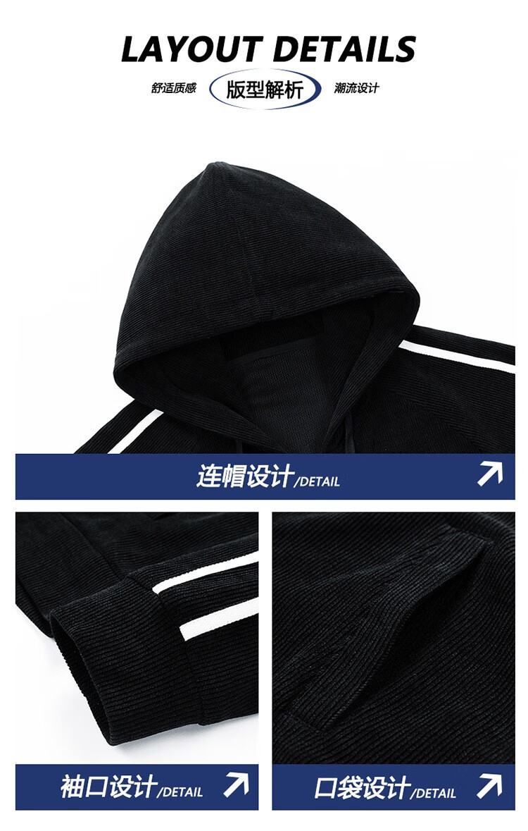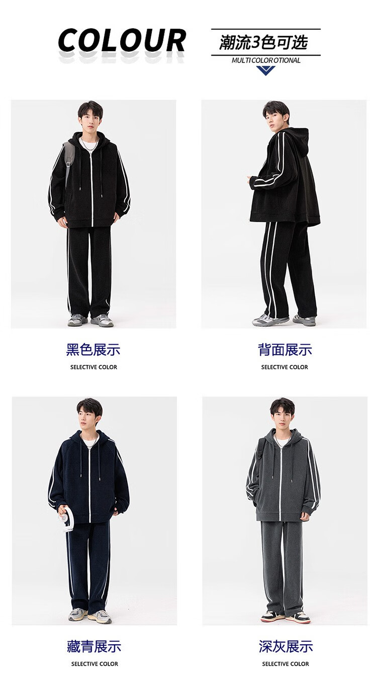 Kaduton Men's Spring and Autumn Large Size Hooded Cardigan Casual Sports Suit Plus Fat Oversized Long Sleeve Jacket and Pants Two-piece Set Men Black XL