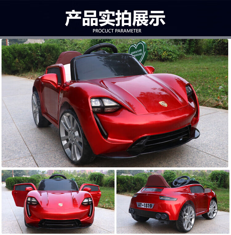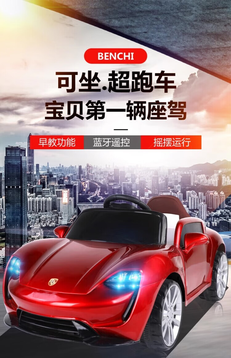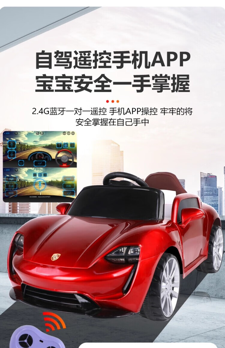 Woluqi's new children's electric car, four-wheel car, children's toy remote control car that can seat men and women, rechargeable stroller, 12V pink four-wheel drive + leather seat + remote control, electric drive
