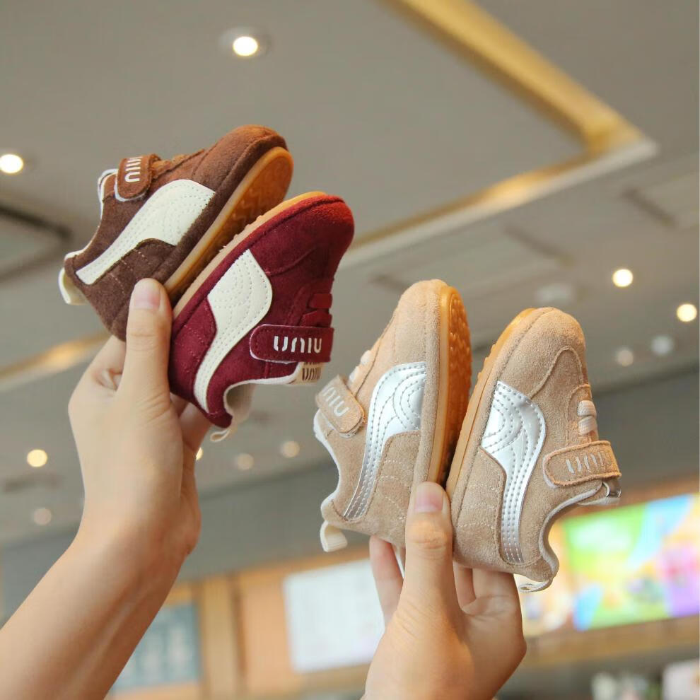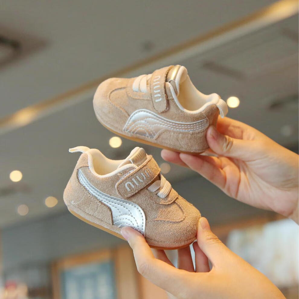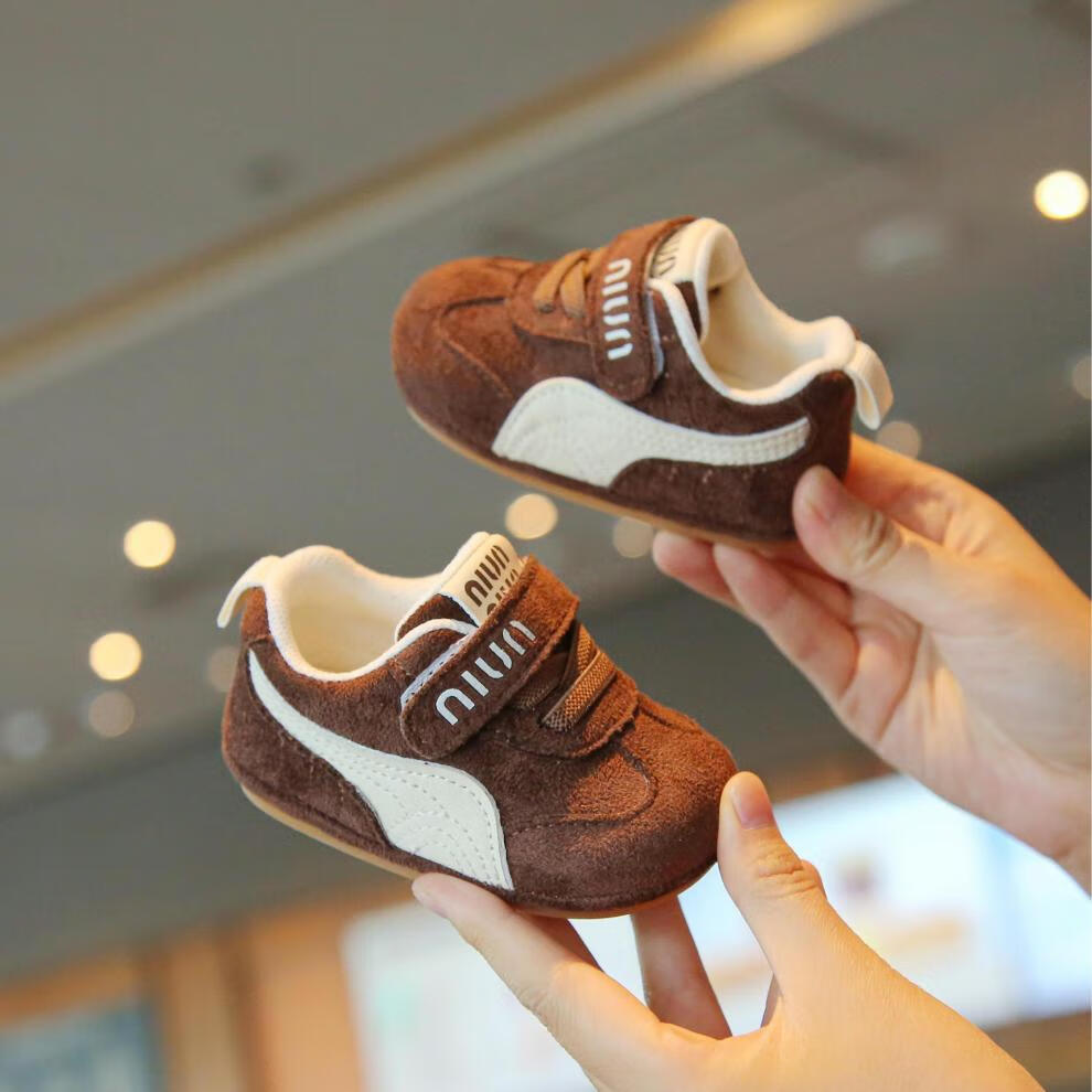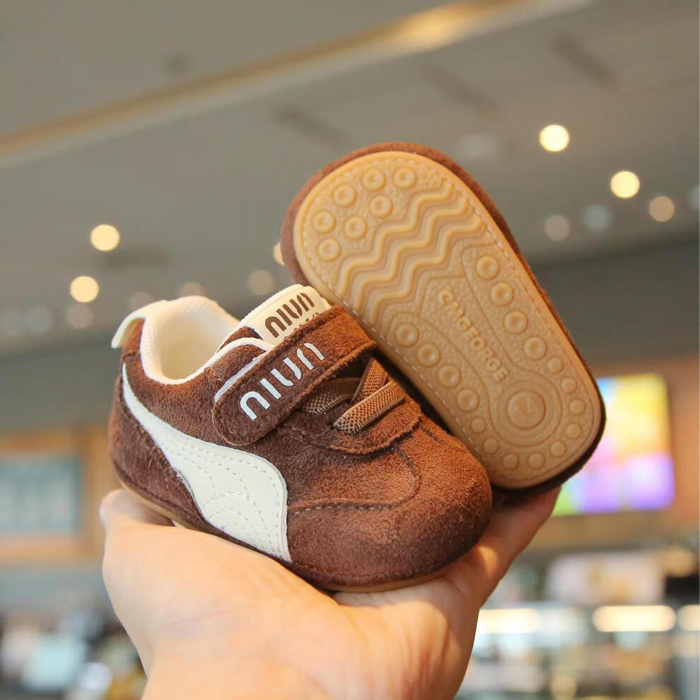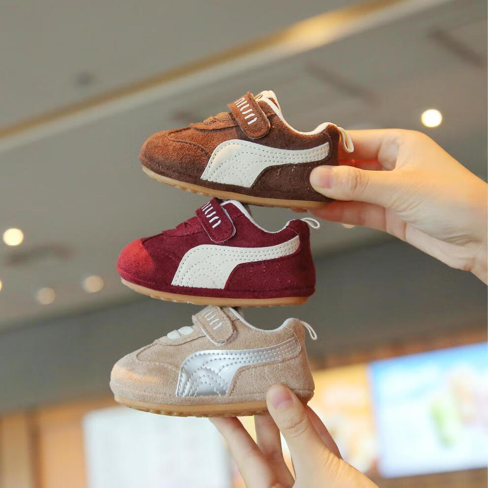 Ginoble autumn toddler shoes for boys and girls 0-2 years old Korean Boken shoes soft sole non-slip casual anti-fall shoes 12 FX8938 dark red 14 110mm inner length 11cm in size 14