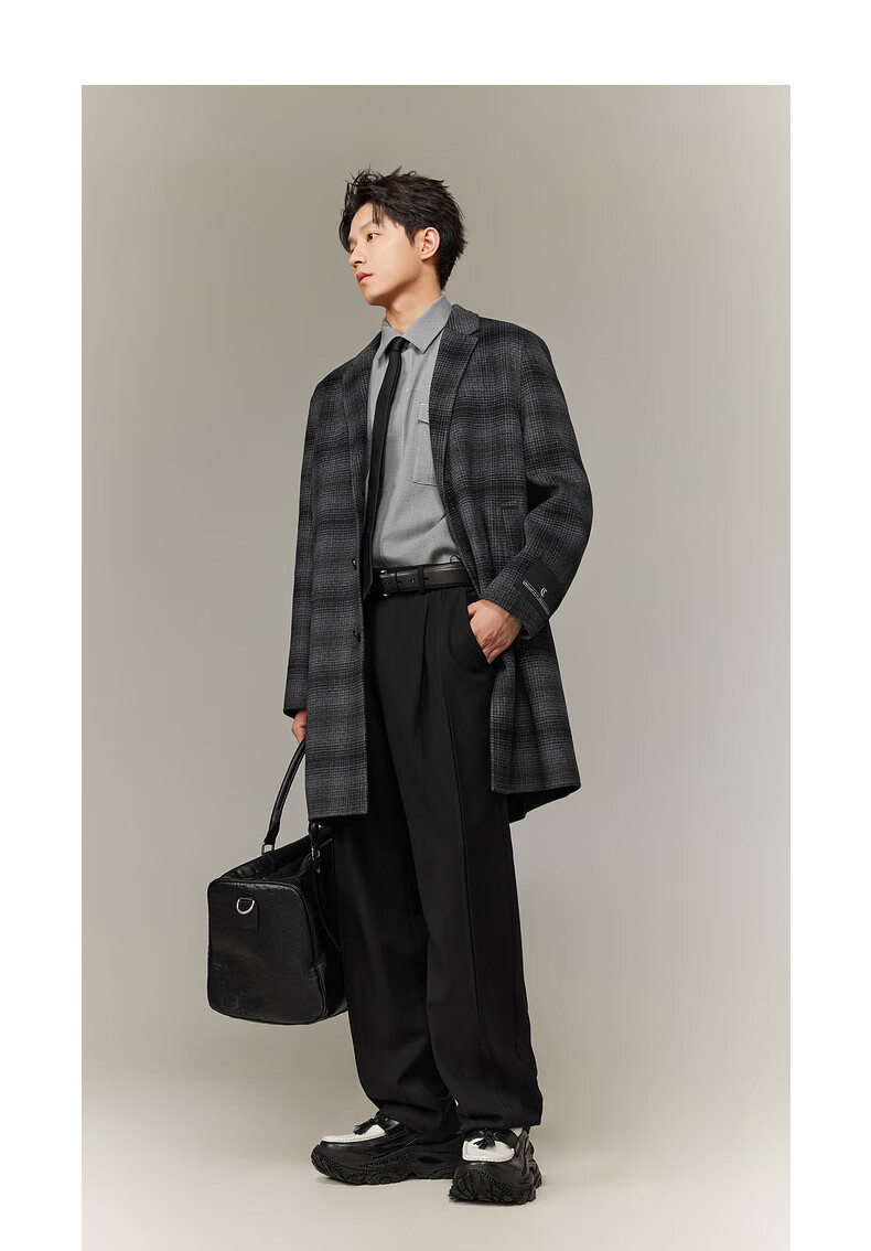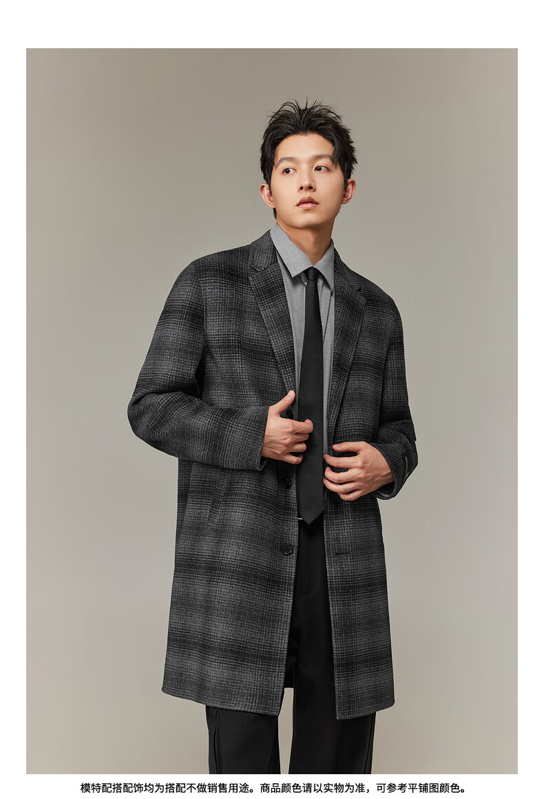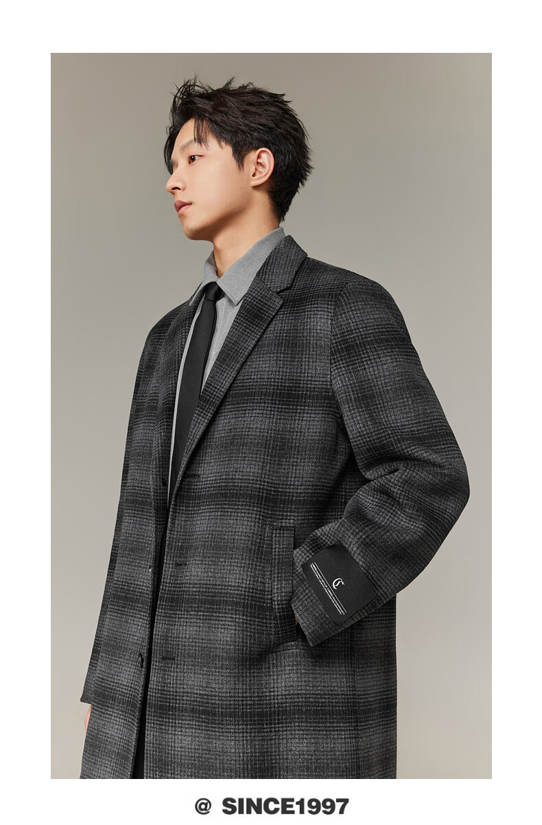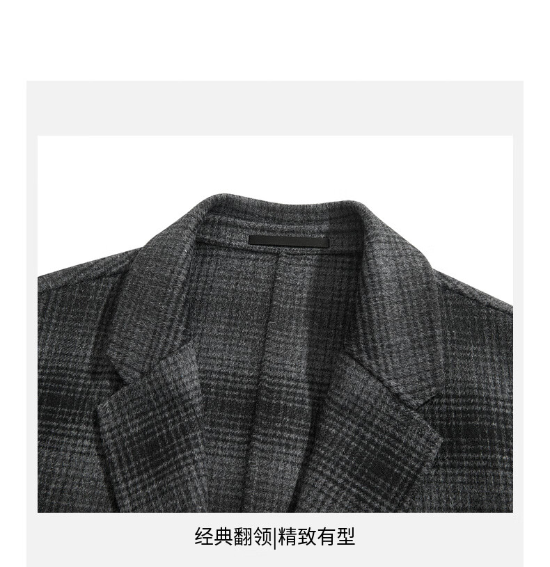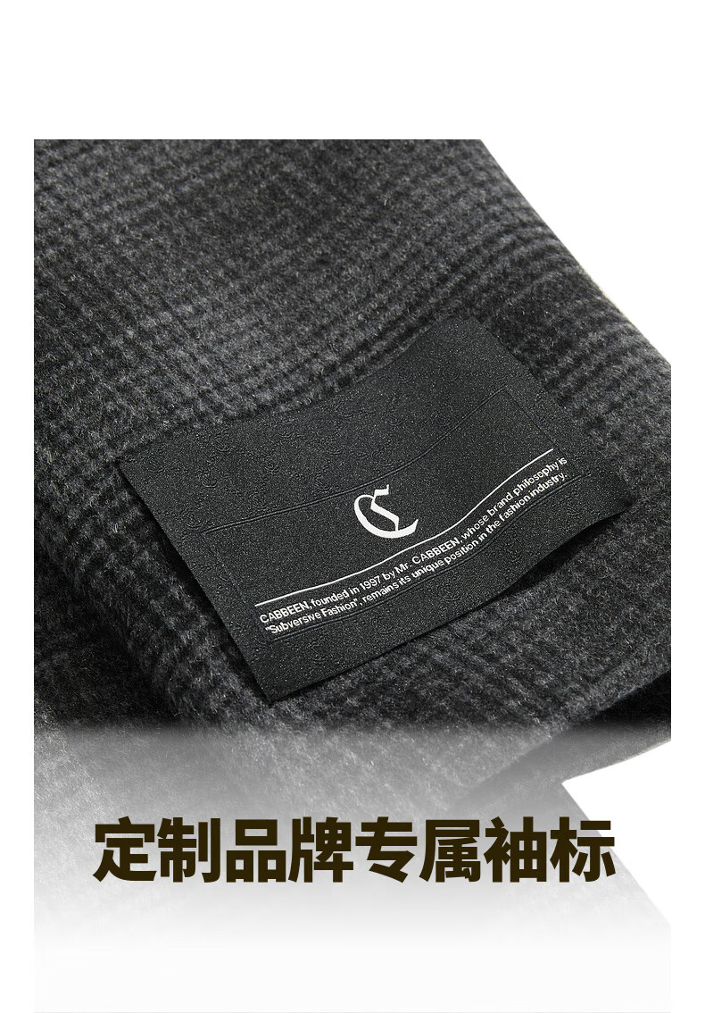 CABBEEN black and gray plaid double-sided woolen coat customized CABBEEN single C exclusive armband winter woolen plaid coat dark gray 56 L /175/50