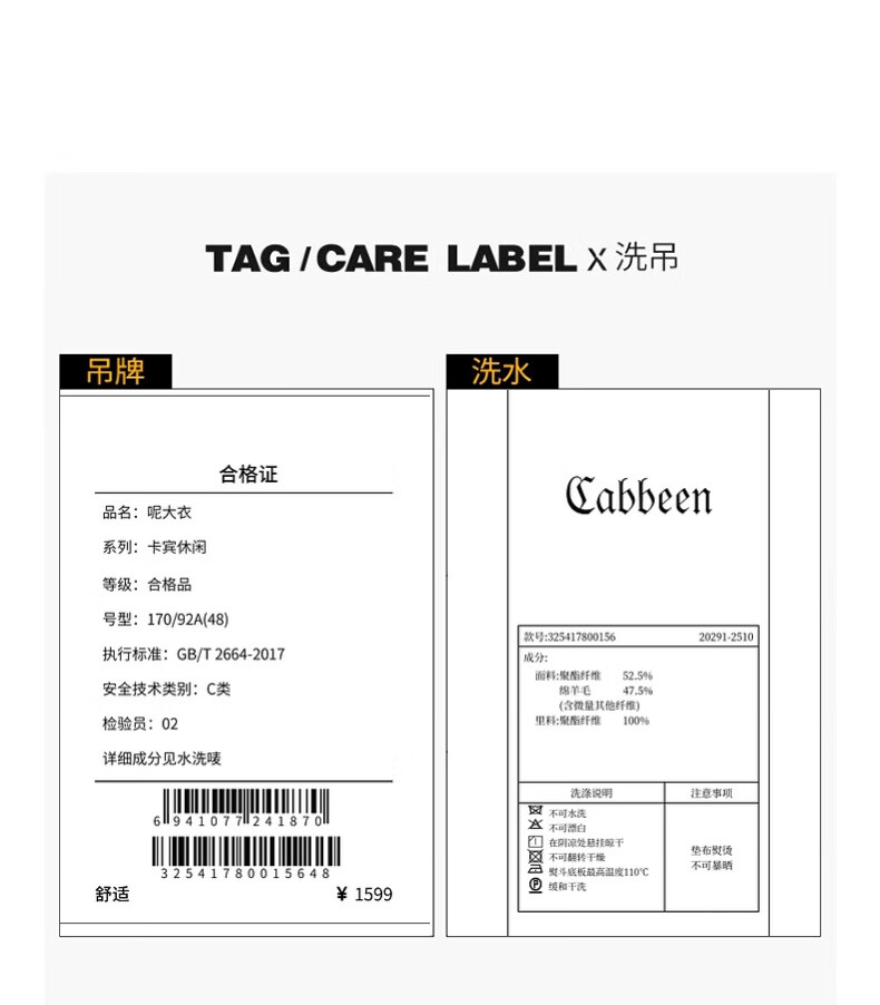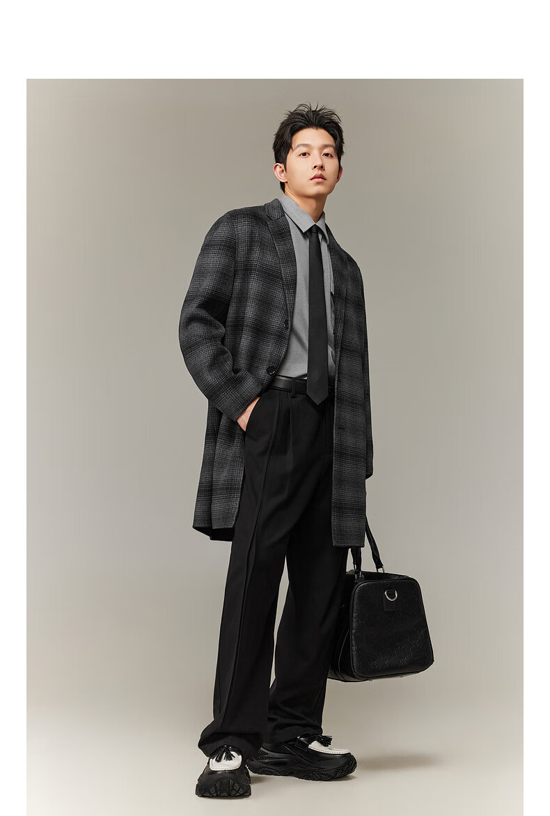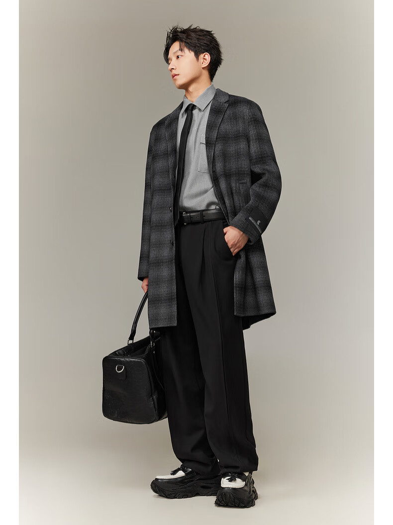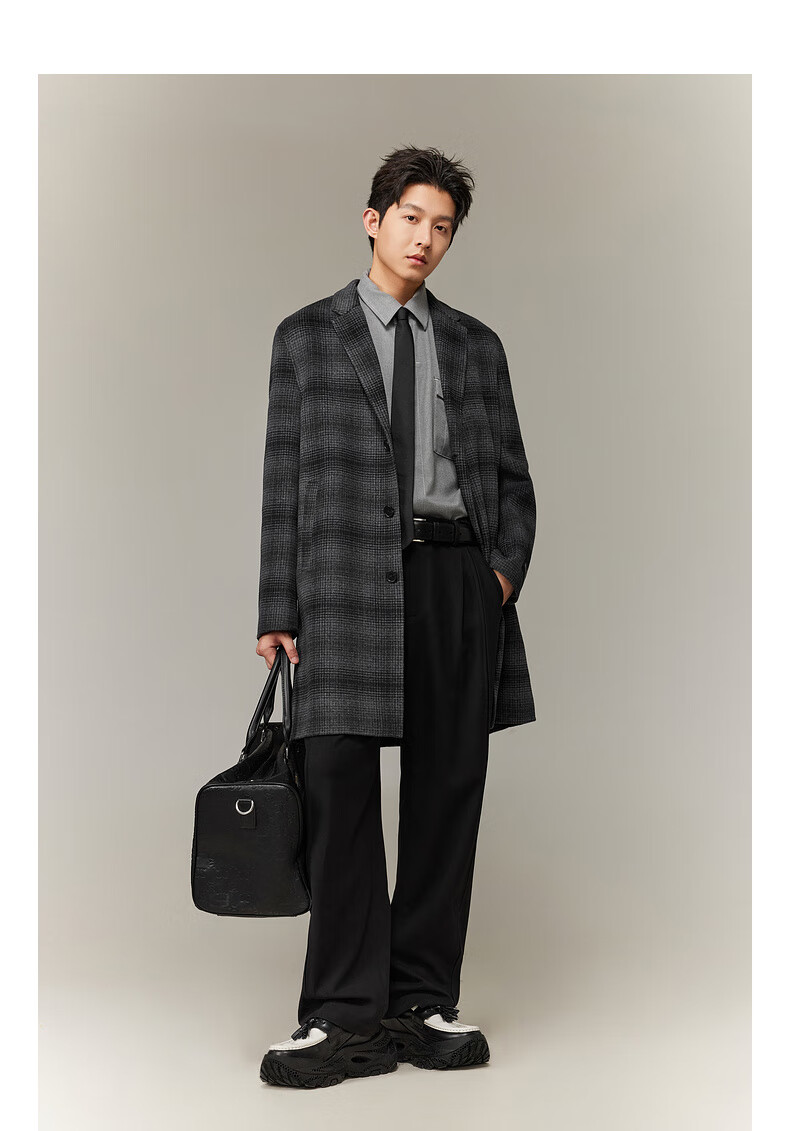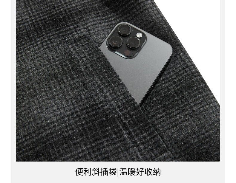 CABBEEN black and gray plaid double-sided woolen coat customized CABBEEN single C exclusive armband winter woolen plaid coat dark gray 56 L /175/50