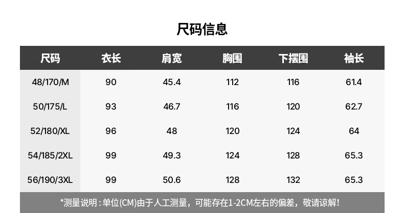 China (cm) 165 / 88-90 170 / 96-98 175 / 108-110 180 / 118-122 185 / 126-130