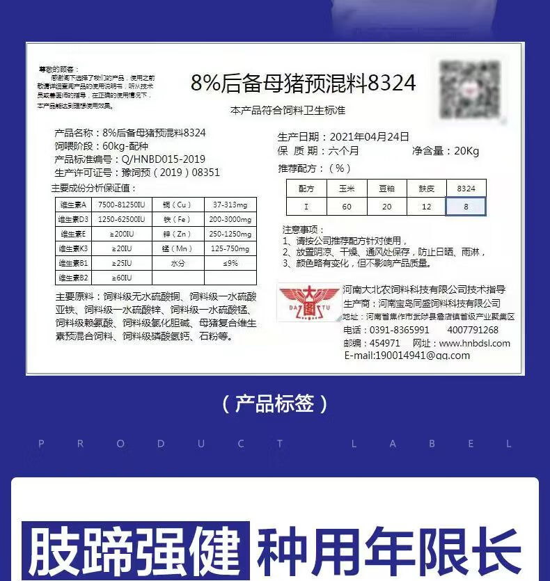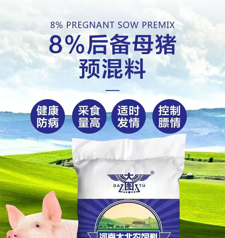 Henan Baodao series of 8% gilt premixed feed to control ovulation and promote estrus for pigs, specially for gilts. Buy 10 and get 1 free (11 bags sent). The whole ton is delivered to your home.