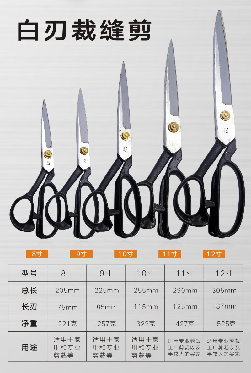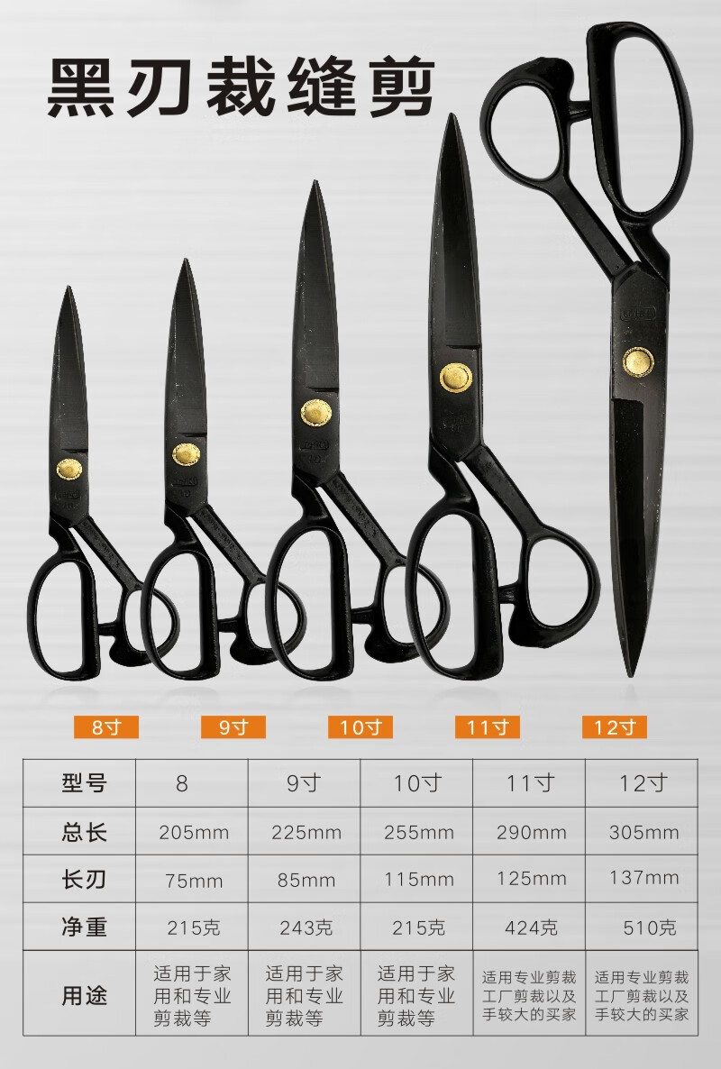 Timvada Garment Scissors Tailoring Scissors Sewing Scissors 12-inch Black Blade Garment Scissors 305mm