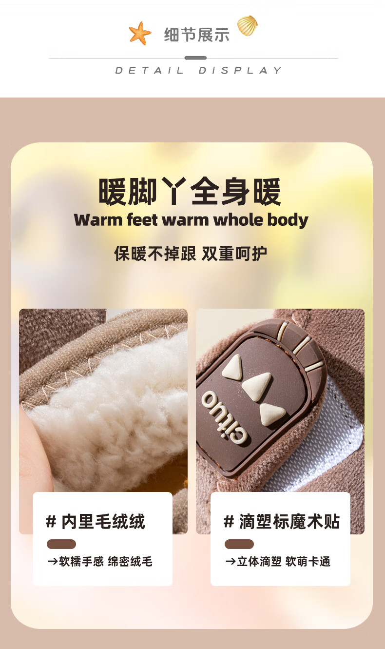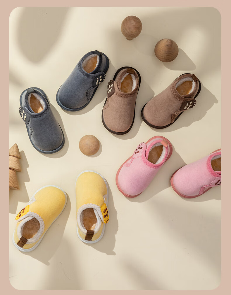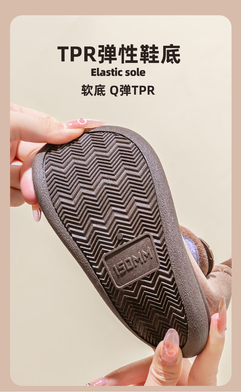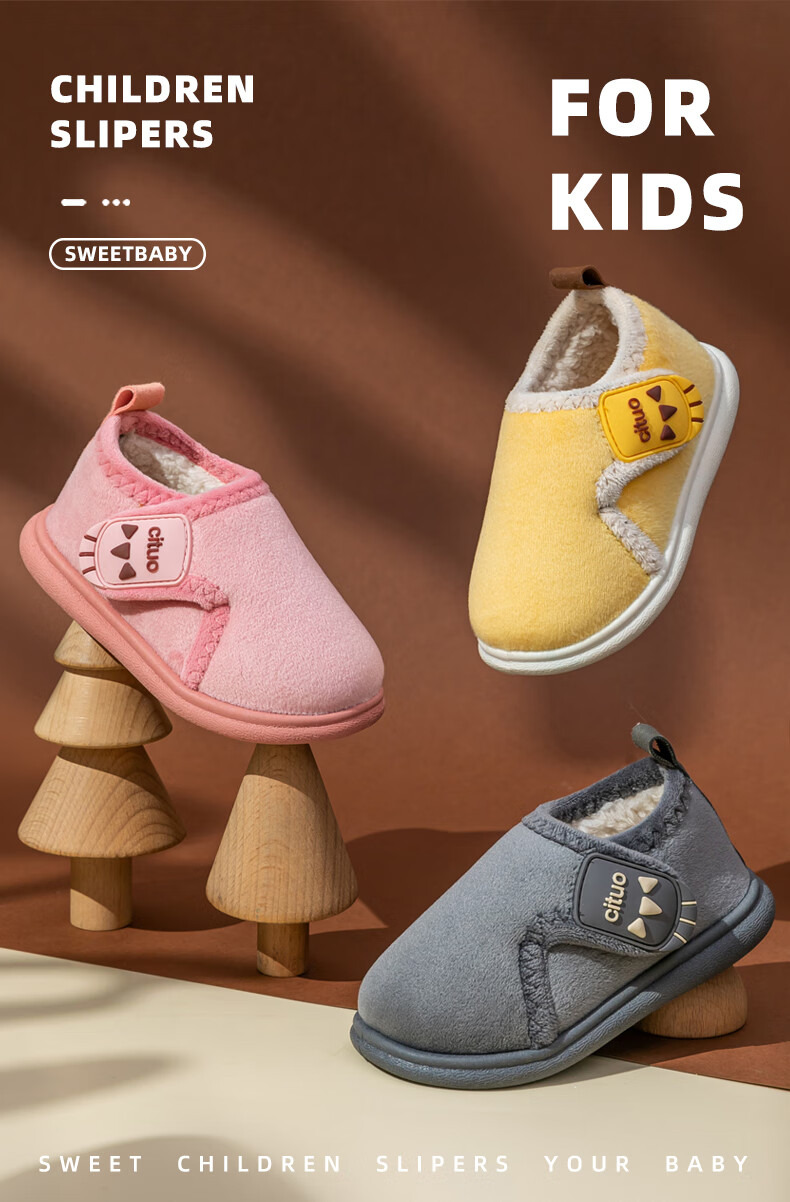 Children's cotton shoes, cute women's winter indoor and outdoor boys' bag-heeled home shoes with Velcro and velvet soft soles, non-slip cotton slippers, brown 18 180, suitable for feet length 16.9-17.8cm