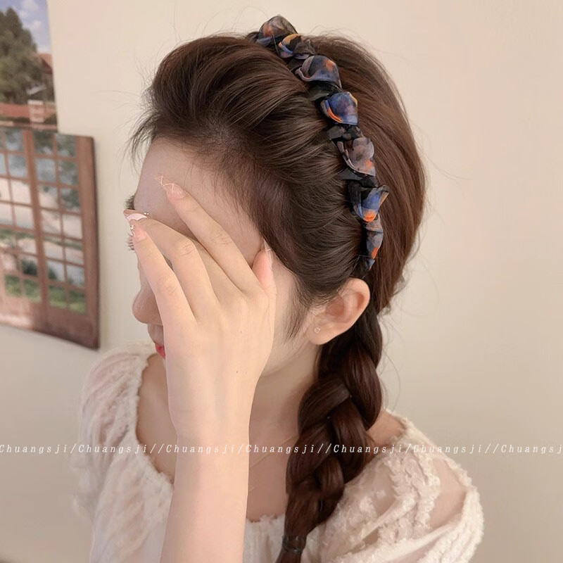 High-end light luxury face wash headband for women 2025 new daily wear high skull headband anti-slip pressure hairpin hair accessory blue mesh headband 1 piece