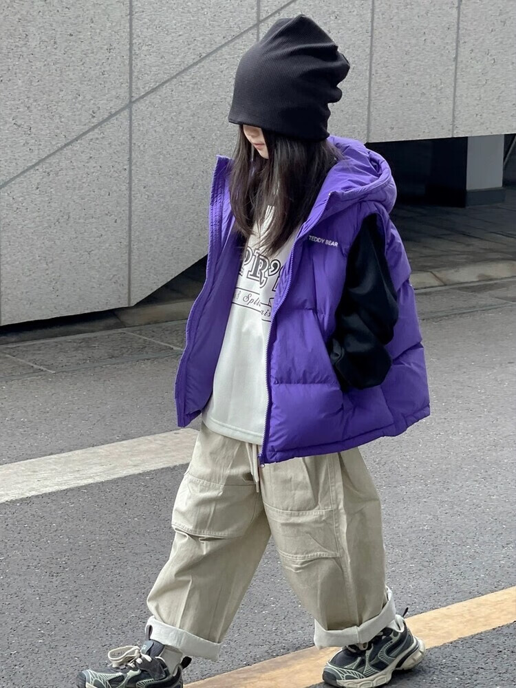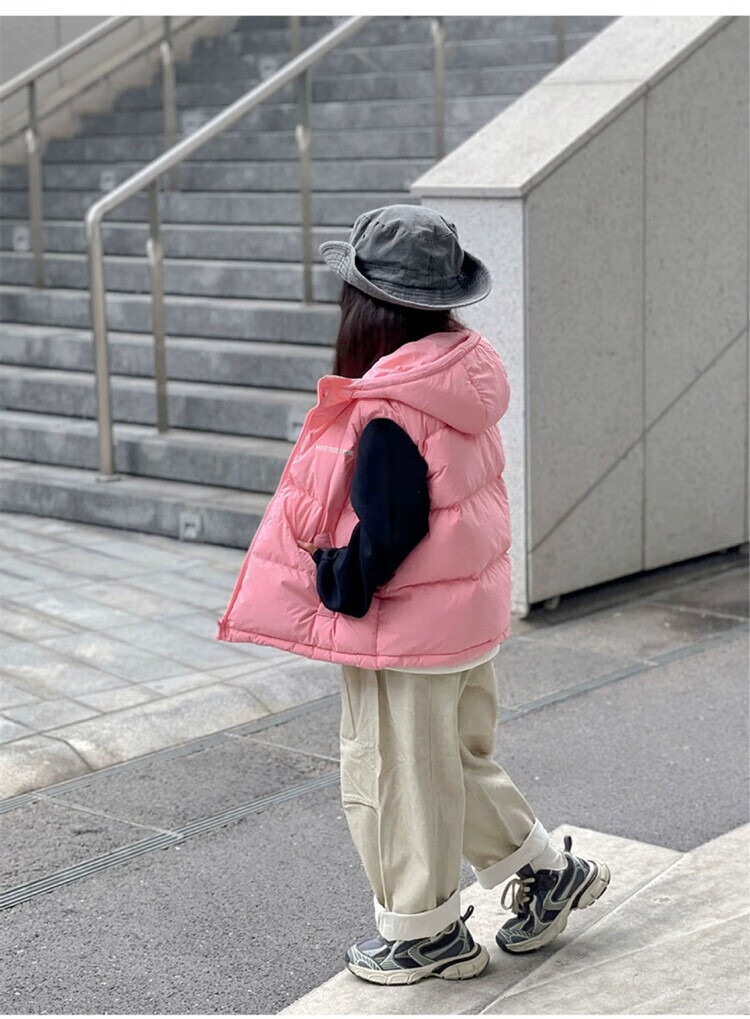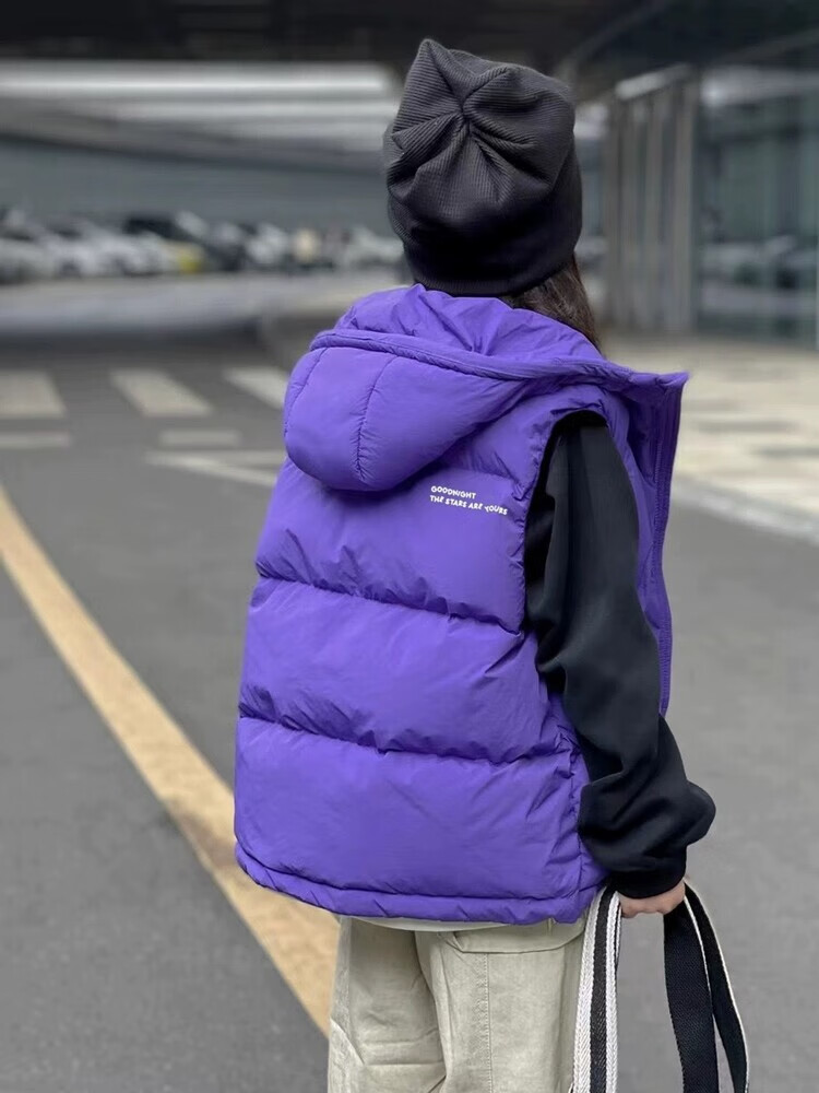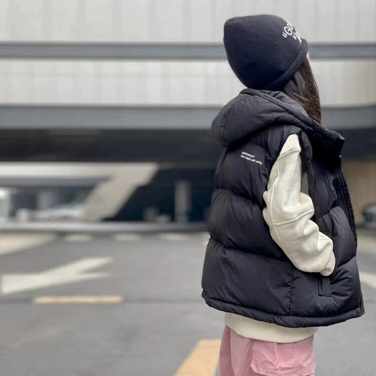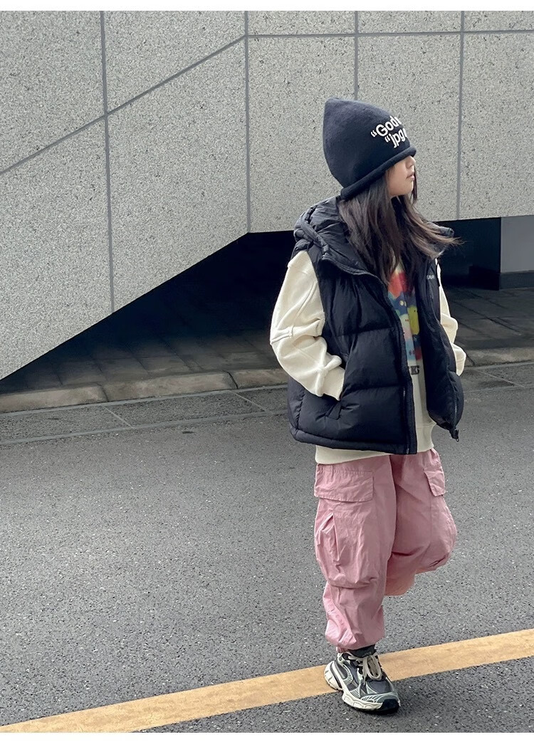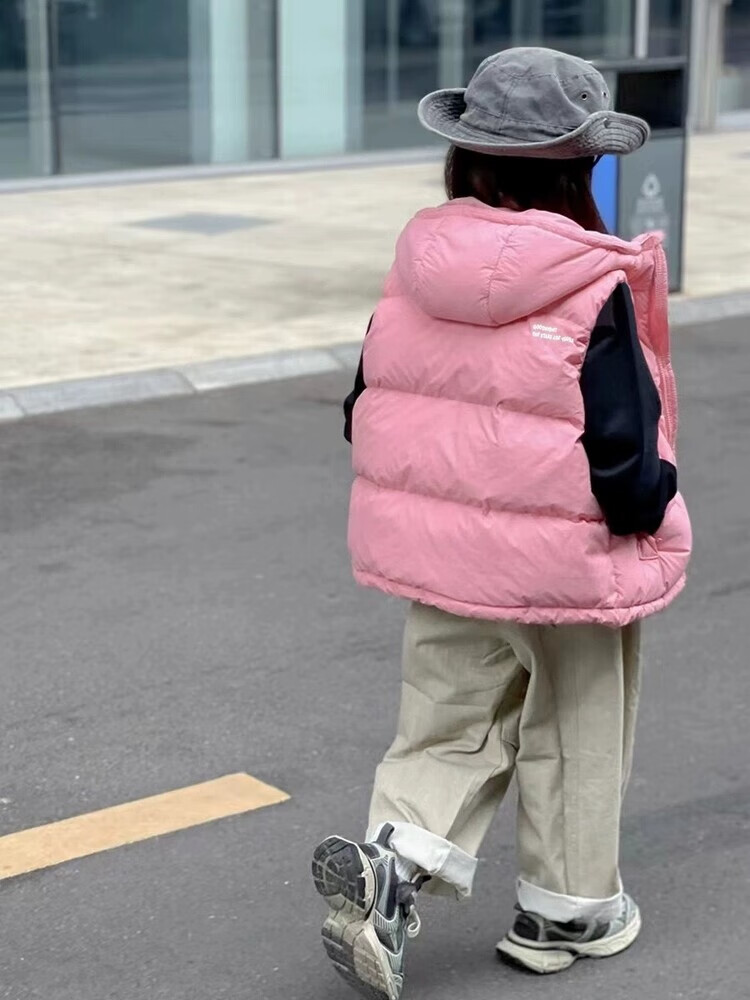 Children's cotton vest for boys and girls, warm hooded vest for middle and large children, baby outer wear set, school uniform vest, versatile black 140