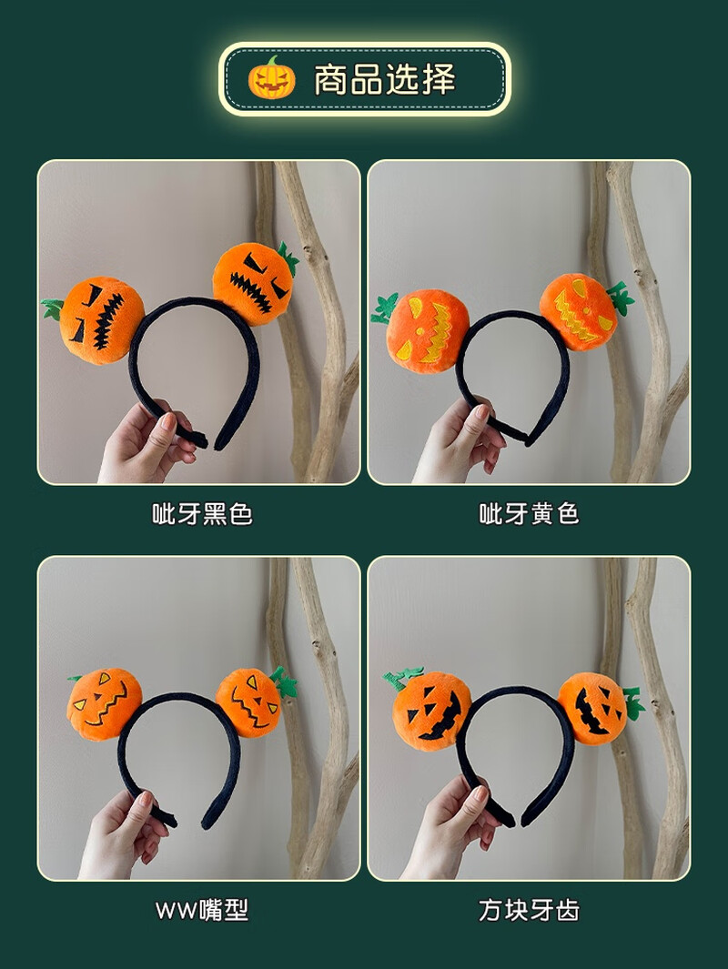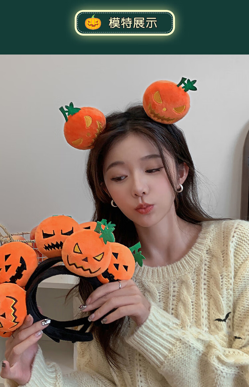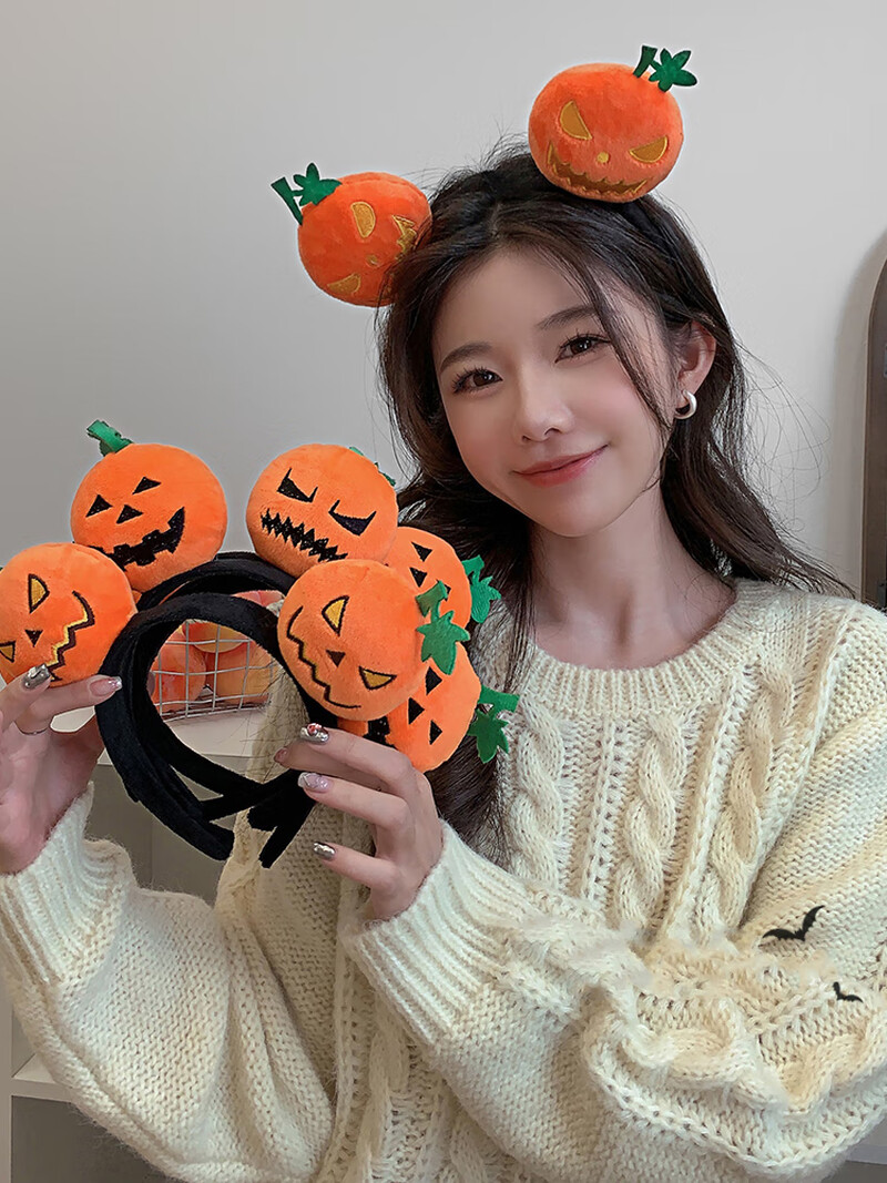 Halloween devil pumpkin hairband for girls, funny square teeth, high skull, face wash headband, hair accessories, hairpin, square expression pumpkin