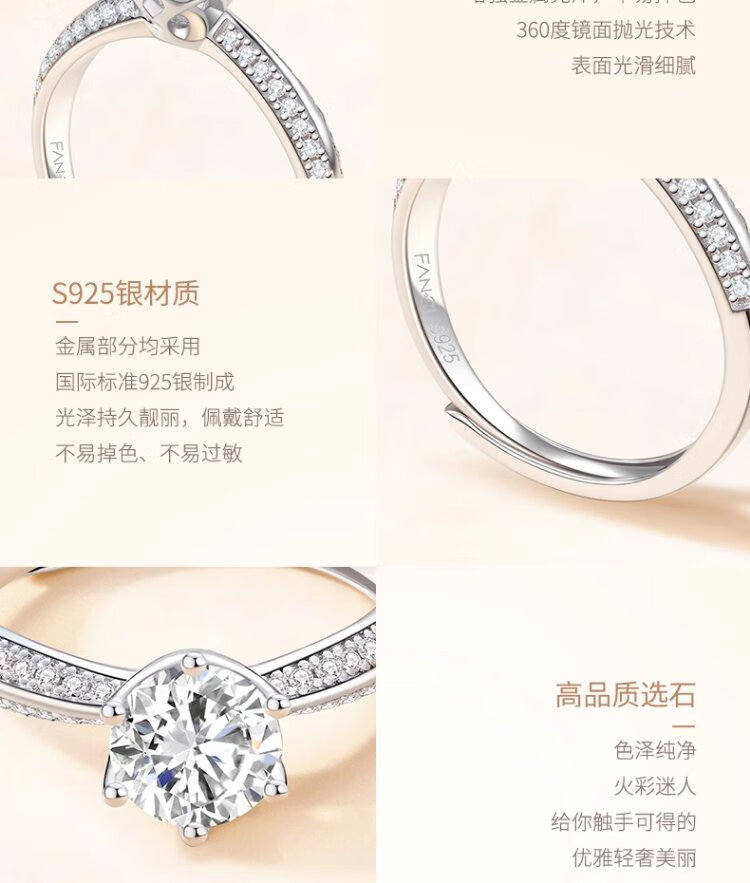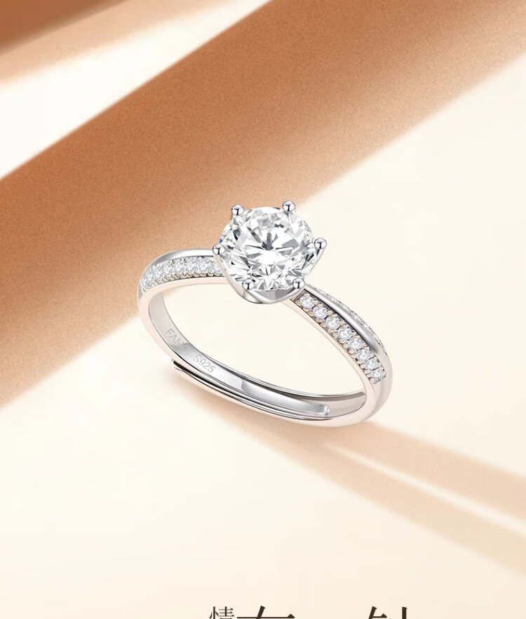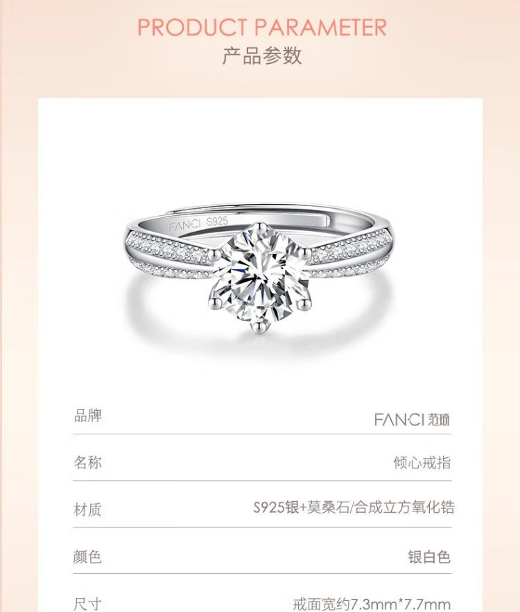 Fanci (Fanci) loves one carat moissanite engagement ring, silver jewelry, birthday engagement, birthday confession gift for girlfriend and wife, 1 carat matching ring