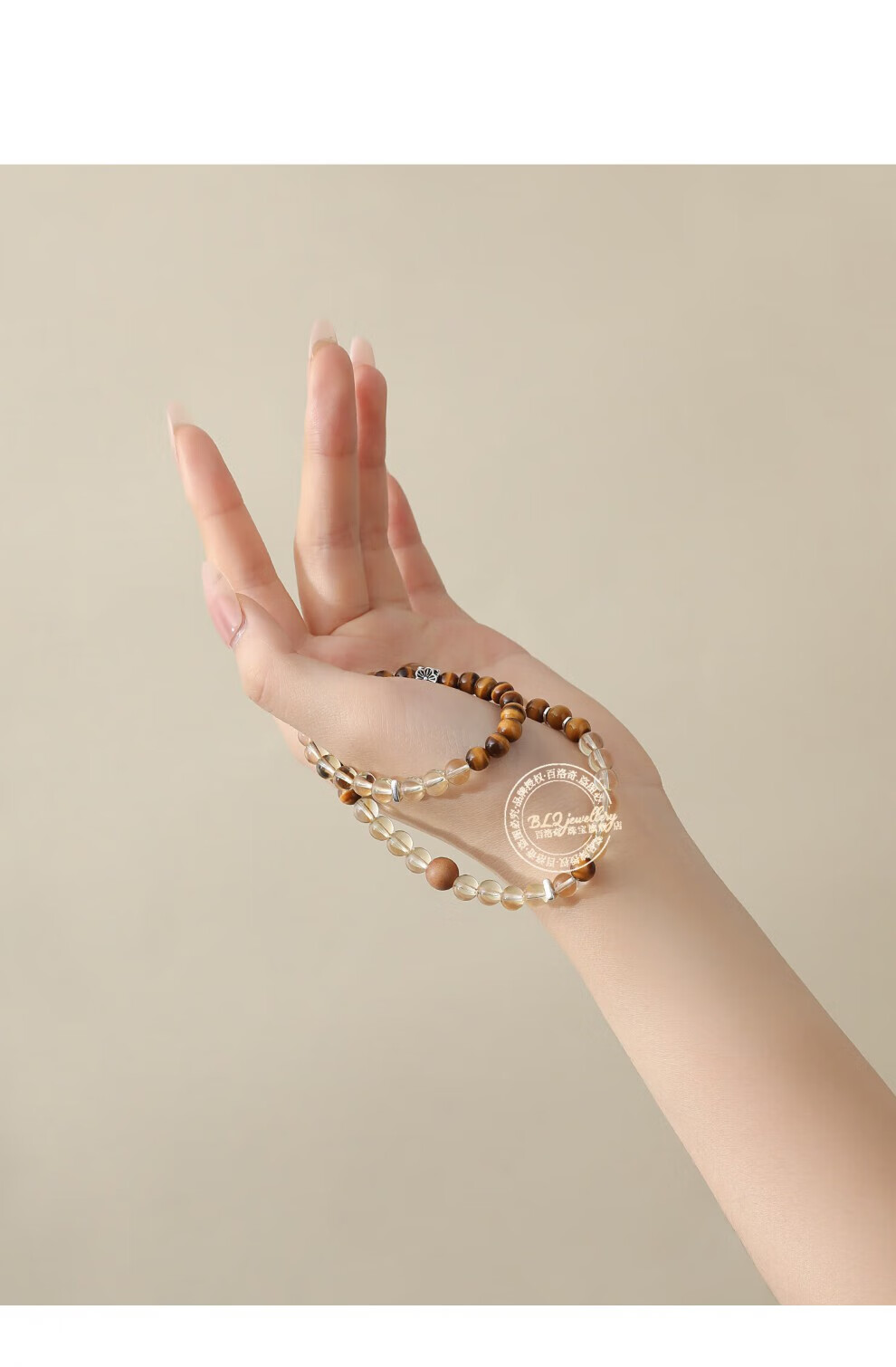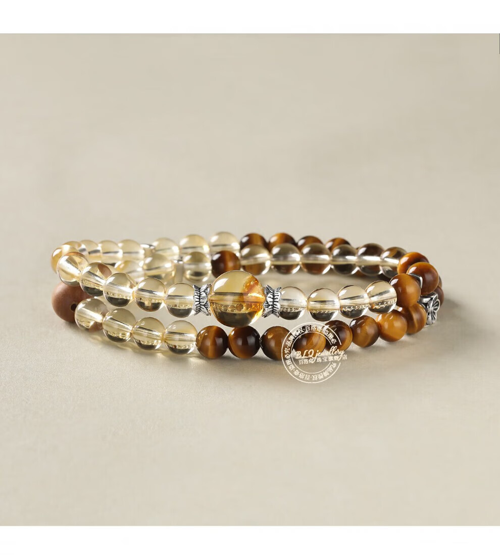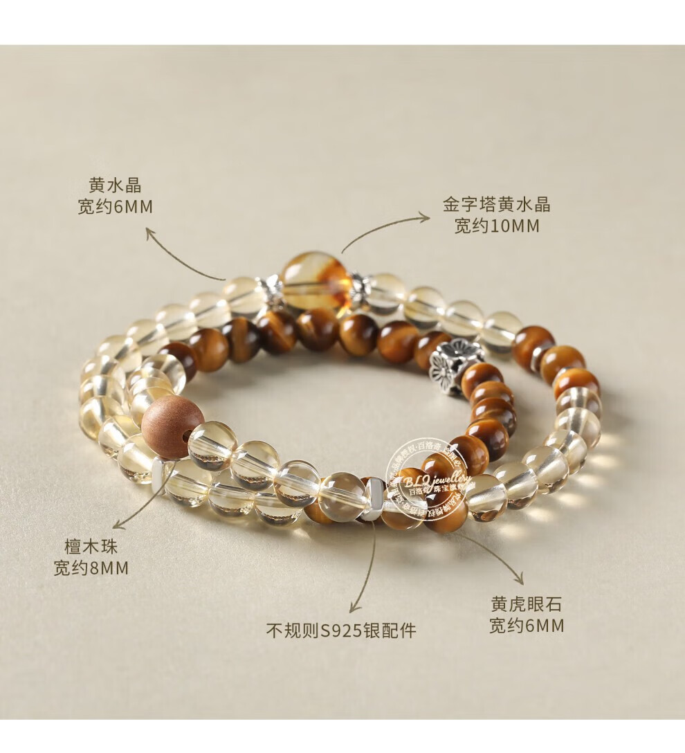 Beimixing Brazilian citrine multi-circle bracelet for women, yellow tiger eye stone bracelet, double-circle Chinese Valentine's Day gift, bead diameter 6mm