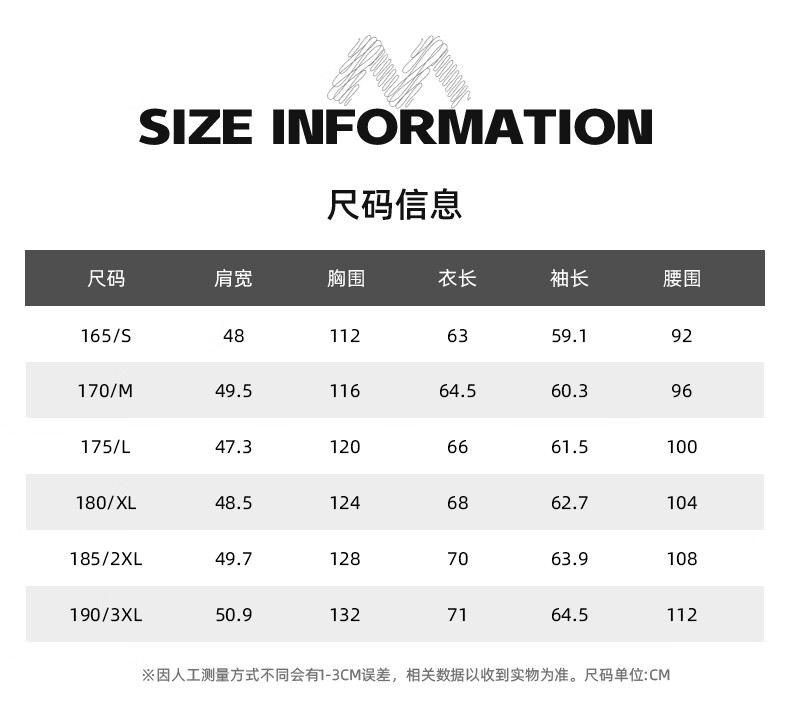 China (cm) 165 / 88-90 170 / 96-98 175 / 108-110 180 / 118-122 185 / 126-130