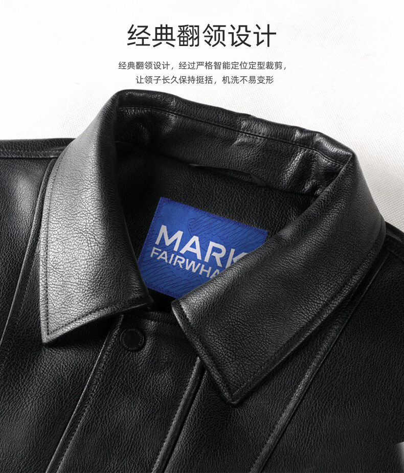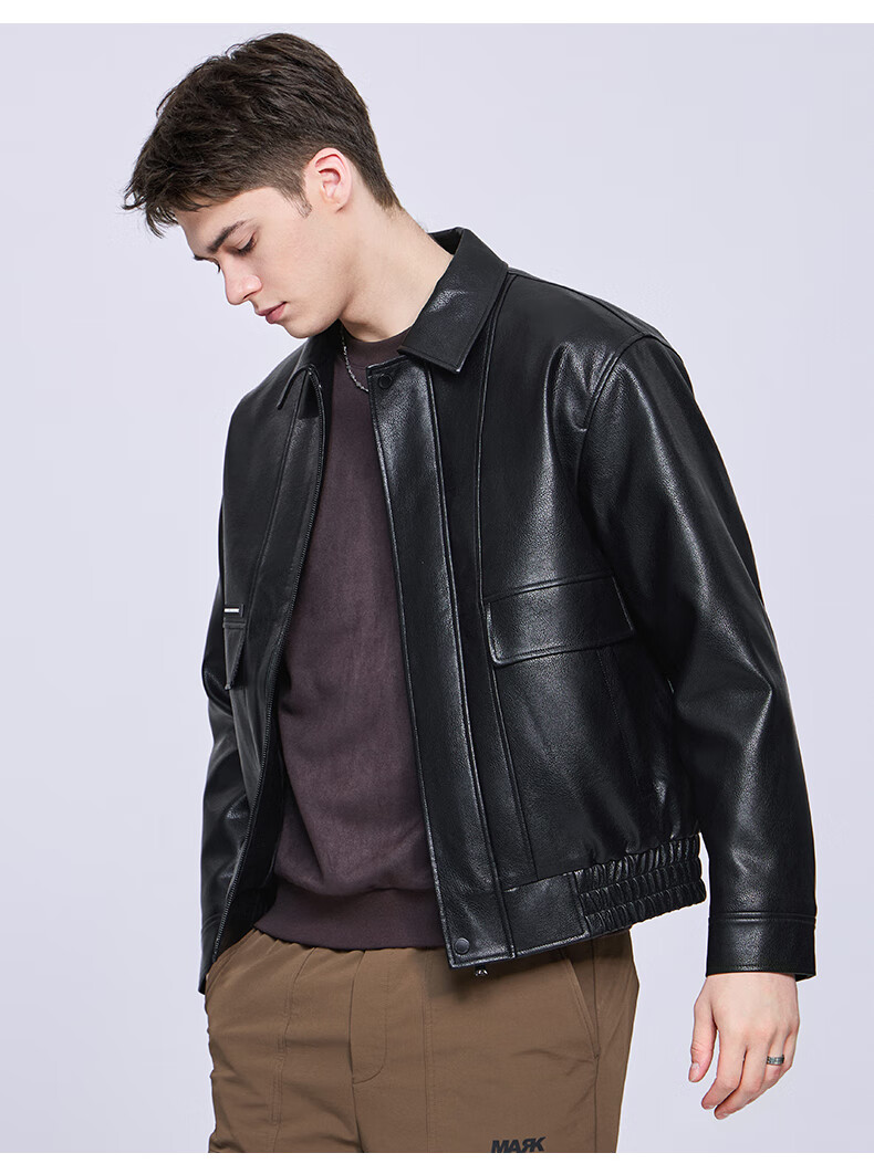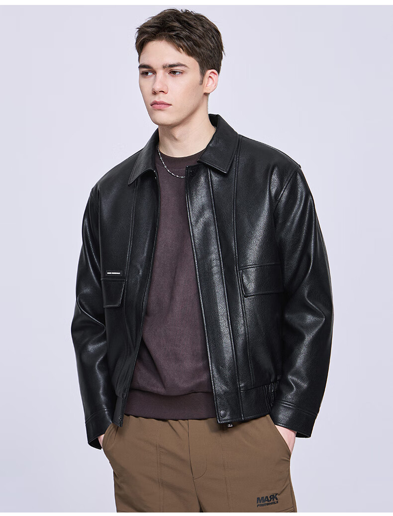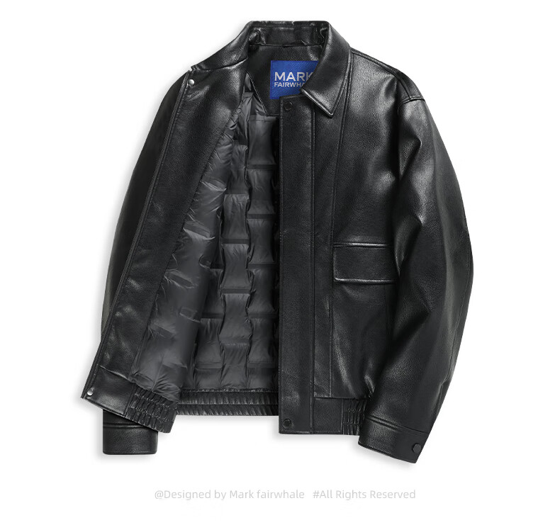 Mark Huafei Goose Down Work Jacket Men's 2025 Autumn and Winter New American PU Leather Lapel Warm Jacket 7006 Black 001 M 170