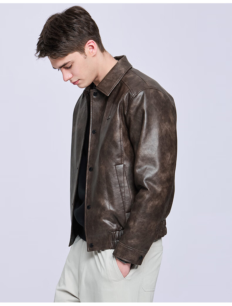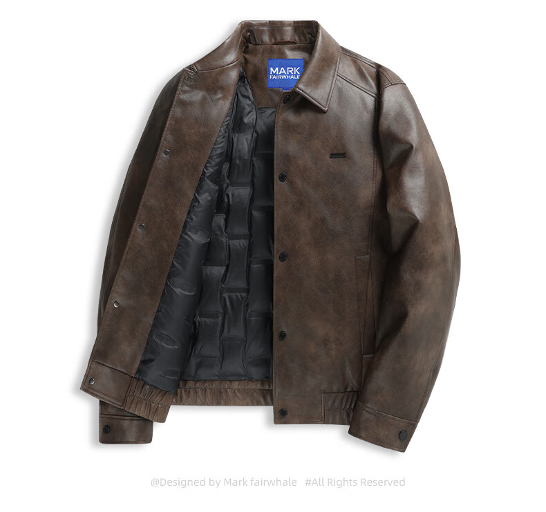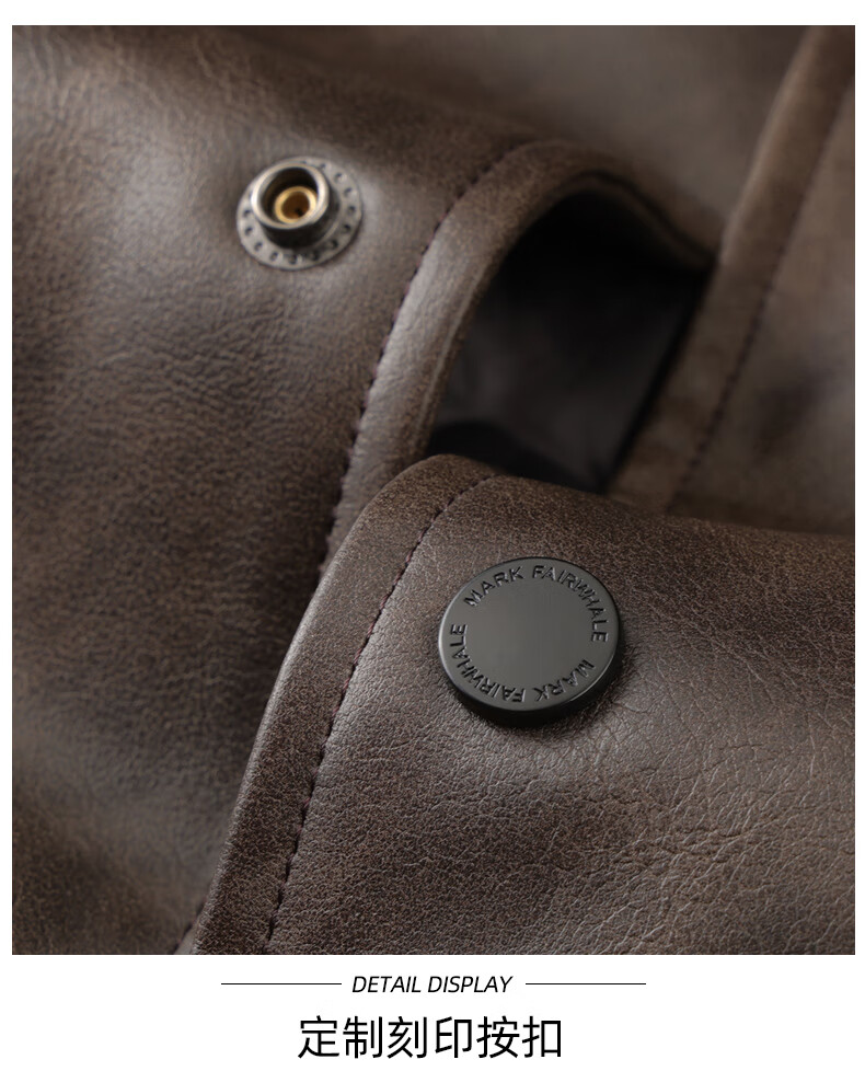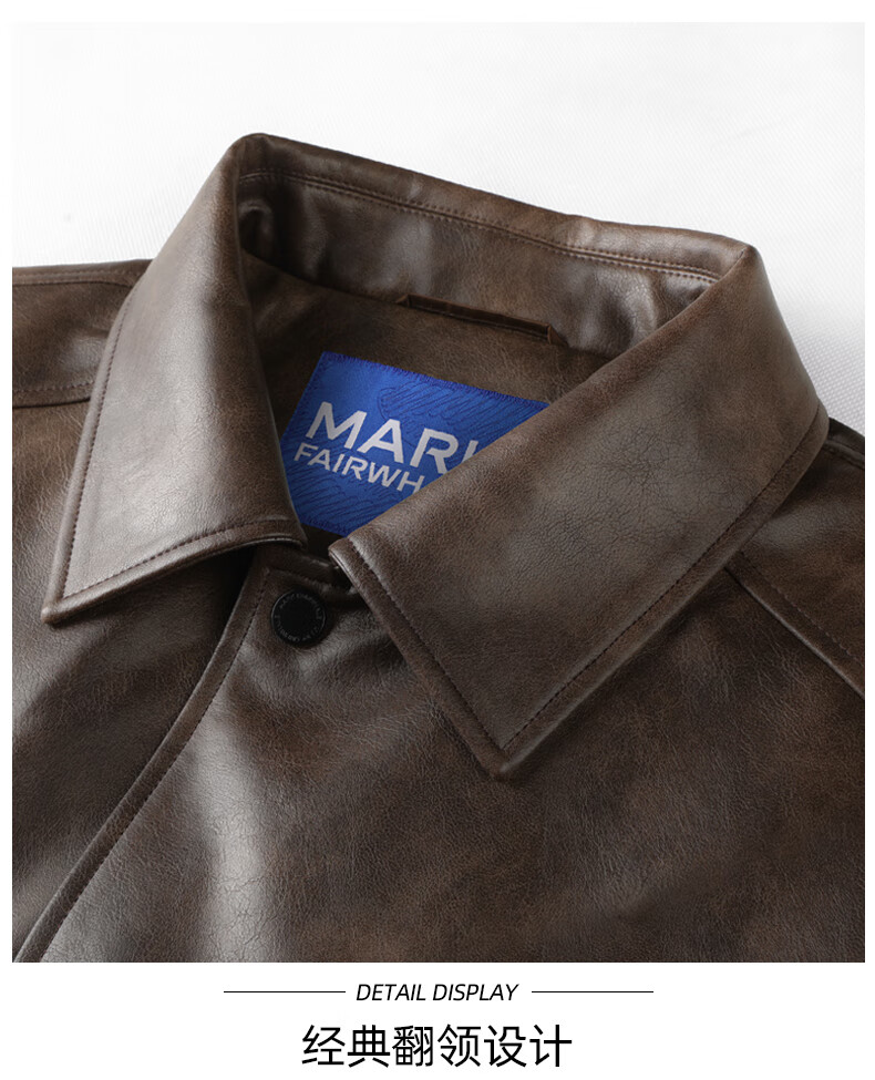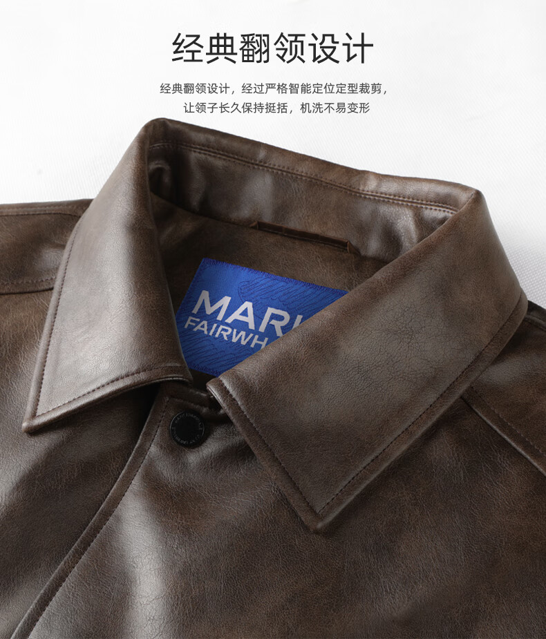 Mark Huafei пуховик из искусственной кожи с лацканами, мужская осень и зима 2025, новая высококачественная повседневная кожаная куртка в стиле ретро 7007 кофейного цвета 303 M 170