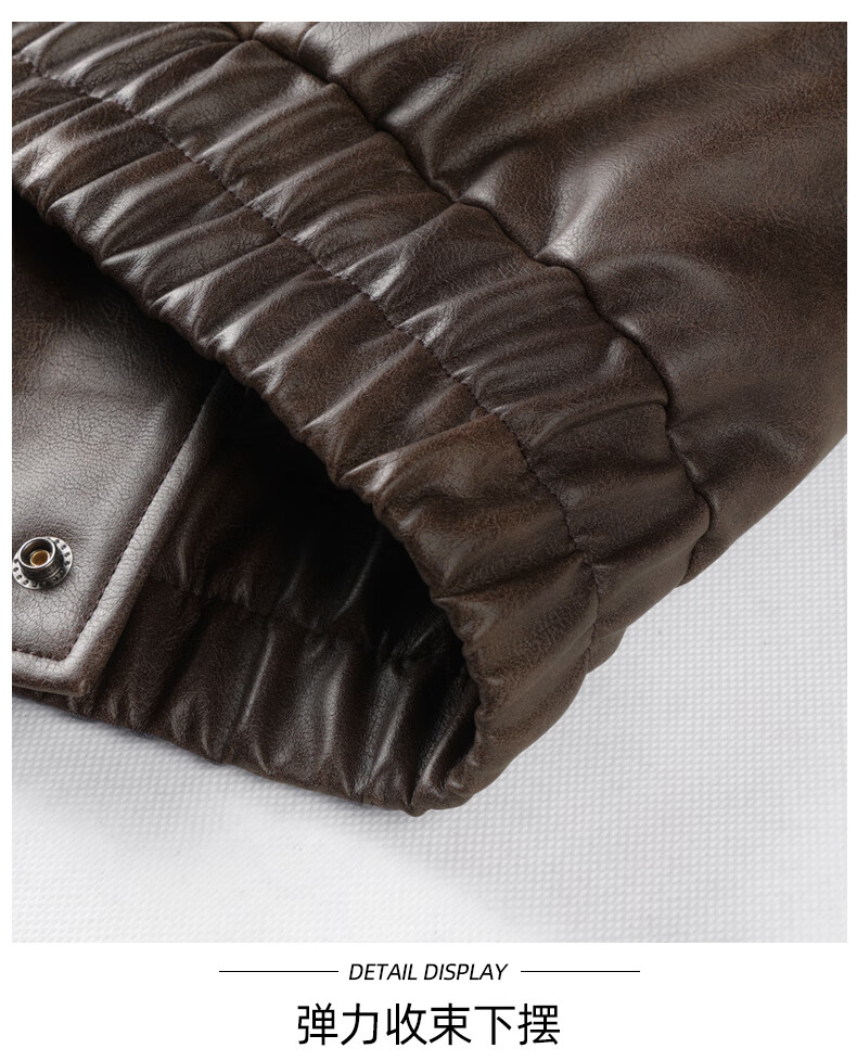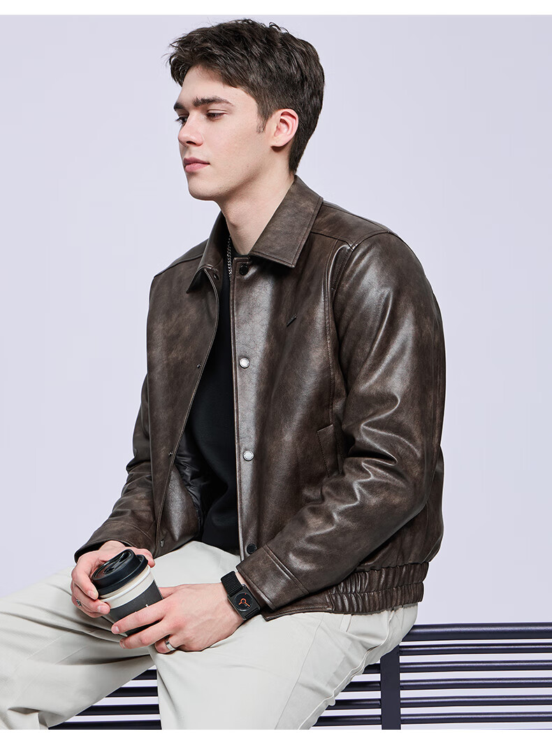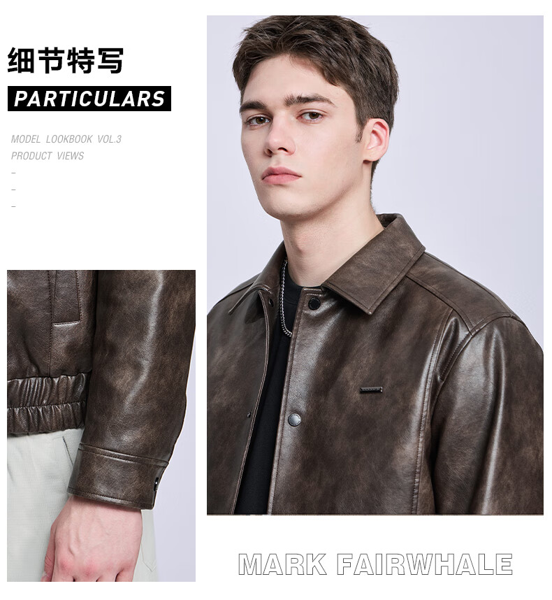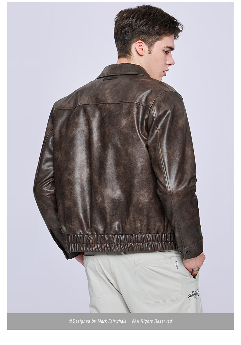 Mark Huafei пуховик из искусственной кожи с лацканами, мужская осень и зима 2025, новая высококачественная повседневная кожаная куртка в стиле ретро 7007 кофейного цвета 303 M 170