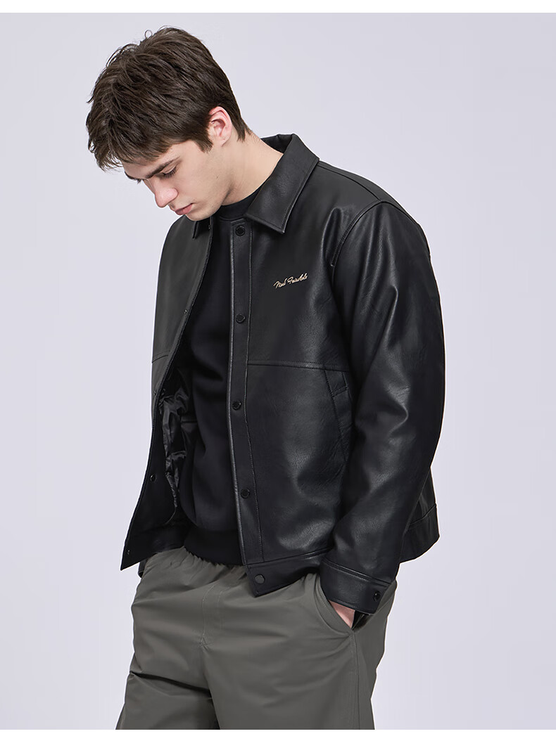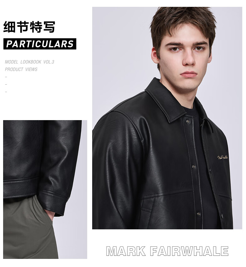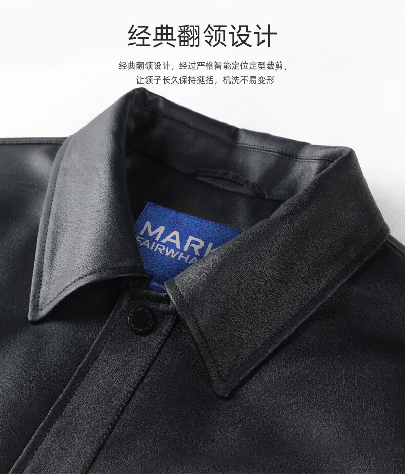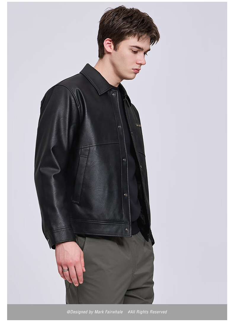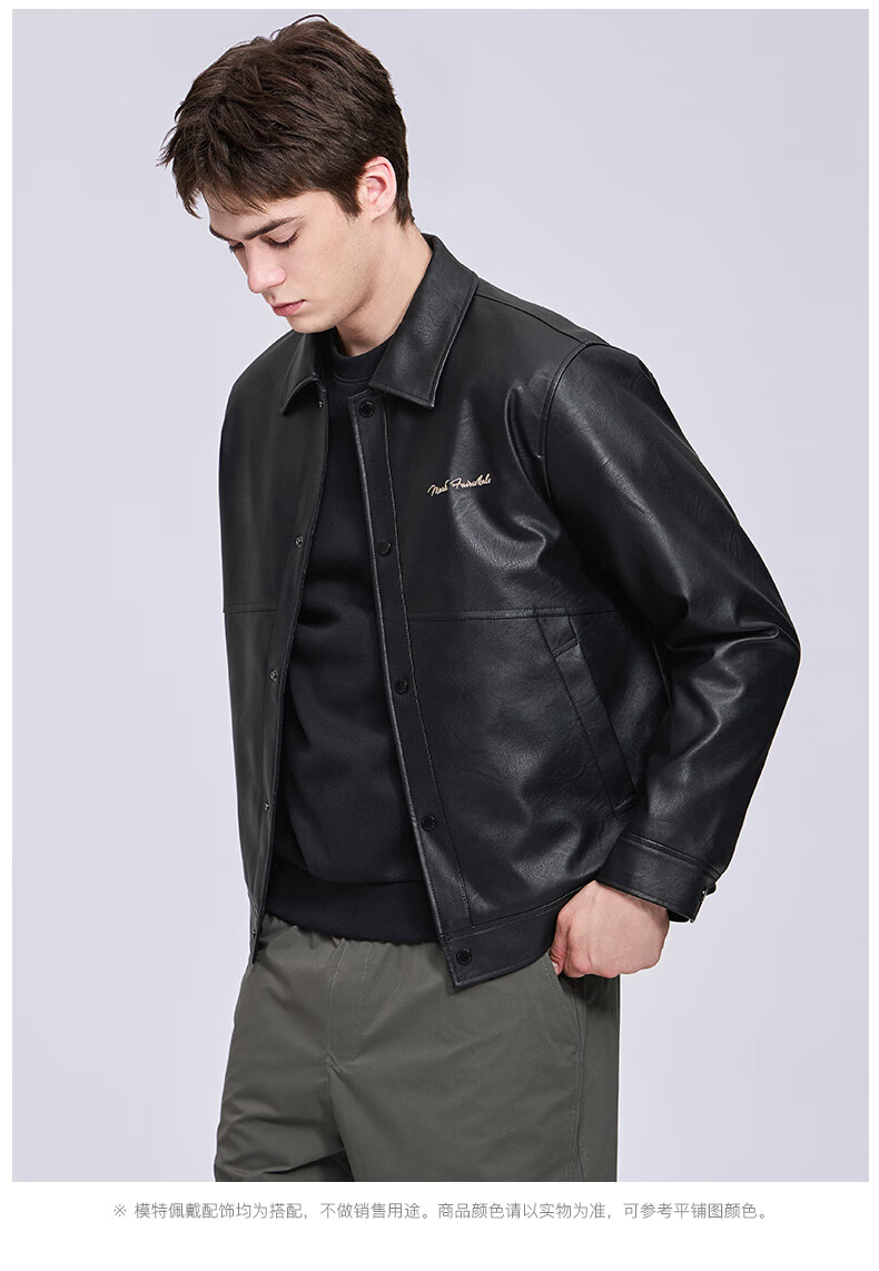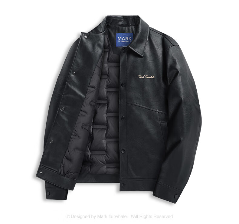 Mark Huafei American Retro Motorcycle Down Jacket Men's 2025 Autumn and Winter Warm Texture PU Lapel Leather Jacket 1520 Black 001 M 170