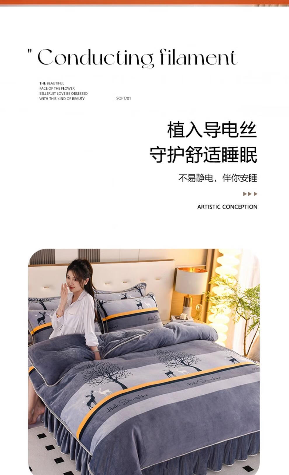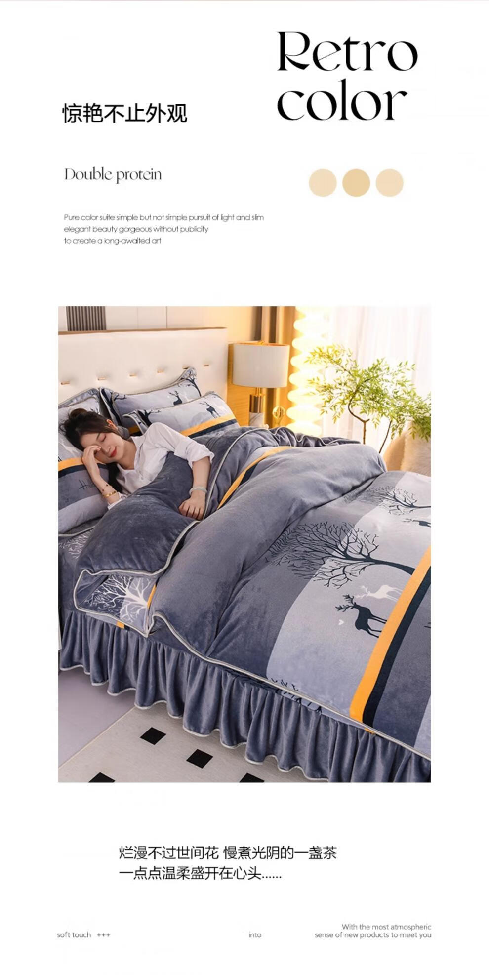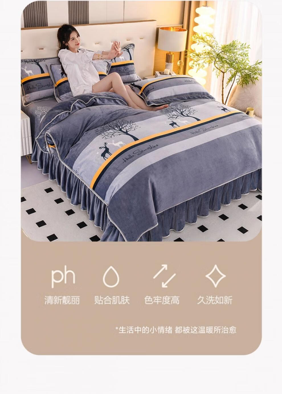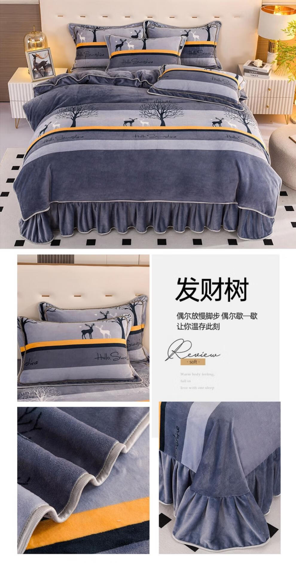 Mercury series home textile milk velvet four-piece set thickened coral velvet 2025 winter new double-sided flannel bedding cover bed skirt Fortune tree type A, available for infants bed sheet style 1.8m bed four-piece set 200*230cm