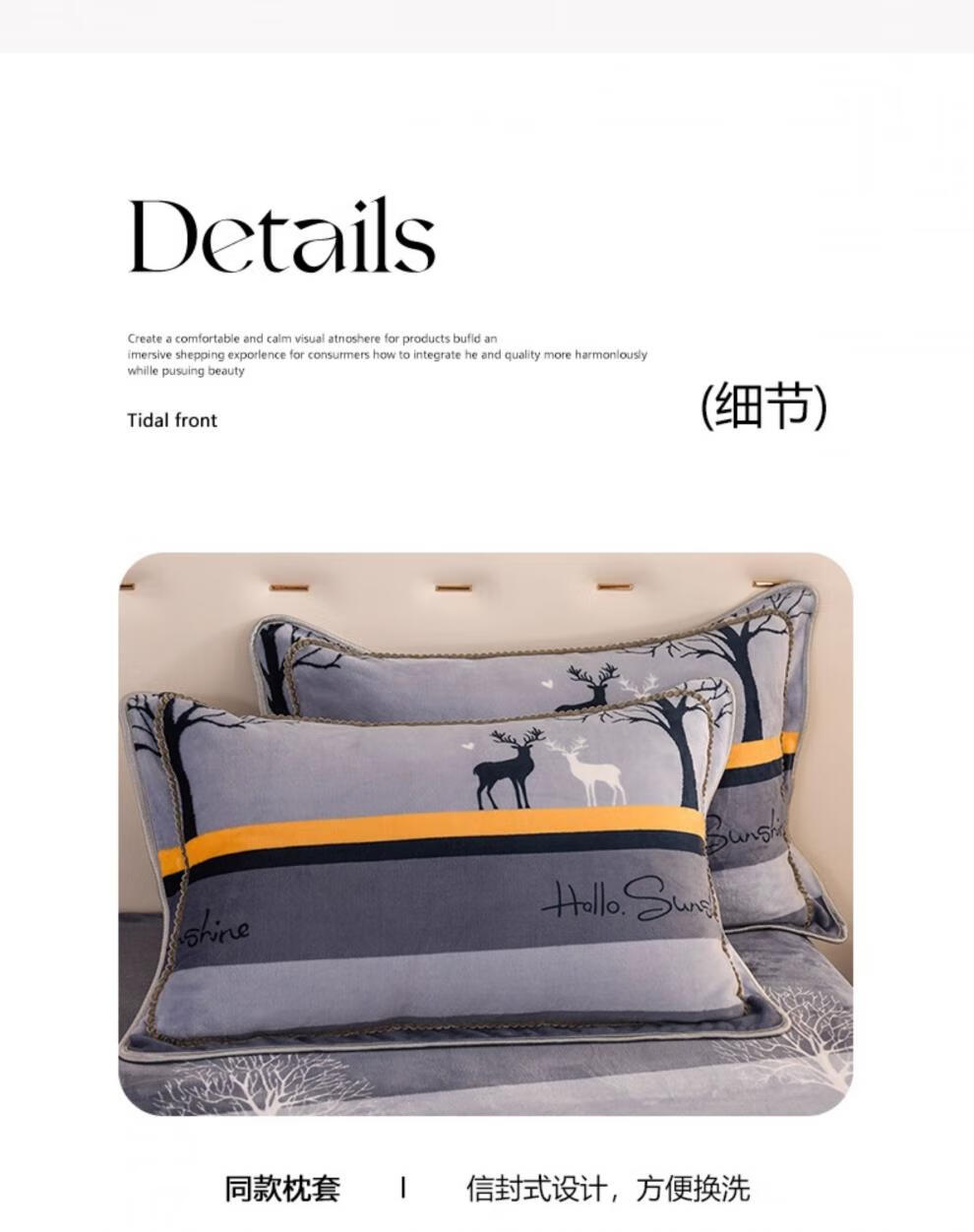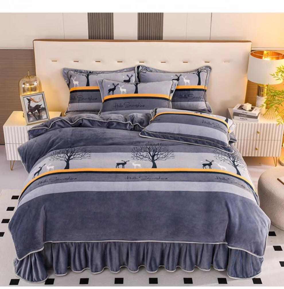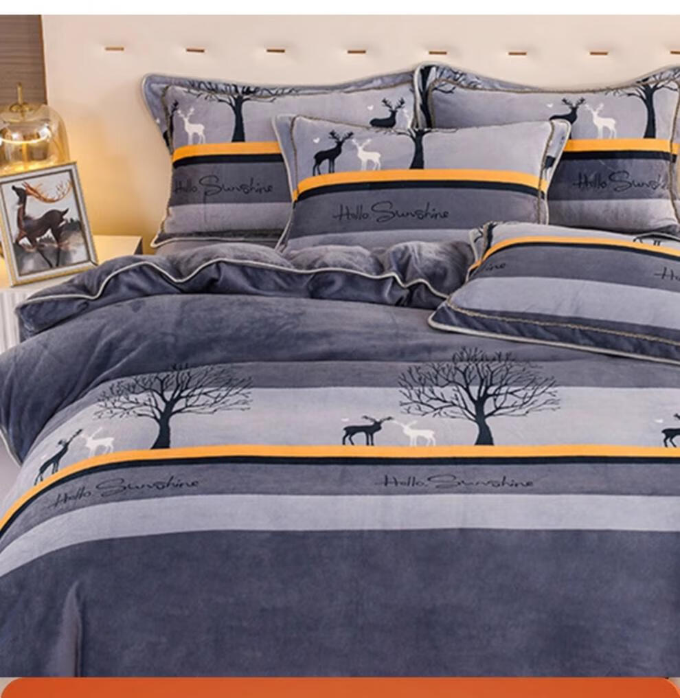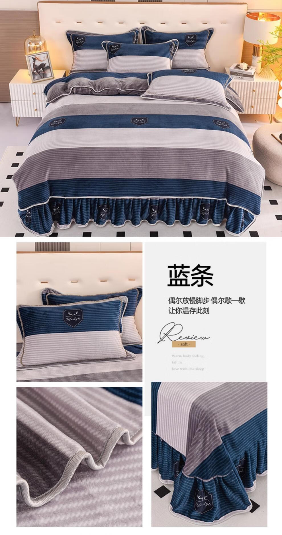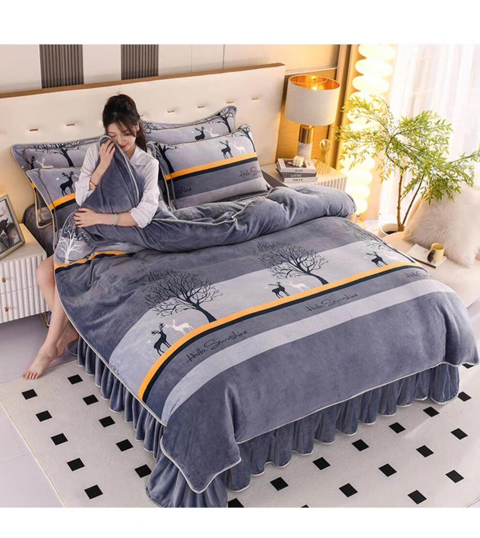 Mercury series home textile milk velvet four-piece set thickened coral velvet 2025 winter new double-sided flannel bedding cover bed skirt Fortune tree type A, available for infants bed sheet style 1.8m bed four-piece set 200*230cm