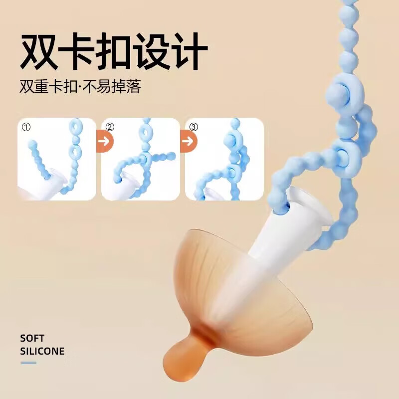 Baby teething toy teether anti-drop chain rope chewing clip baby silicone pacifier chain anti-lost chain double buckle - length 40CM clear water blue