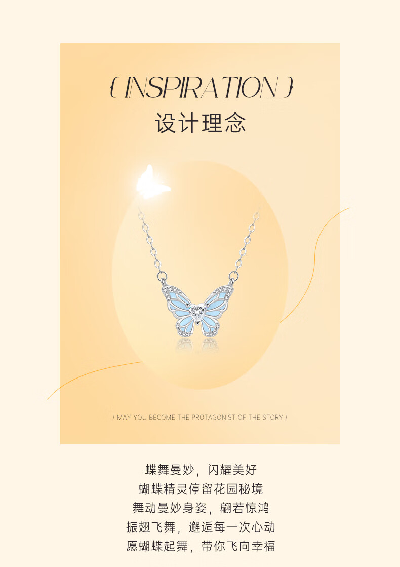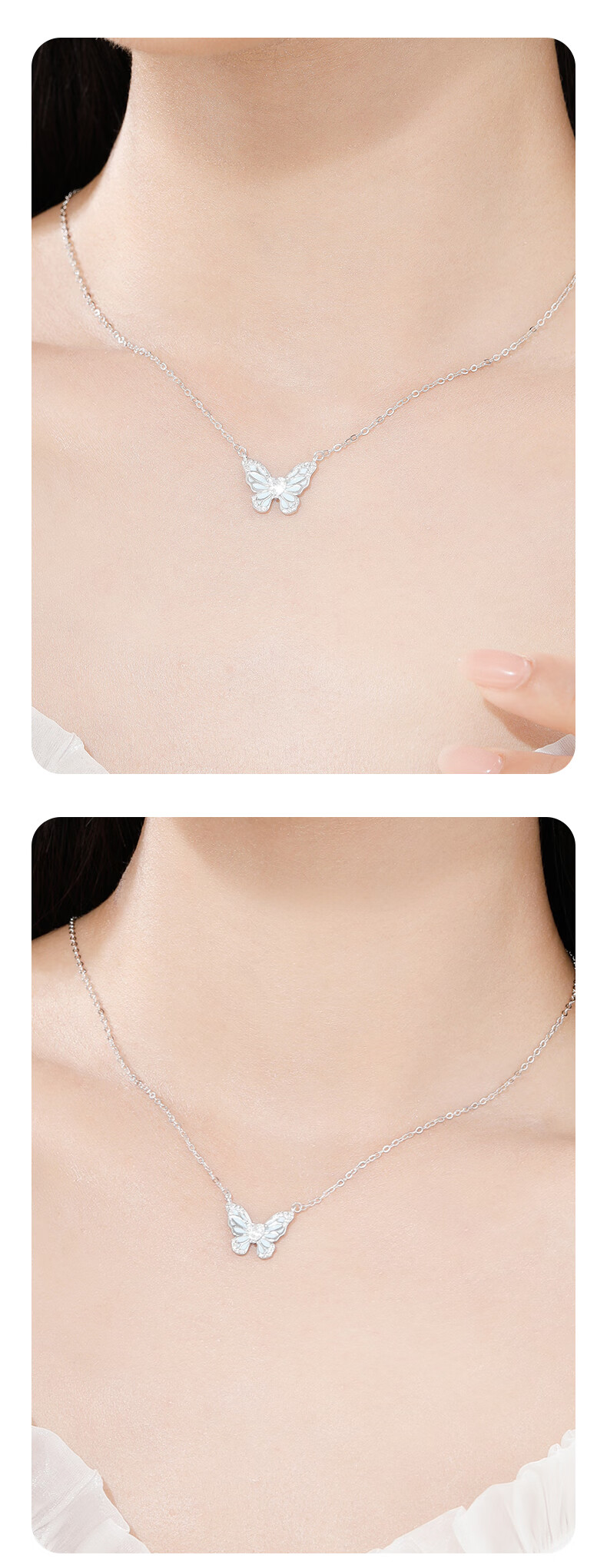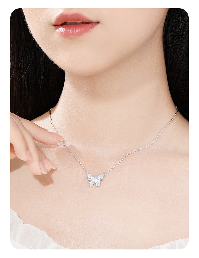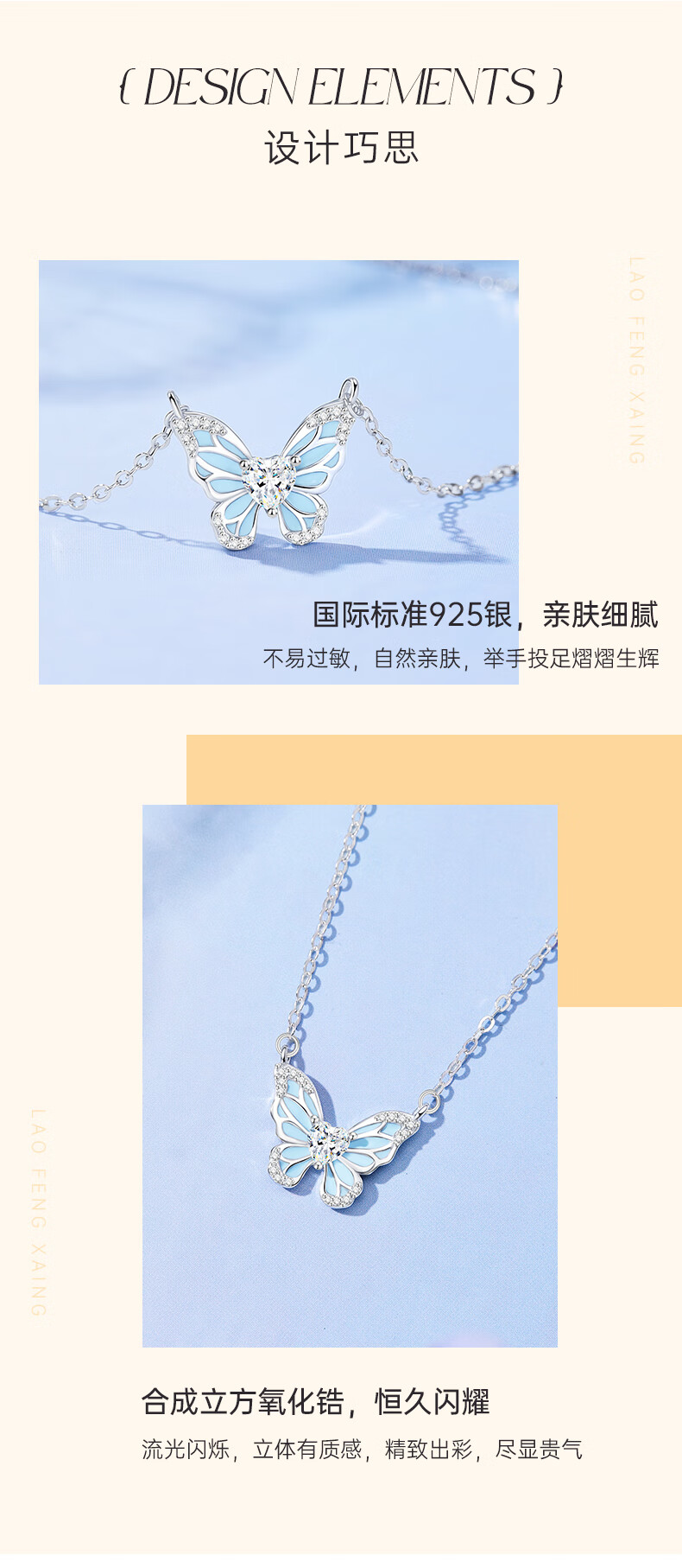 Lao Fengxiang Blue Butterfly Luminous Silver Necklace for Girls Pendant Jewelry Light Luxury Jewelry Anniversary Birthday Gift for Girlfriend and Wife Blue Butterfly Love Luminous Necklace* Brand Gift Box